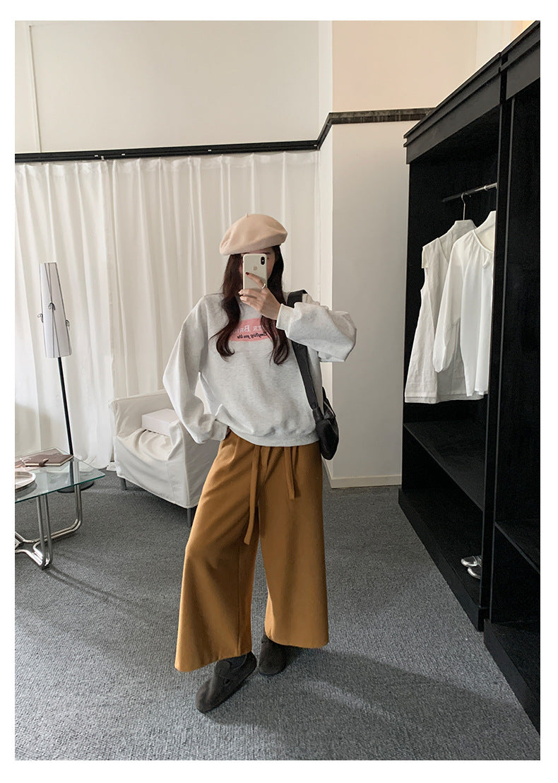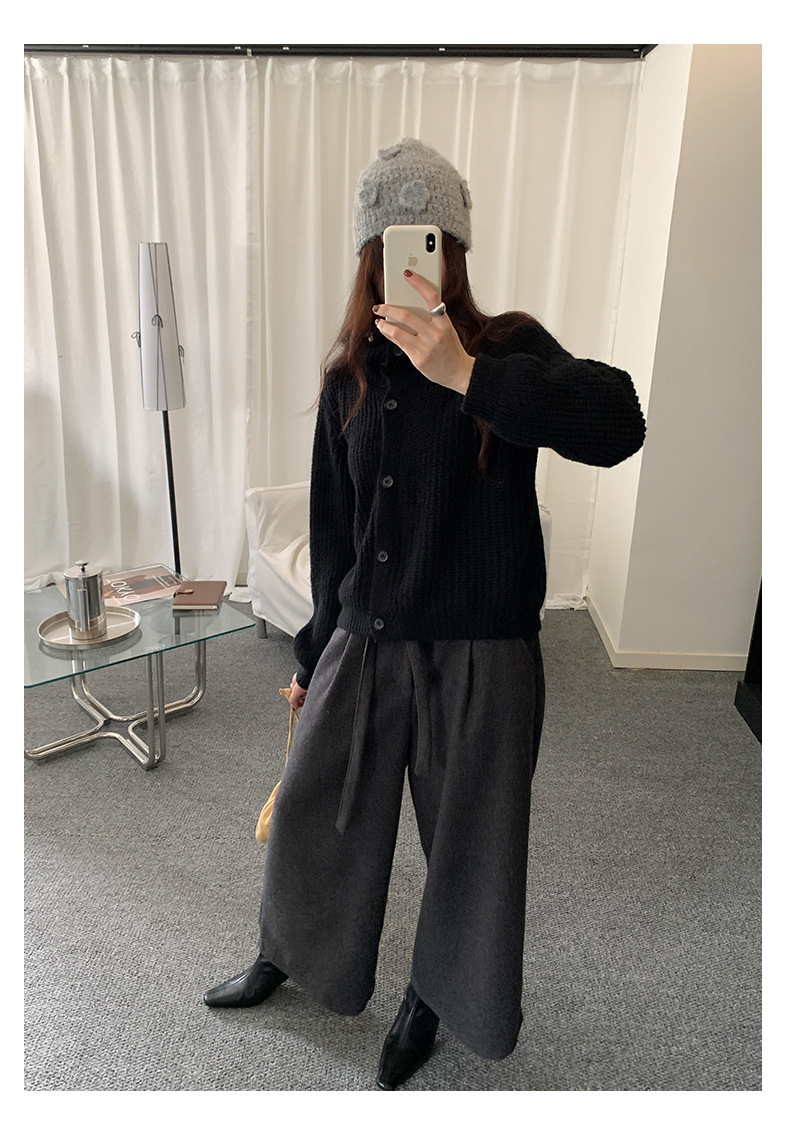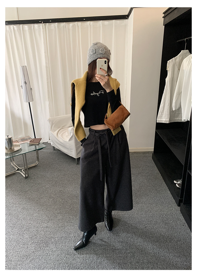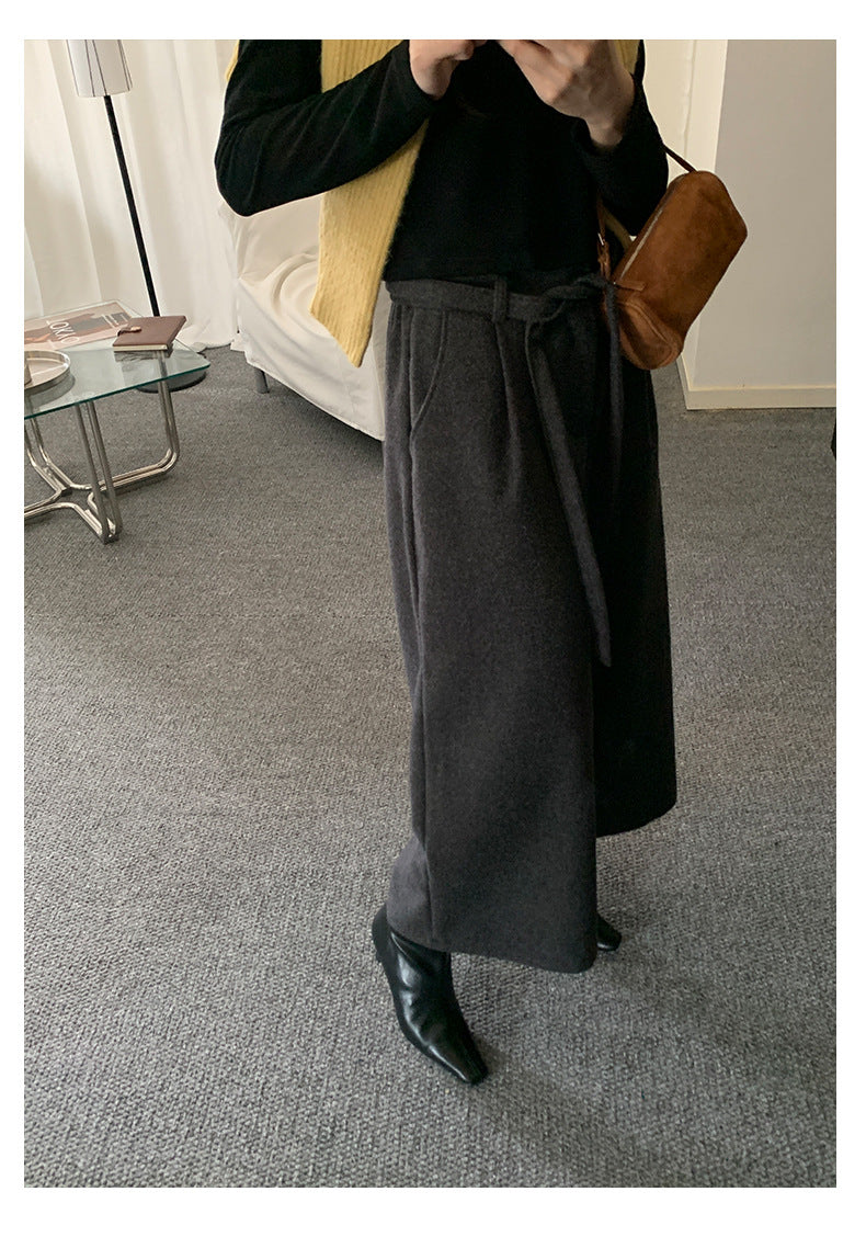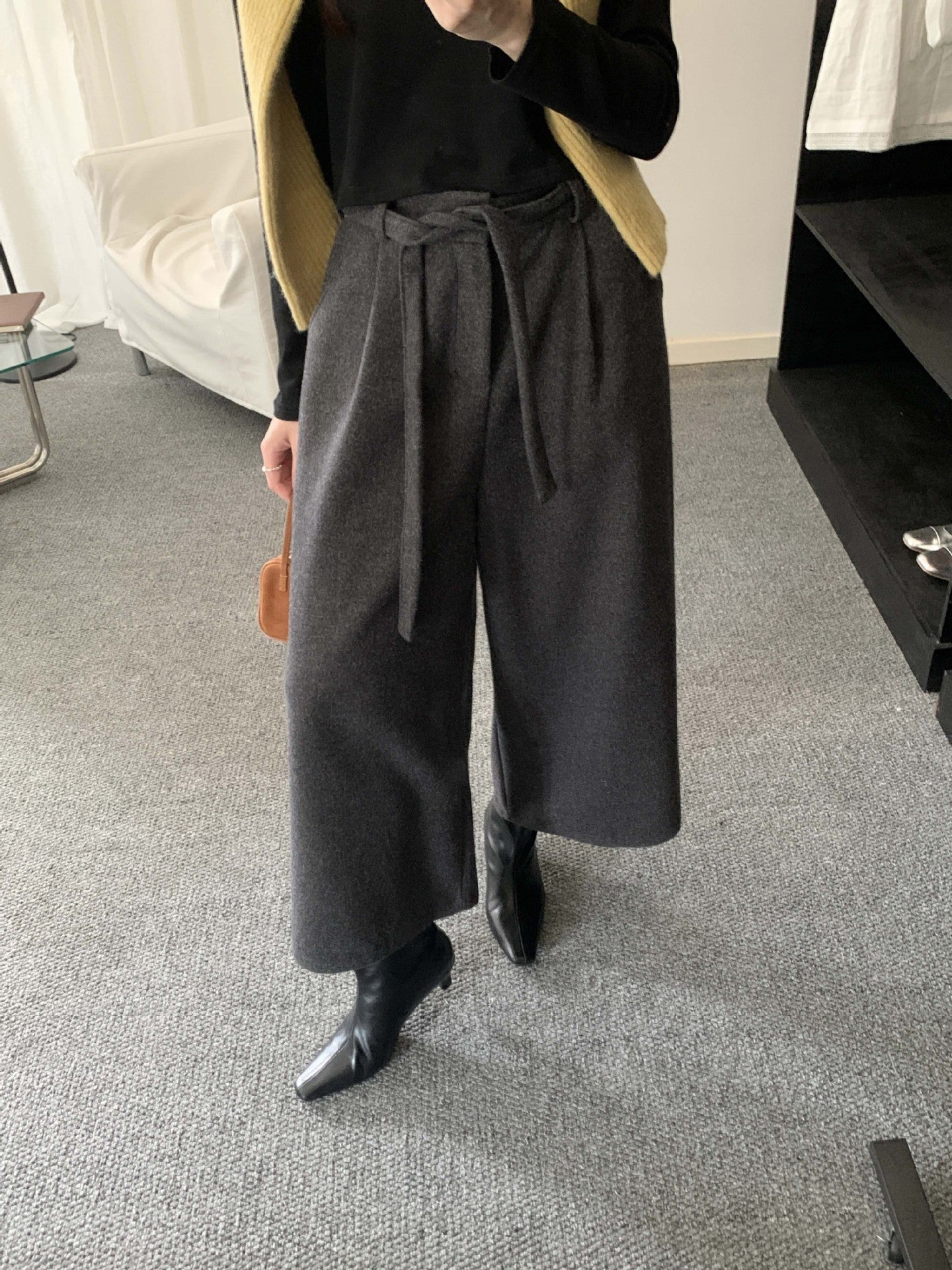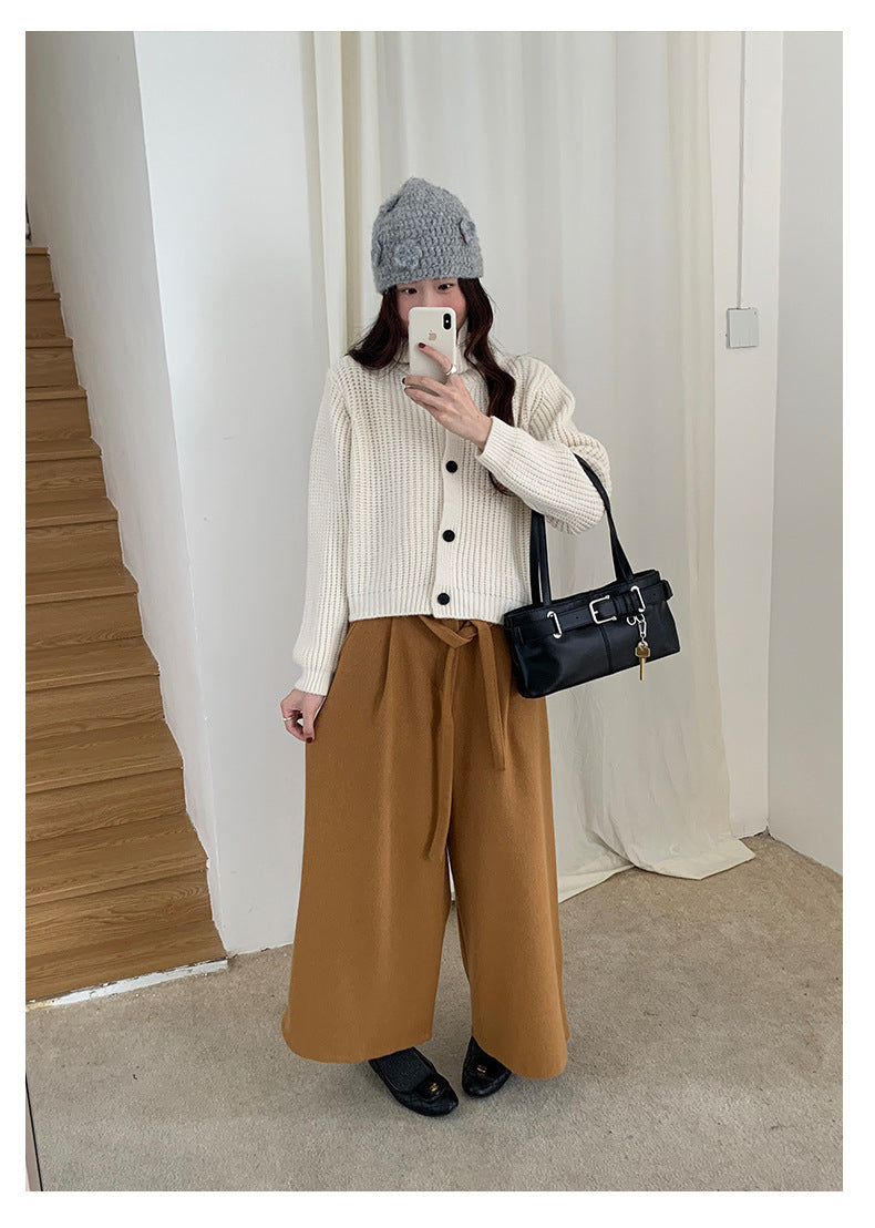【H5491】實拍秋冬毛呢鬆緊腰加厚闊腿休閒褲251109