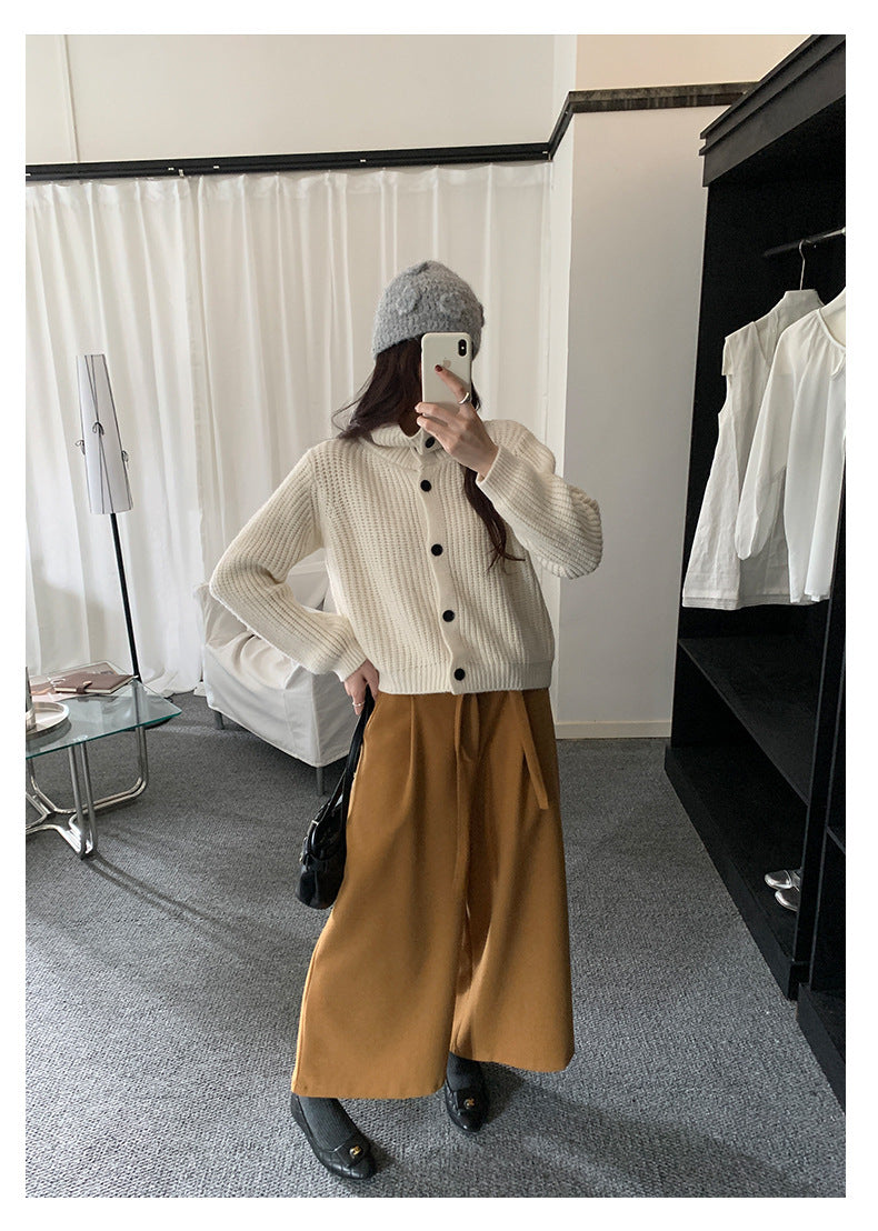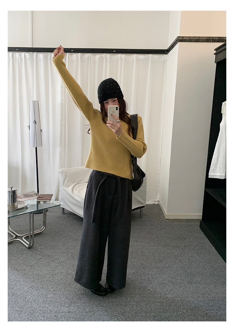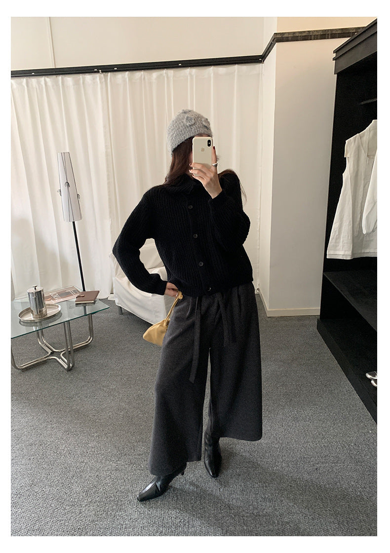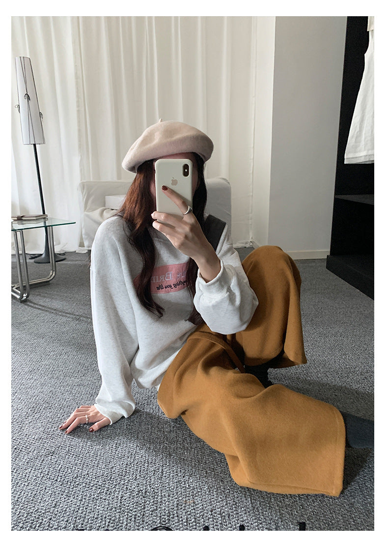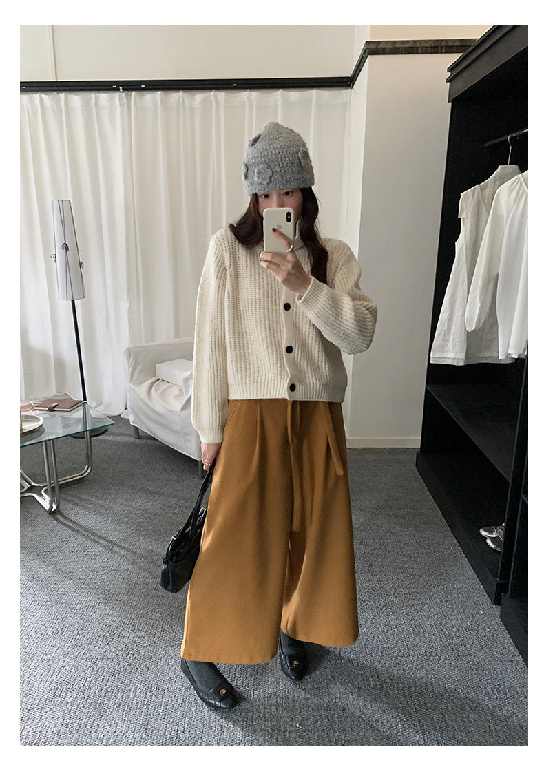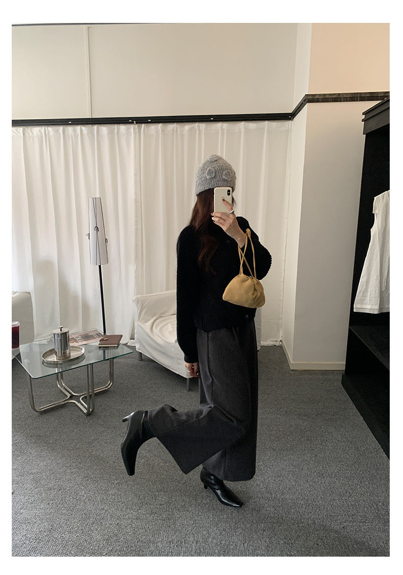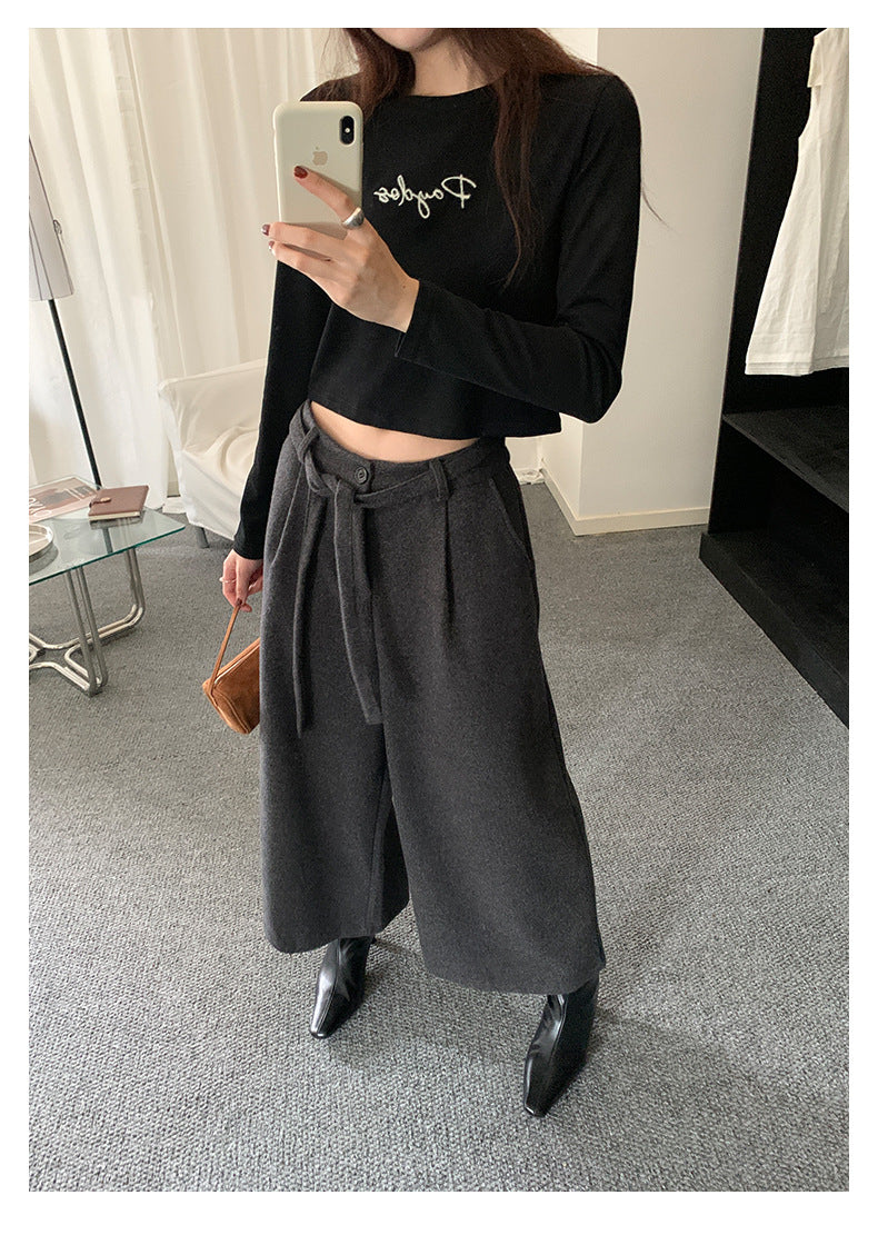 【H5491】實拍秋冬毛呢鬆緊腰加厚闊腿休閒褲251109