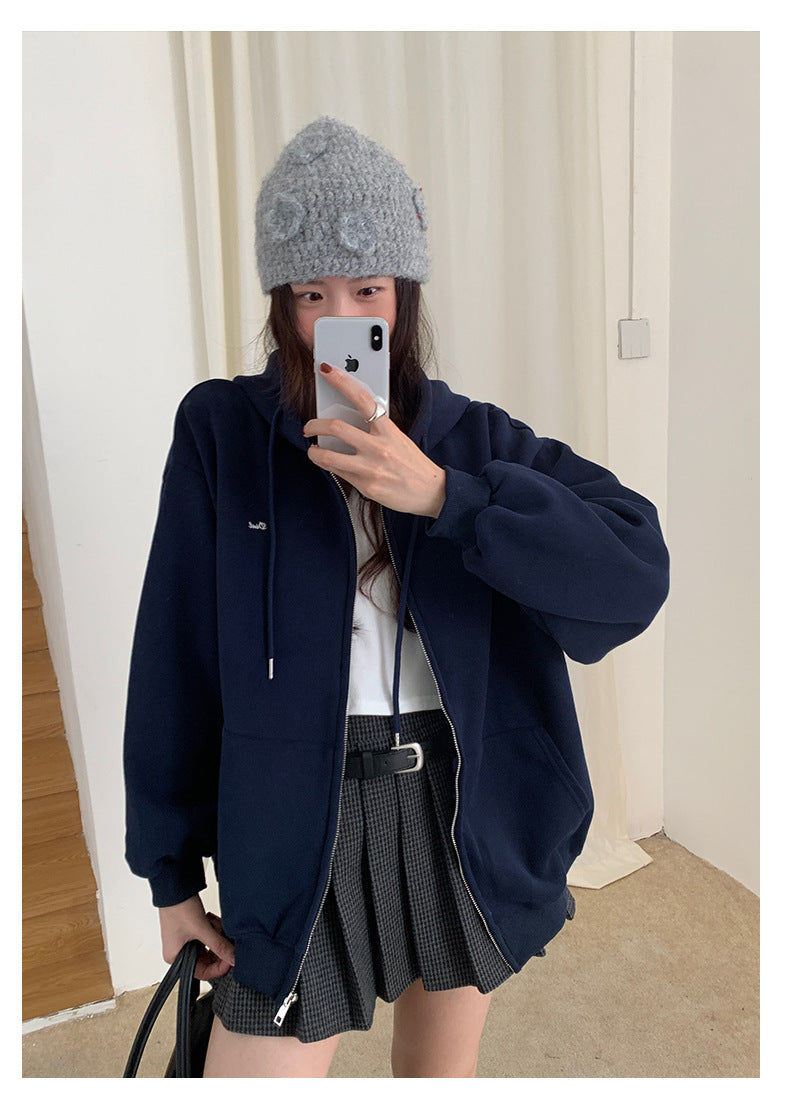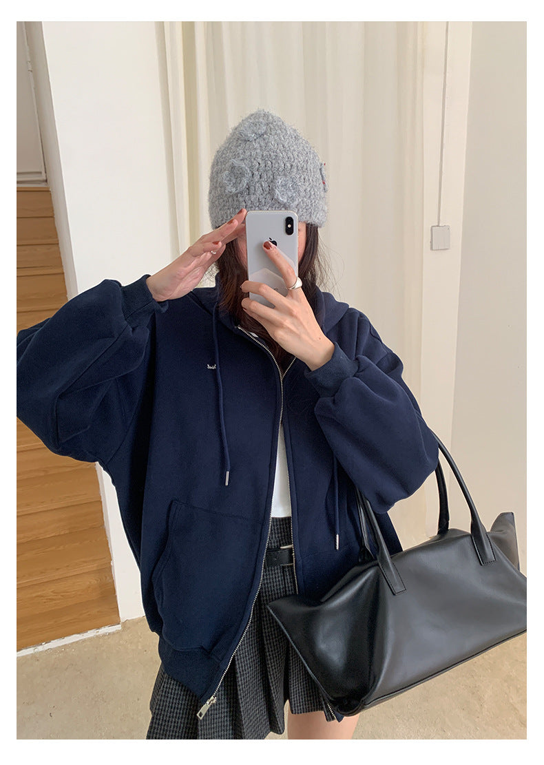 【H5495】實拍男友寬鬆款刺繡長袖連帽衞衣外套251109