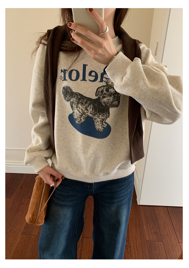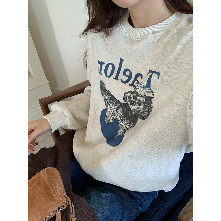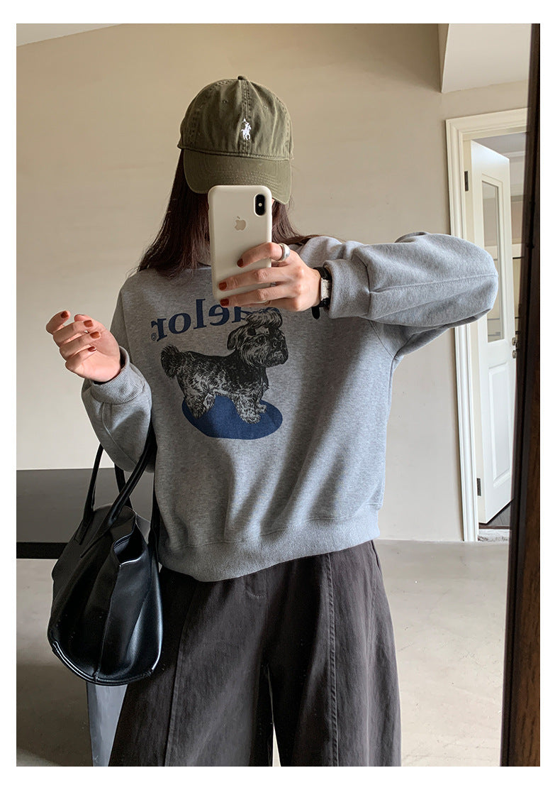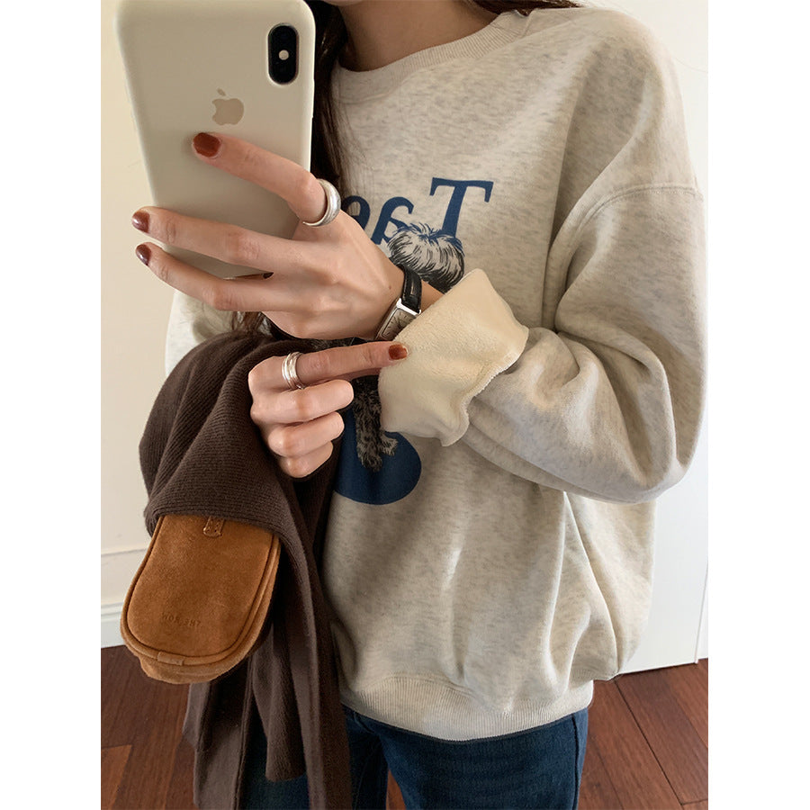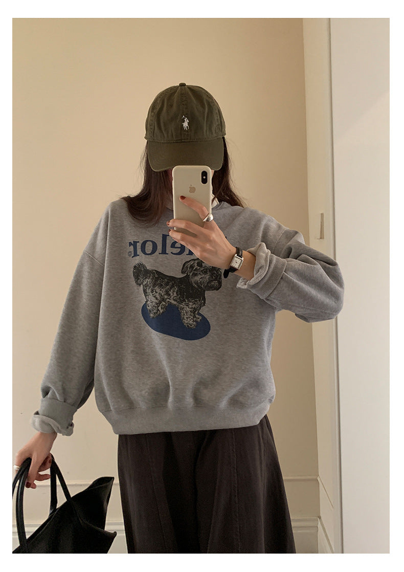 【H5496】實拍韓系小狗印花加絨厚棉衛衣251118