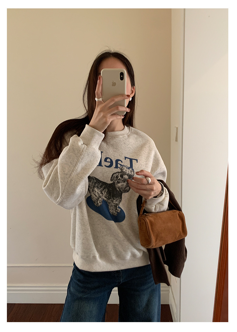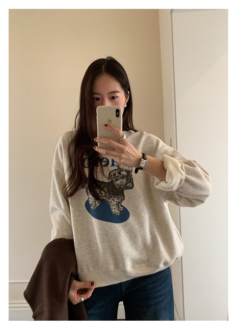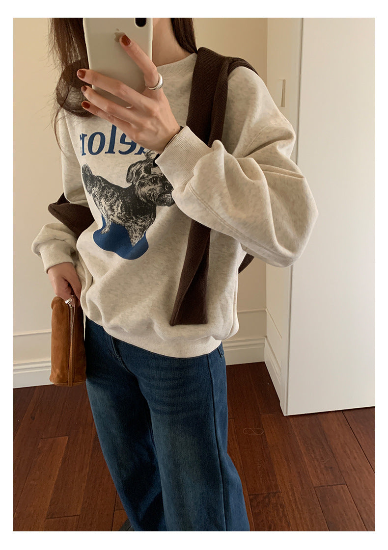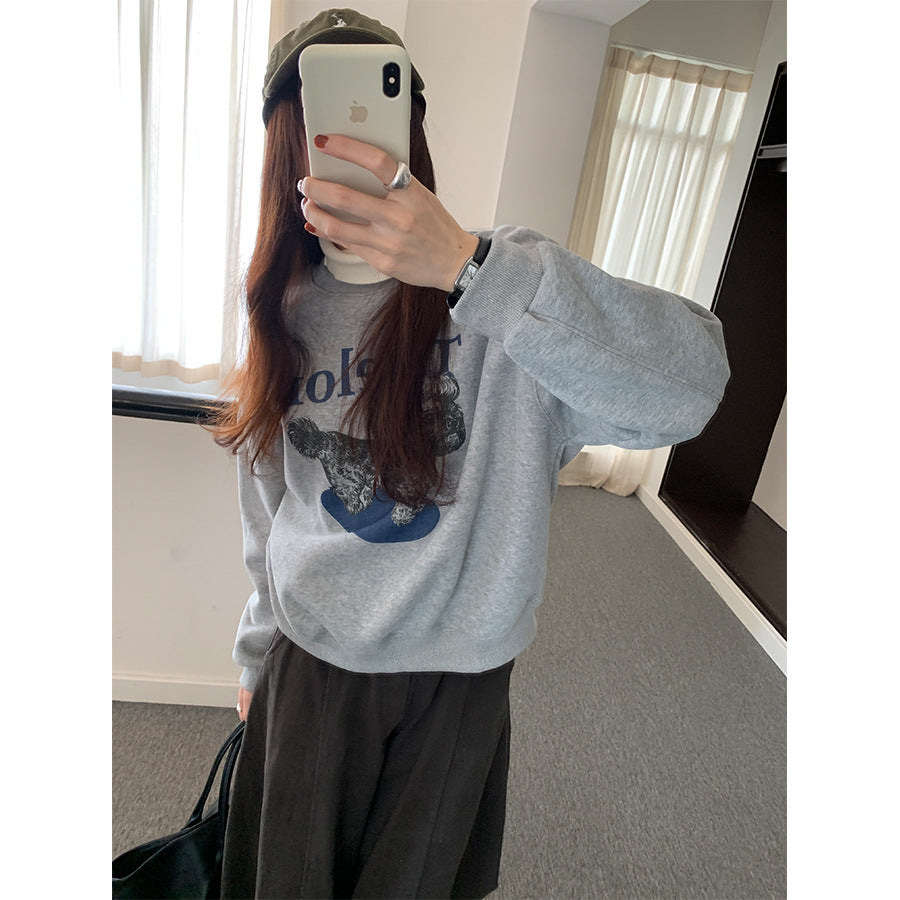 【H5496】實拍韓系小狗印花加絨厚棉衛衣251118