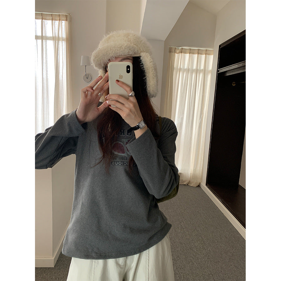 【H5497】實拍德絨加厚磨毛長袖T恤251118