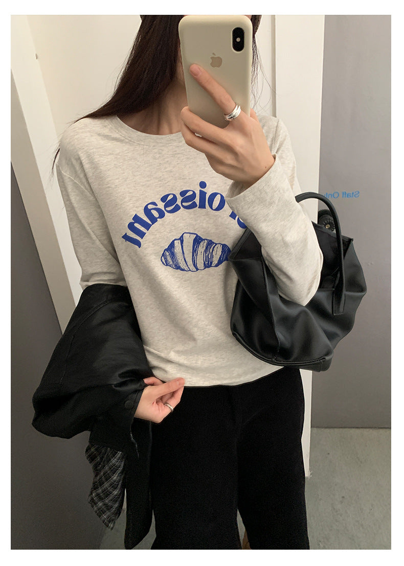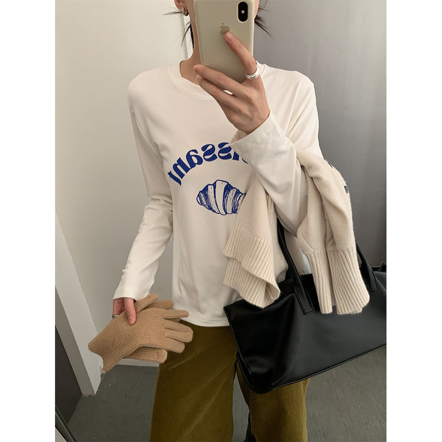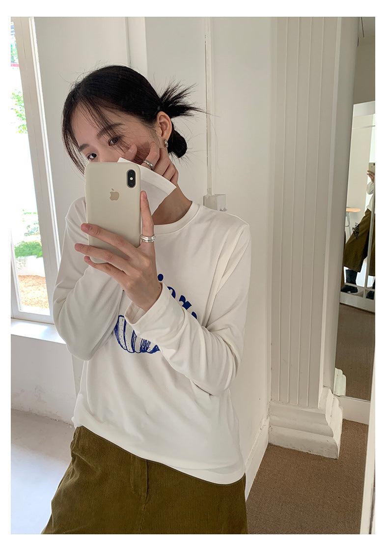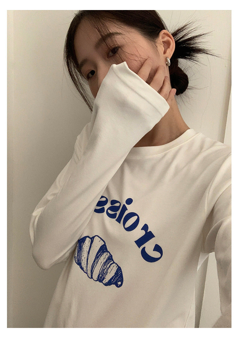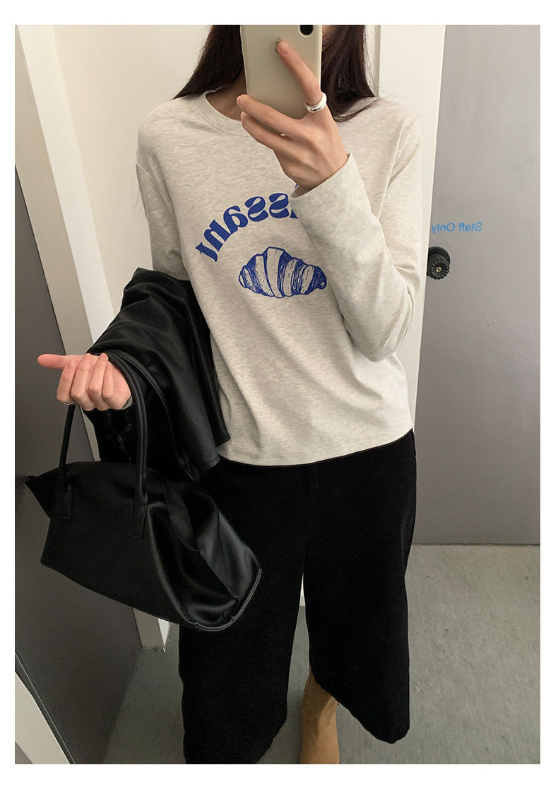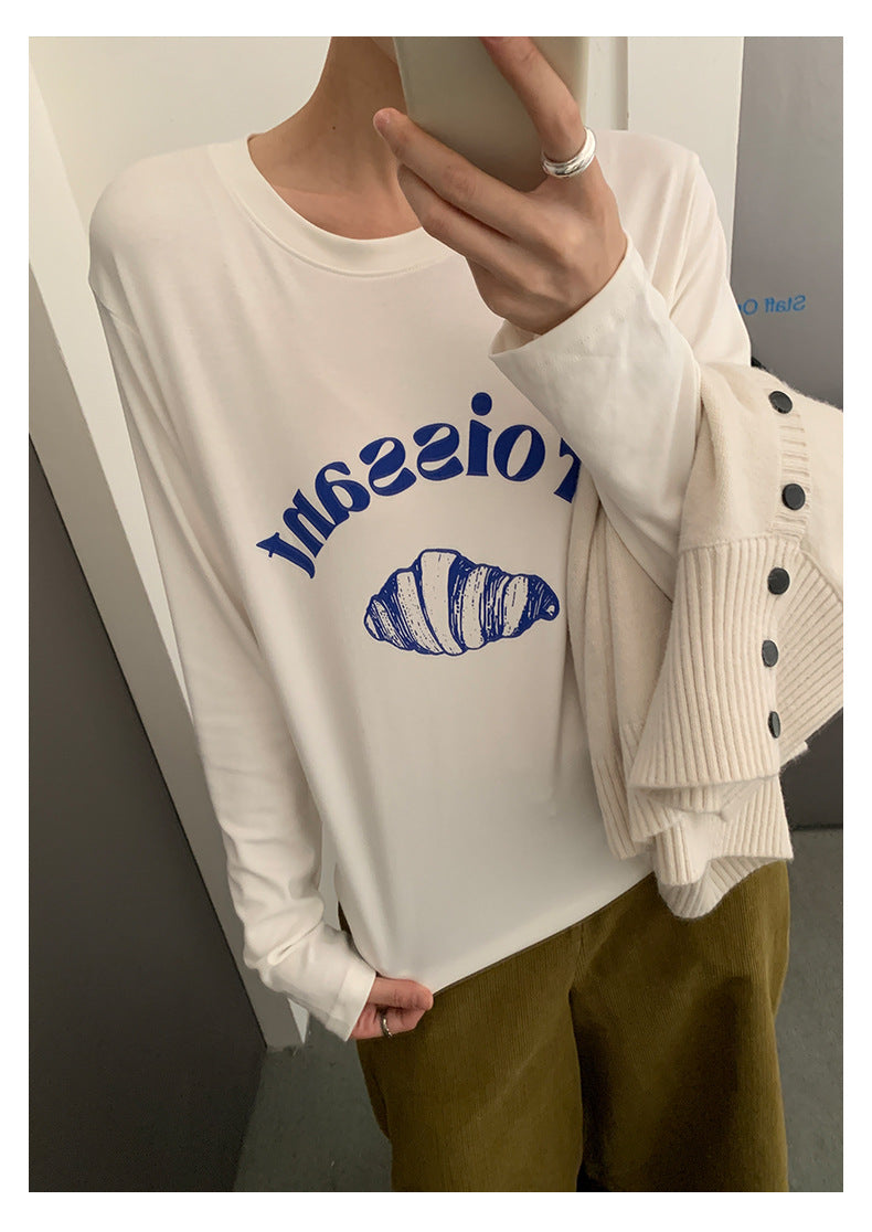 【H550】實拍韓系牛角印花長袖棉質T恤251007