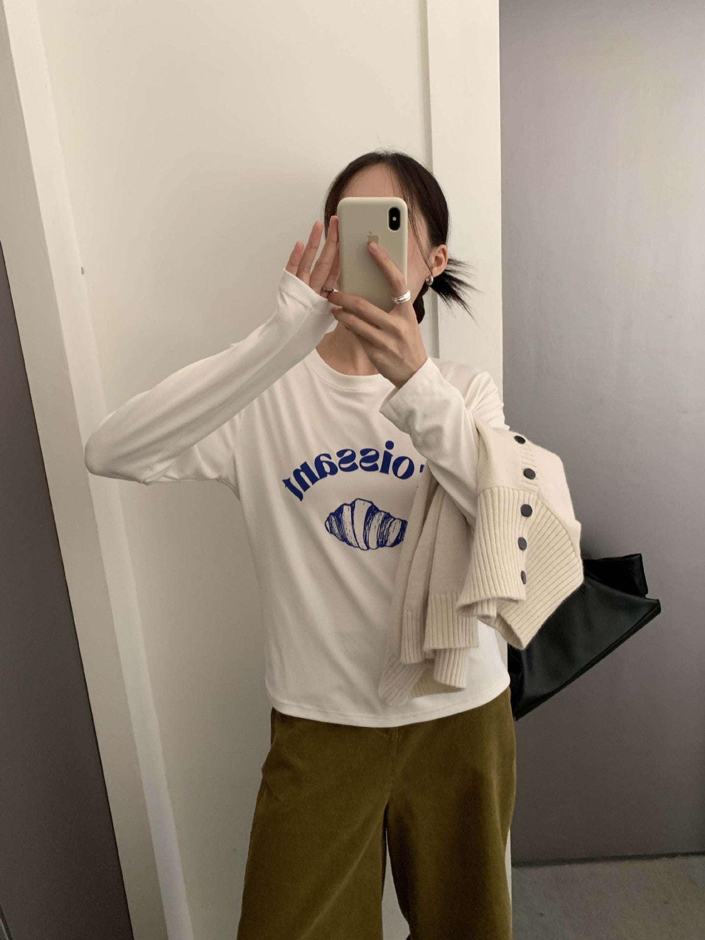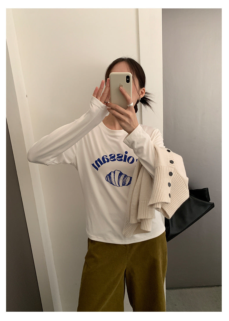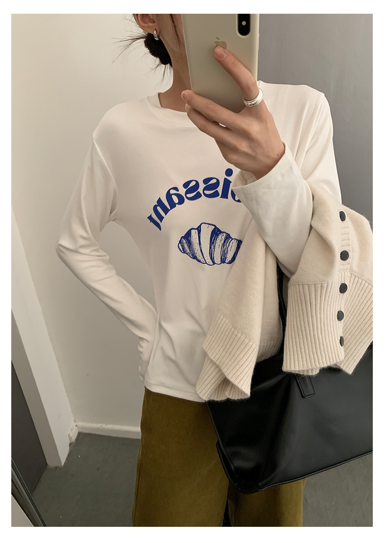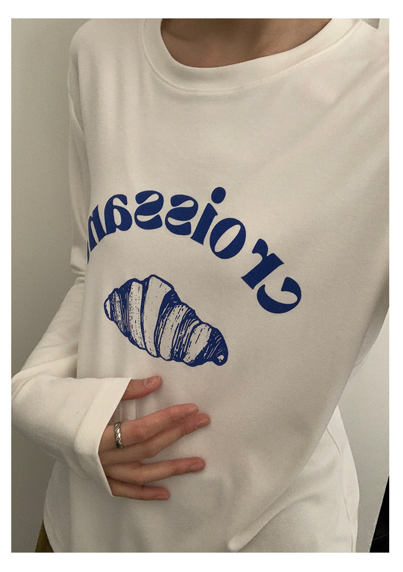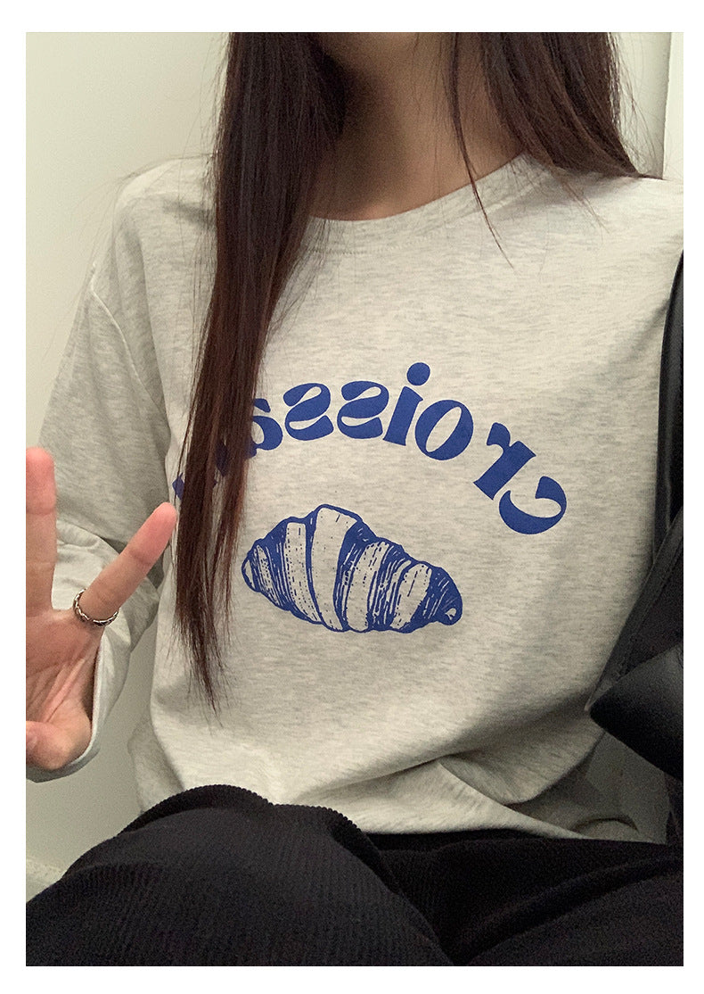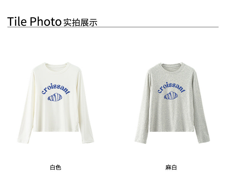 【H550】實拍韓系牛角印花長袖棉質T恤251007