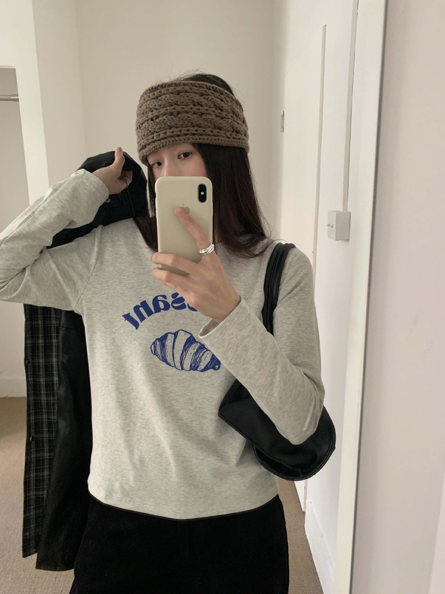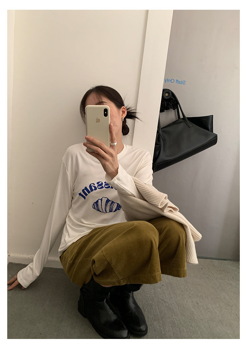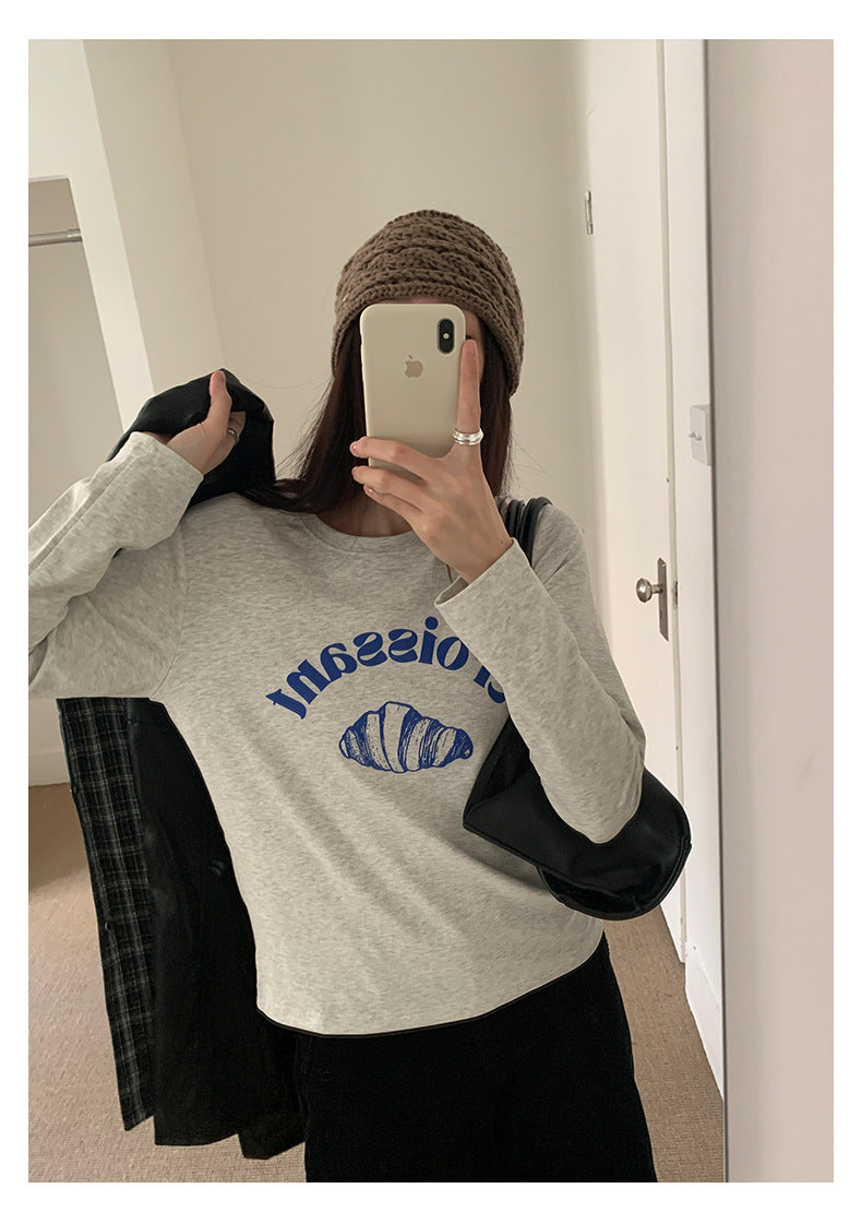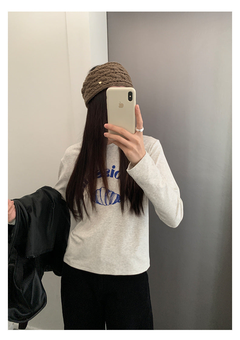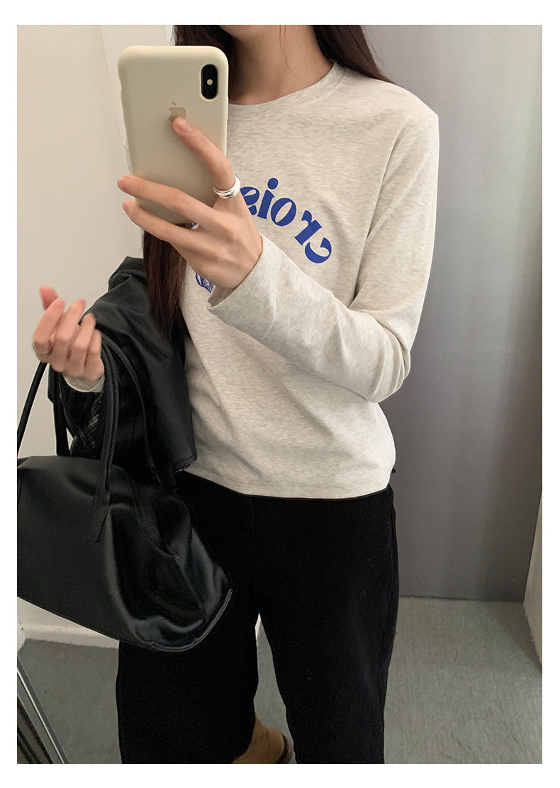 【H550】實拍韓系牛角印花長袖棉質T恤251007