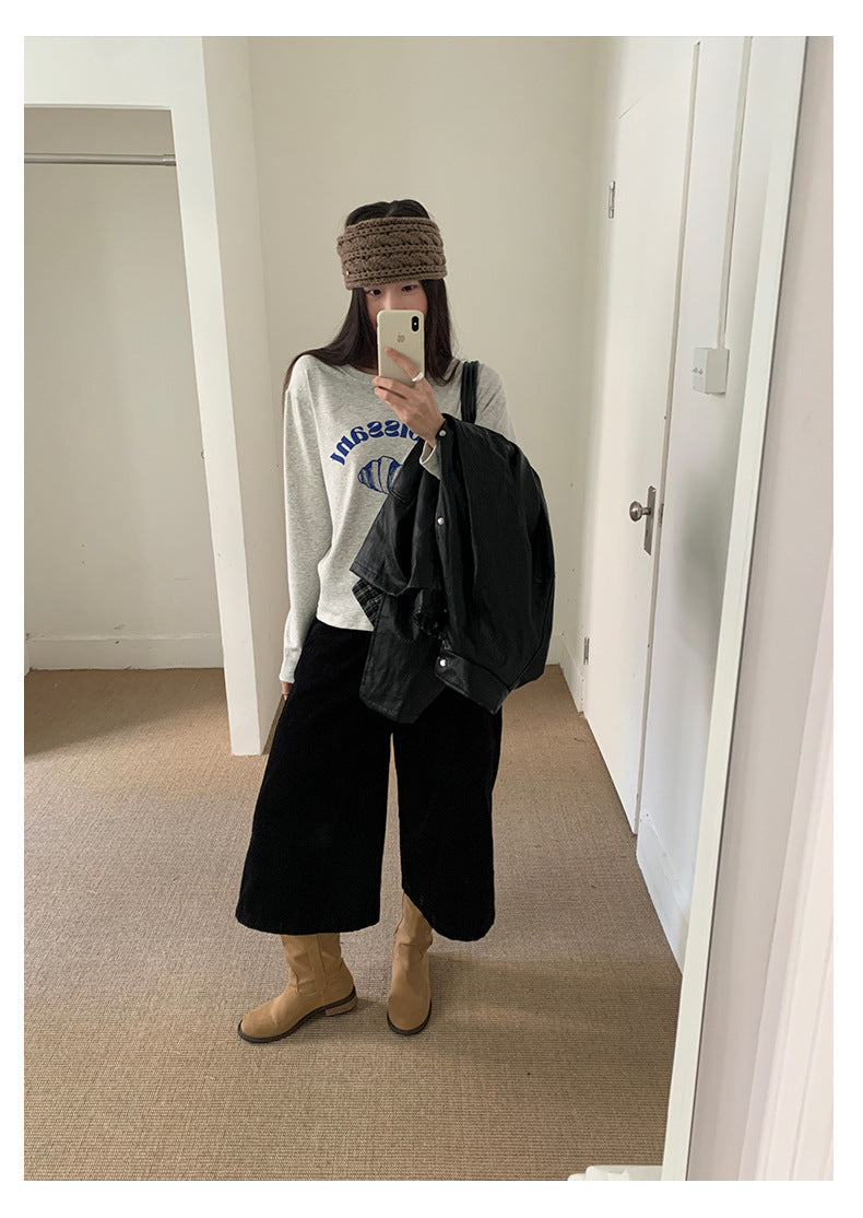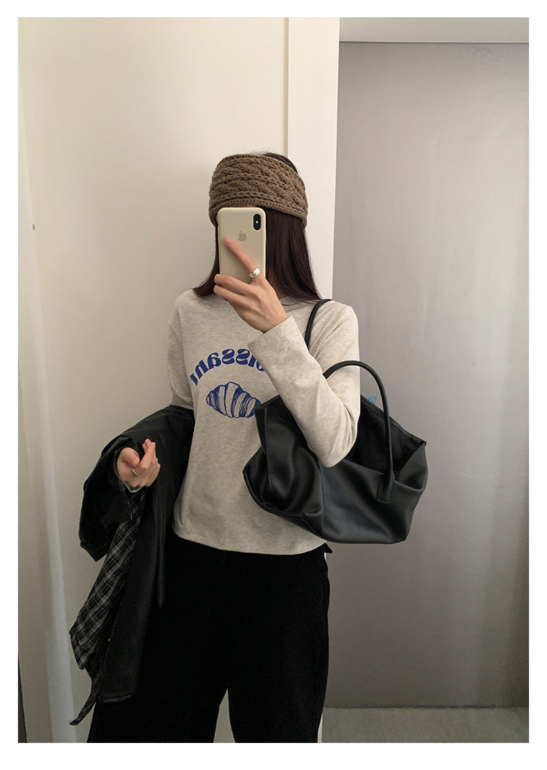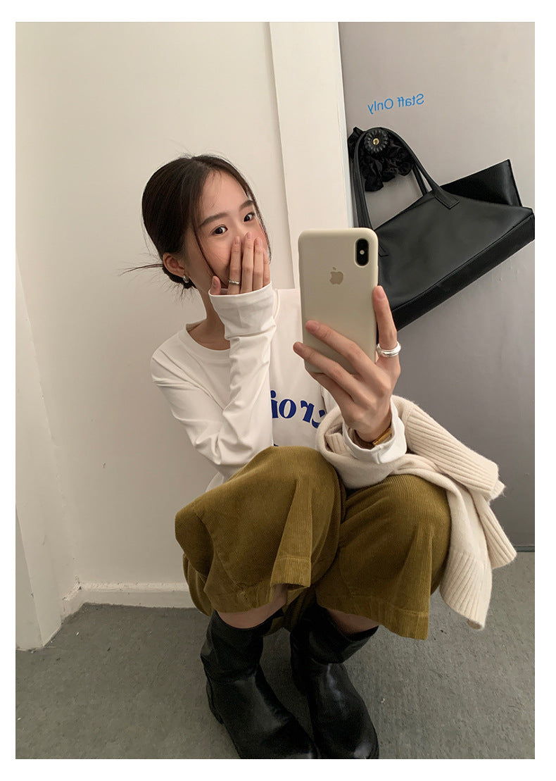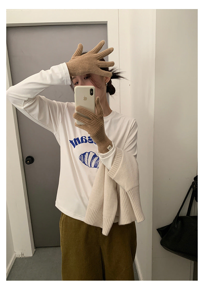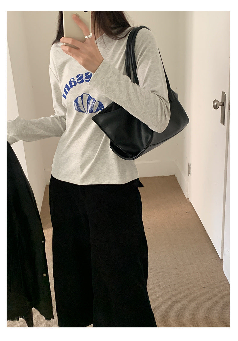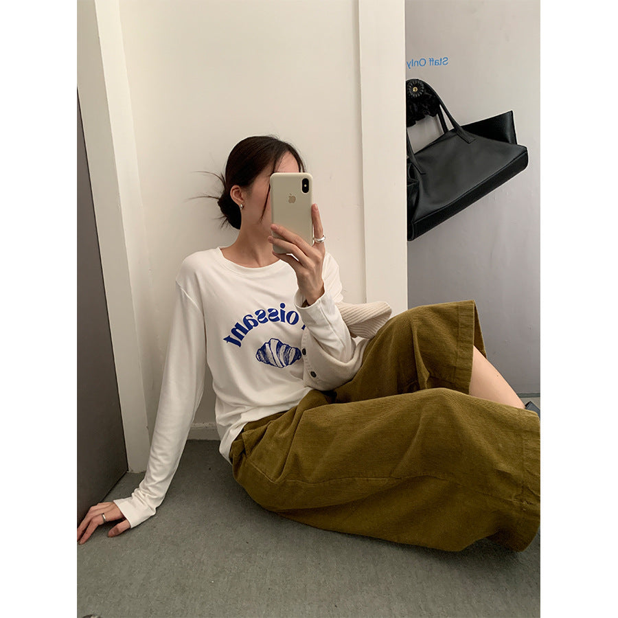 【H550】實拍韓系牛角印花長袖棉質T恤251007