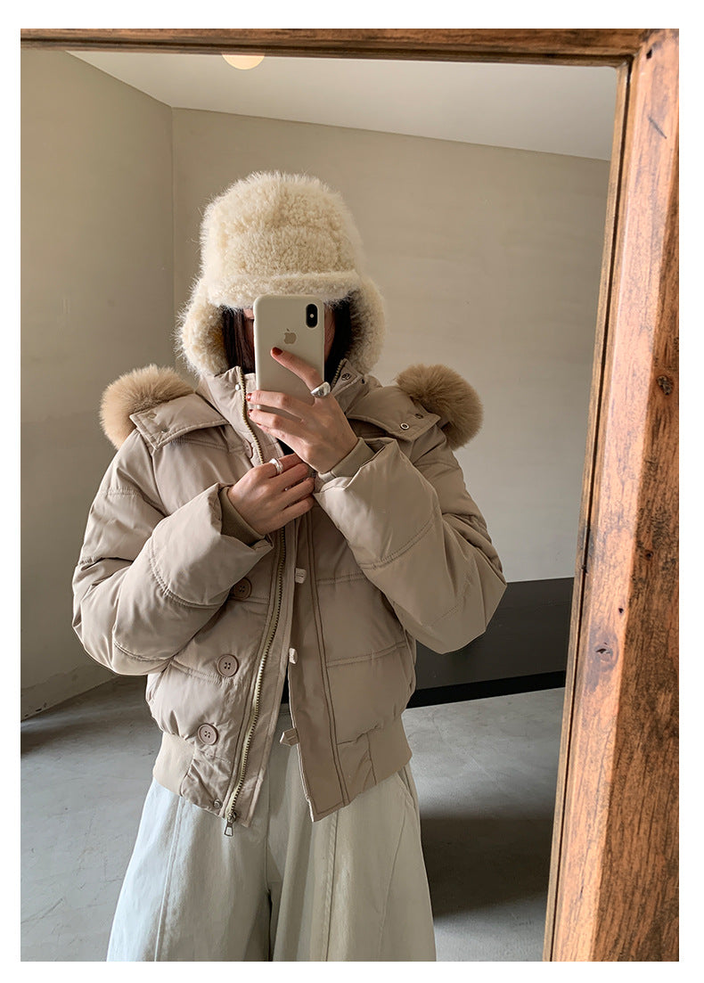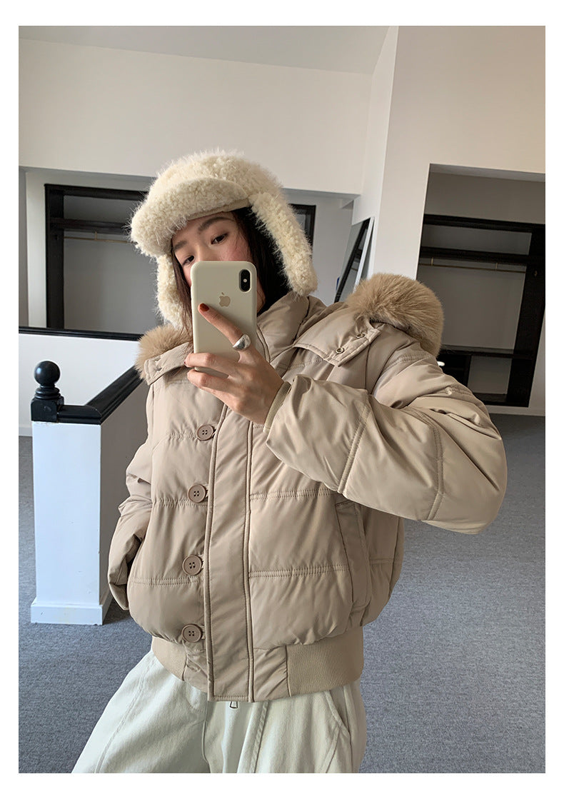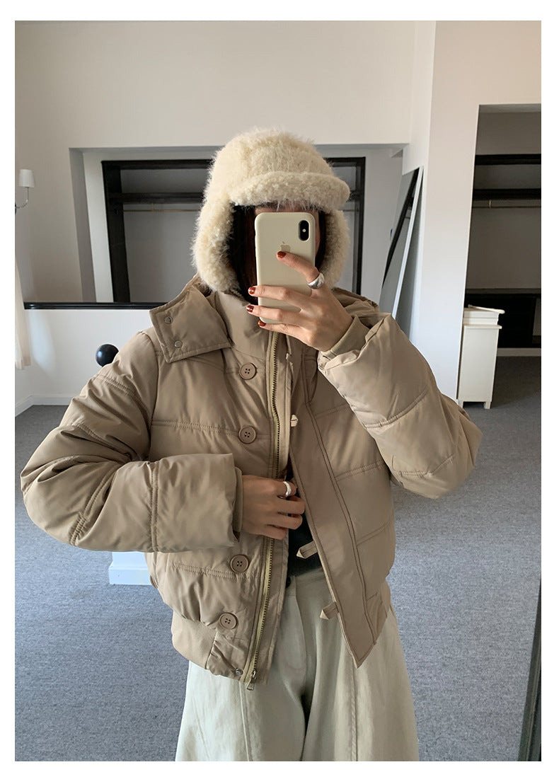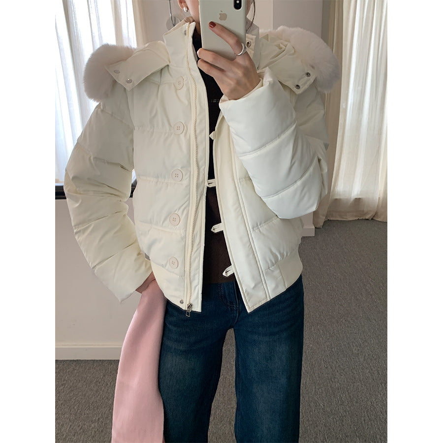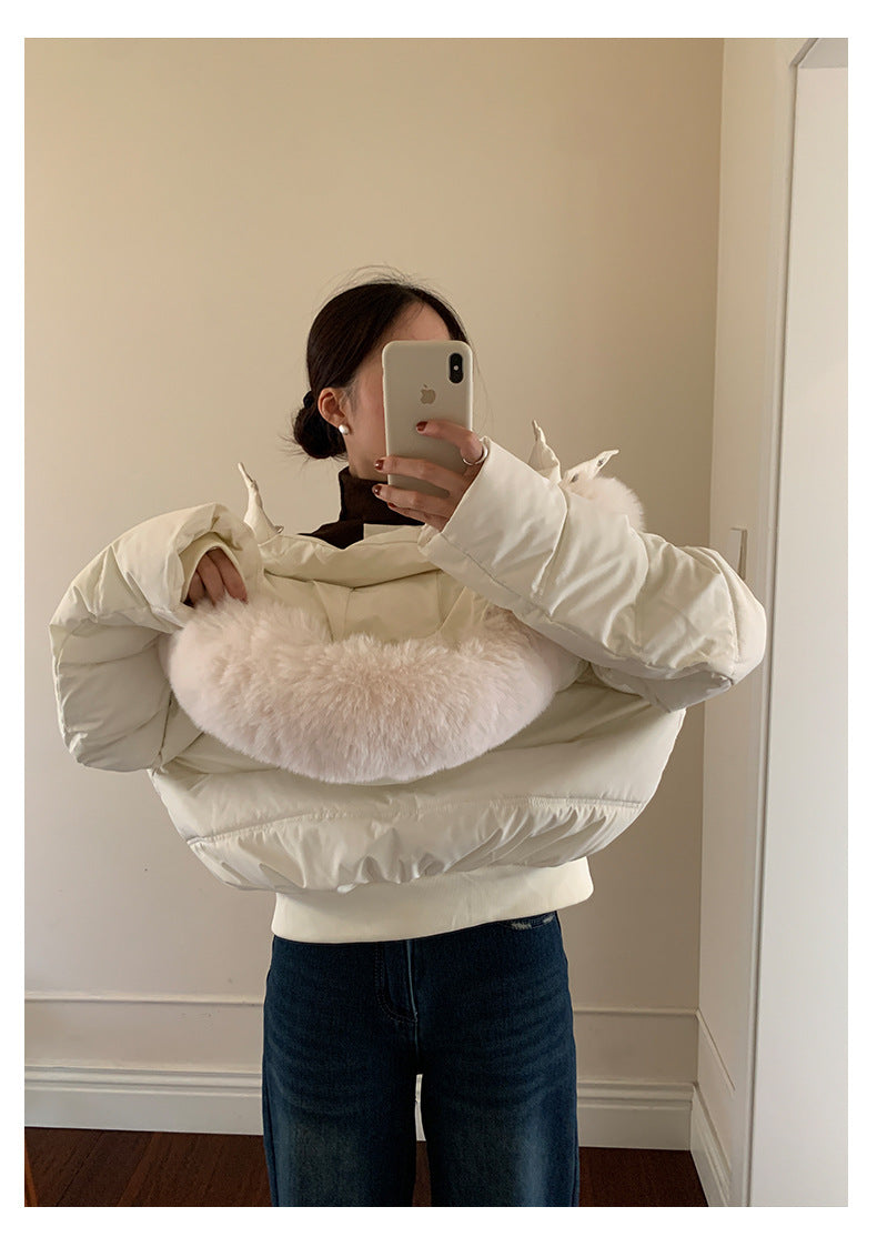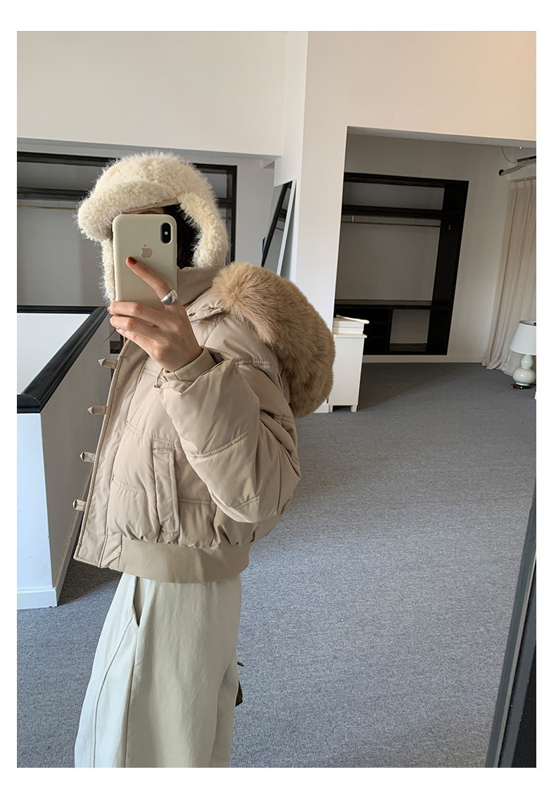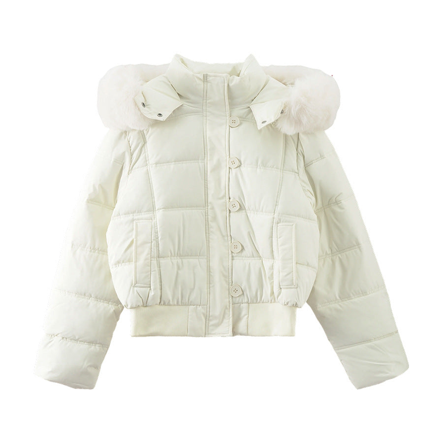 【H5501】實拍奶油風毛領連帽短款加厚棉服251118