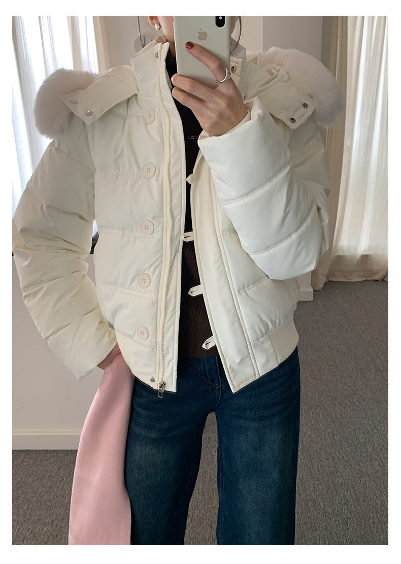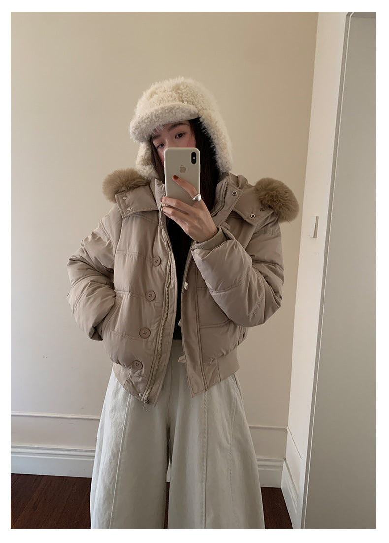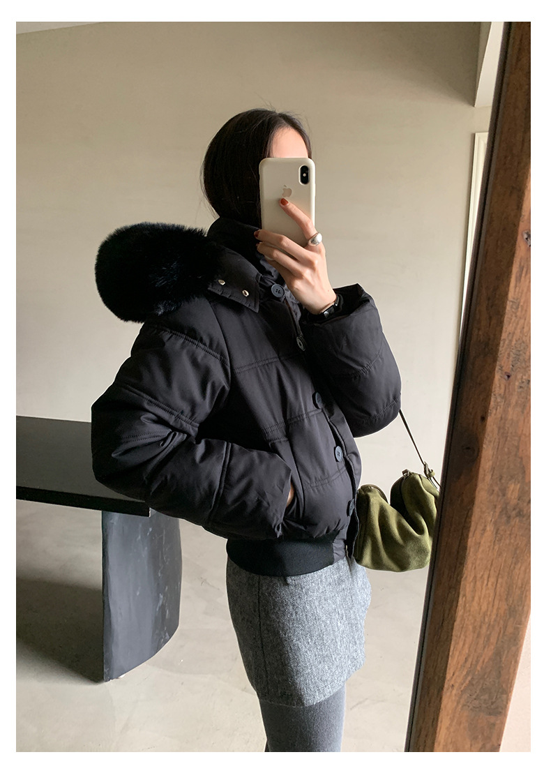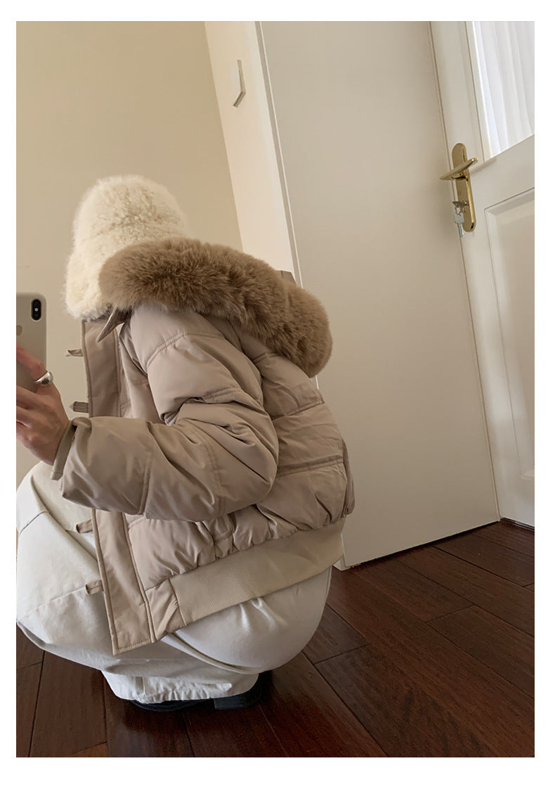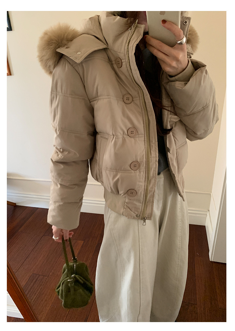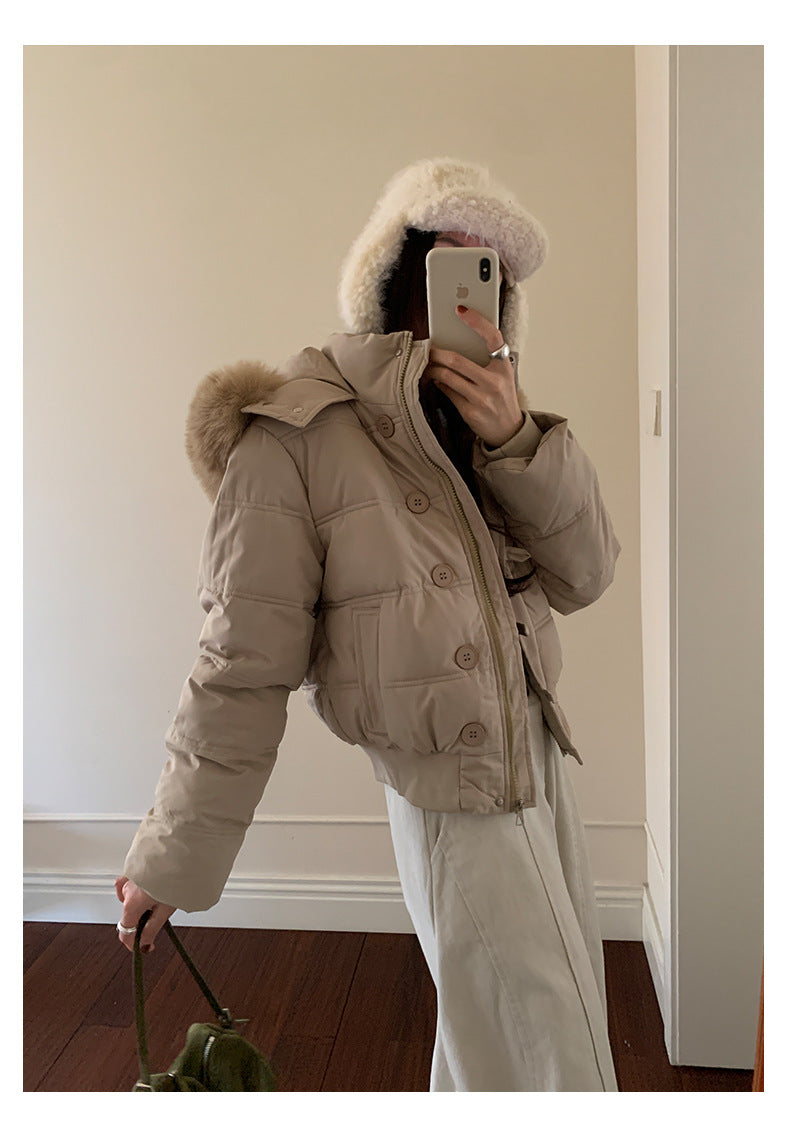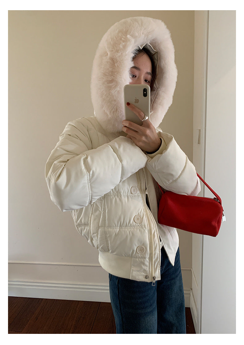 【H5501】實拍奶油風毛領連帽短款加厚棉服251118