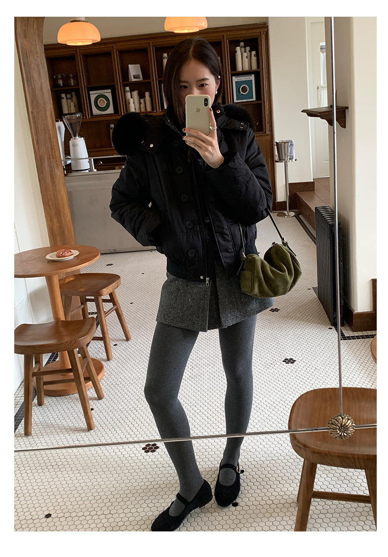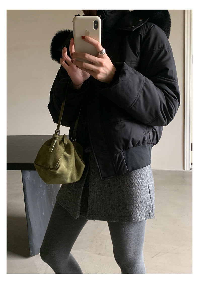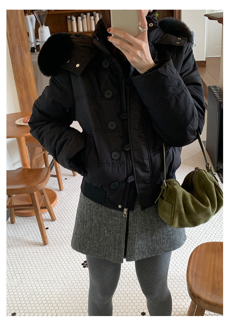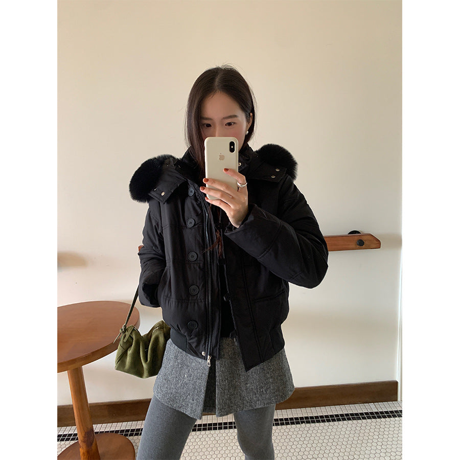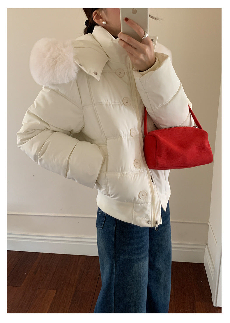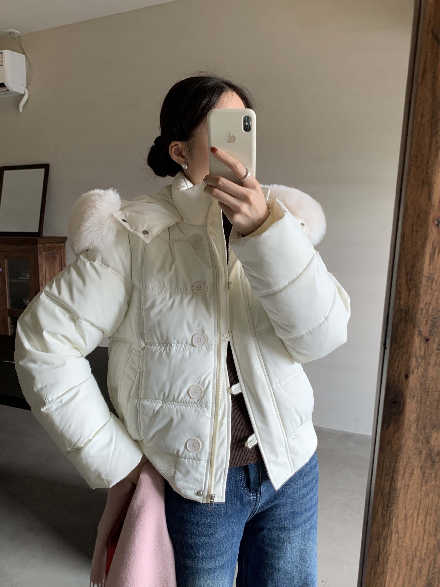 【H5501】實拍奶油風毛領連帽短款加厚棉服251118