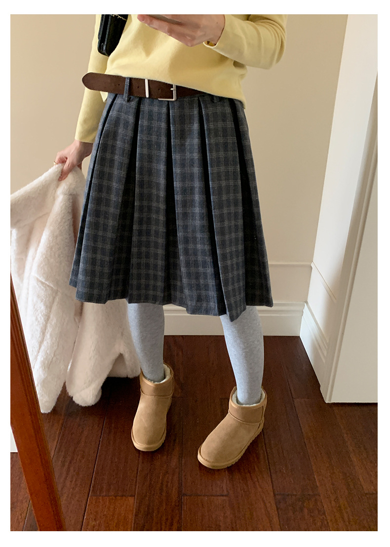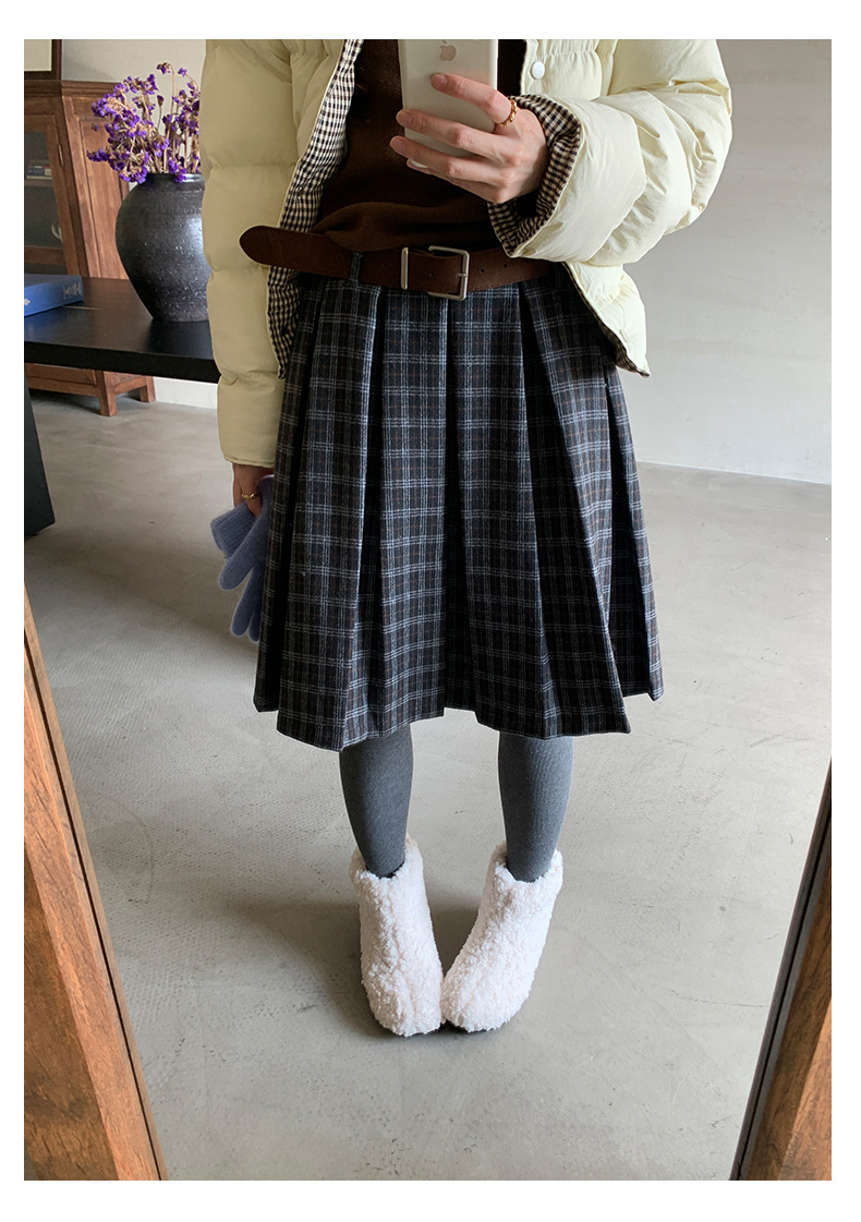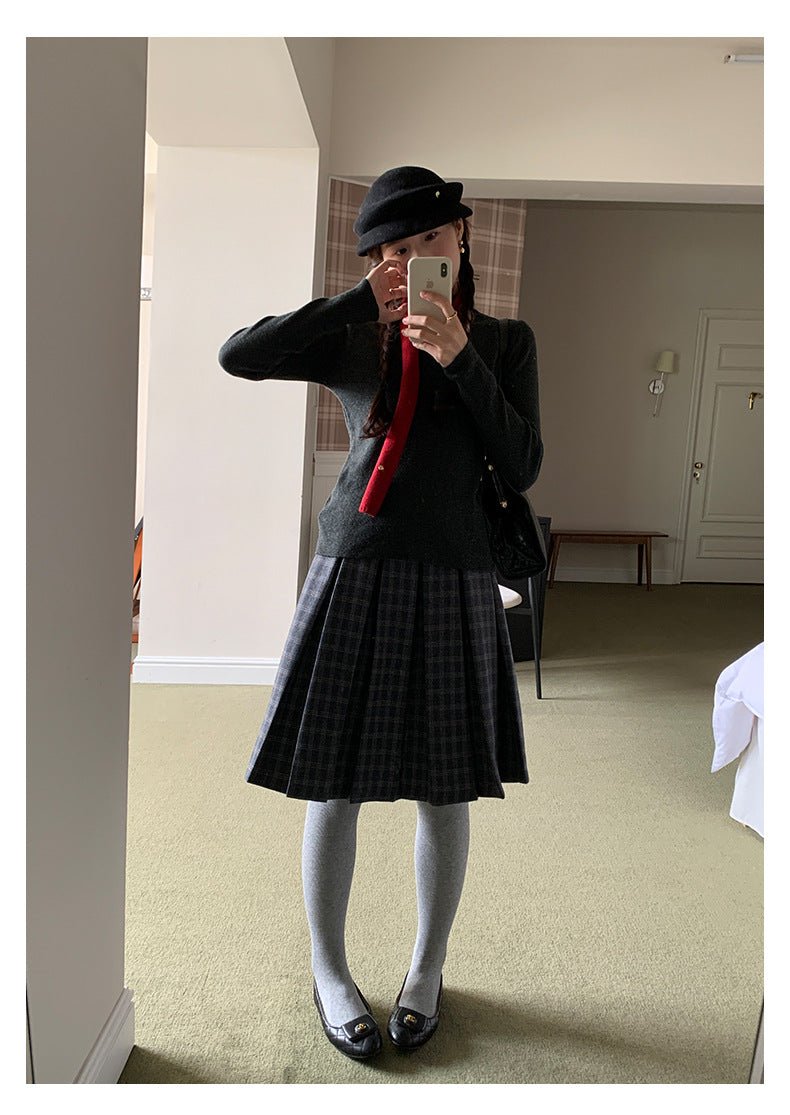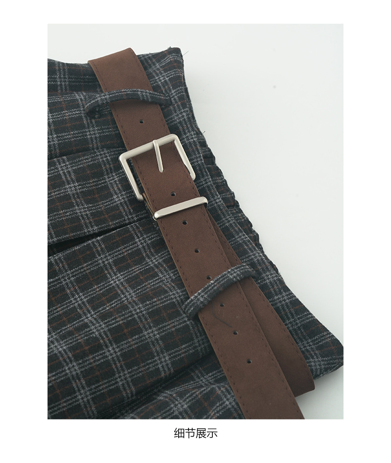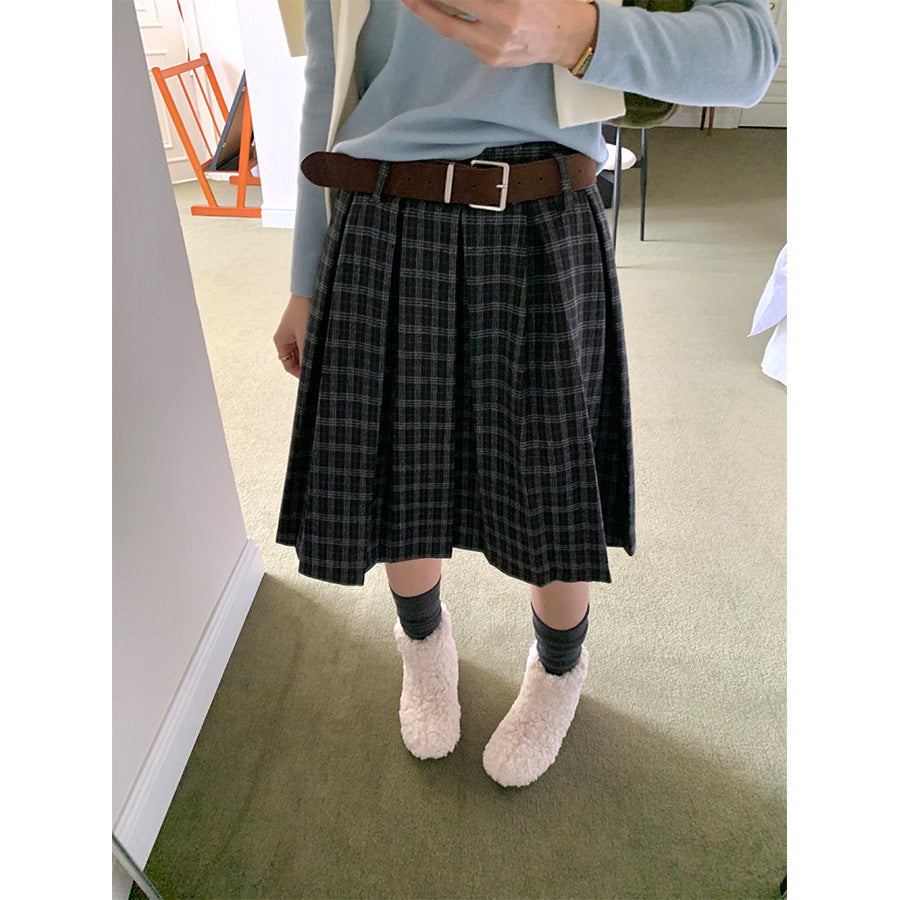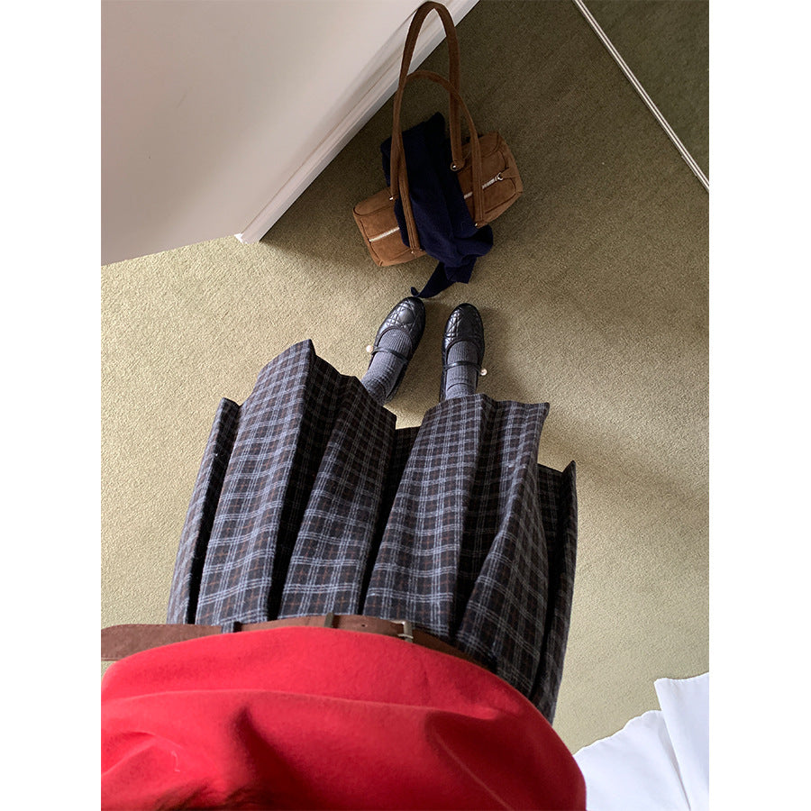 【H5502】實拍學院復古磨毛格子百褶A字裙251118