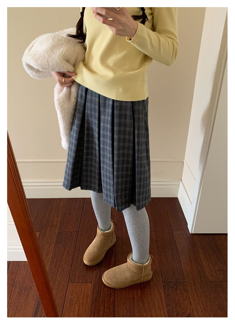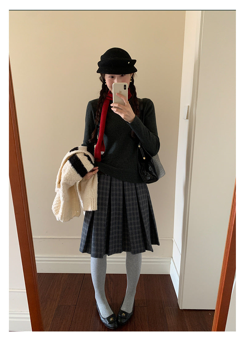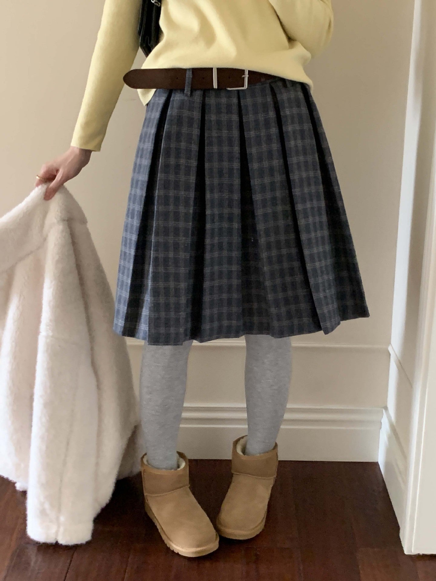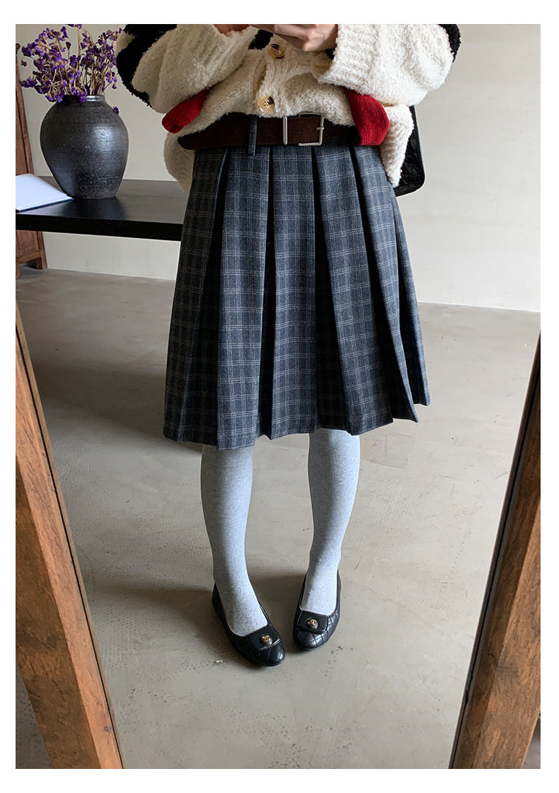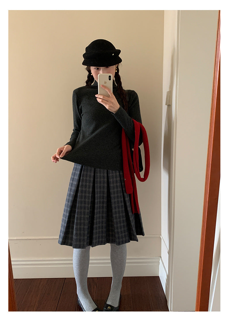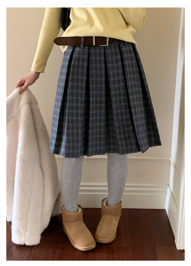 【H5502】實拍學院復古磨毛格子百褶A字裙251118