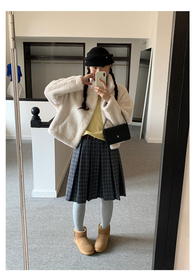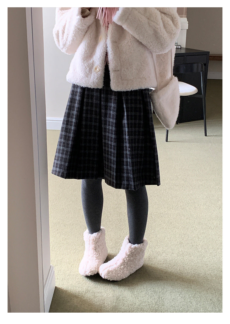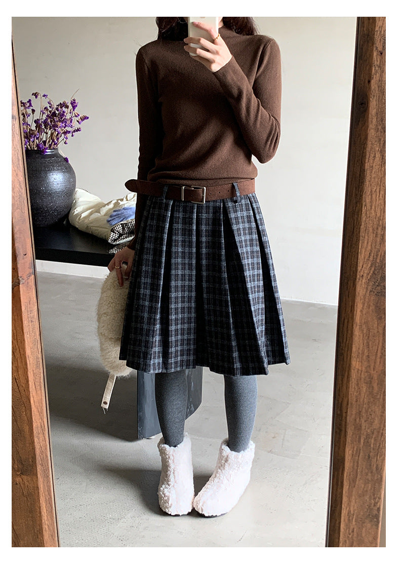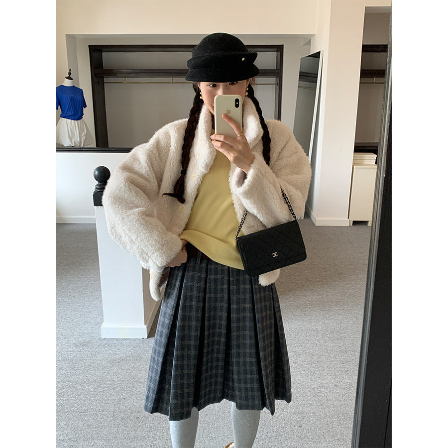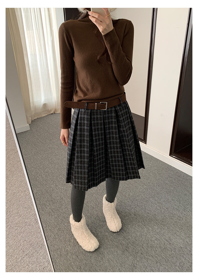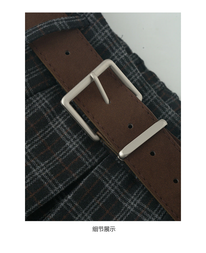 【H5502】實拍學院復古磨毛格子百褶A字裙251118
