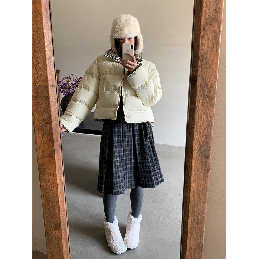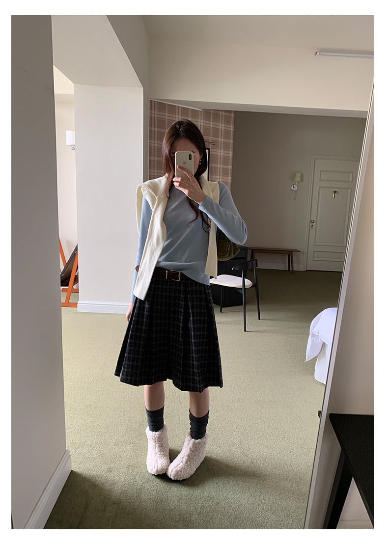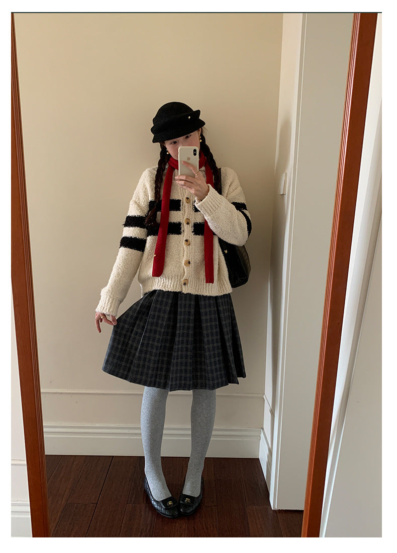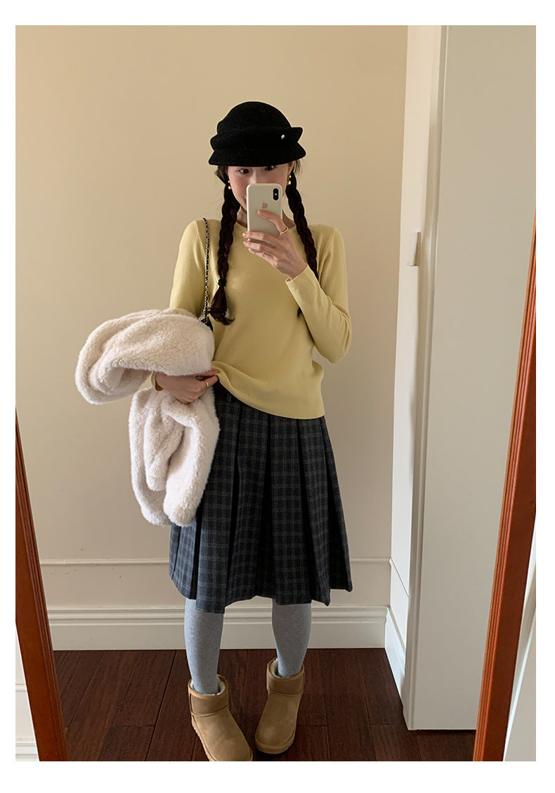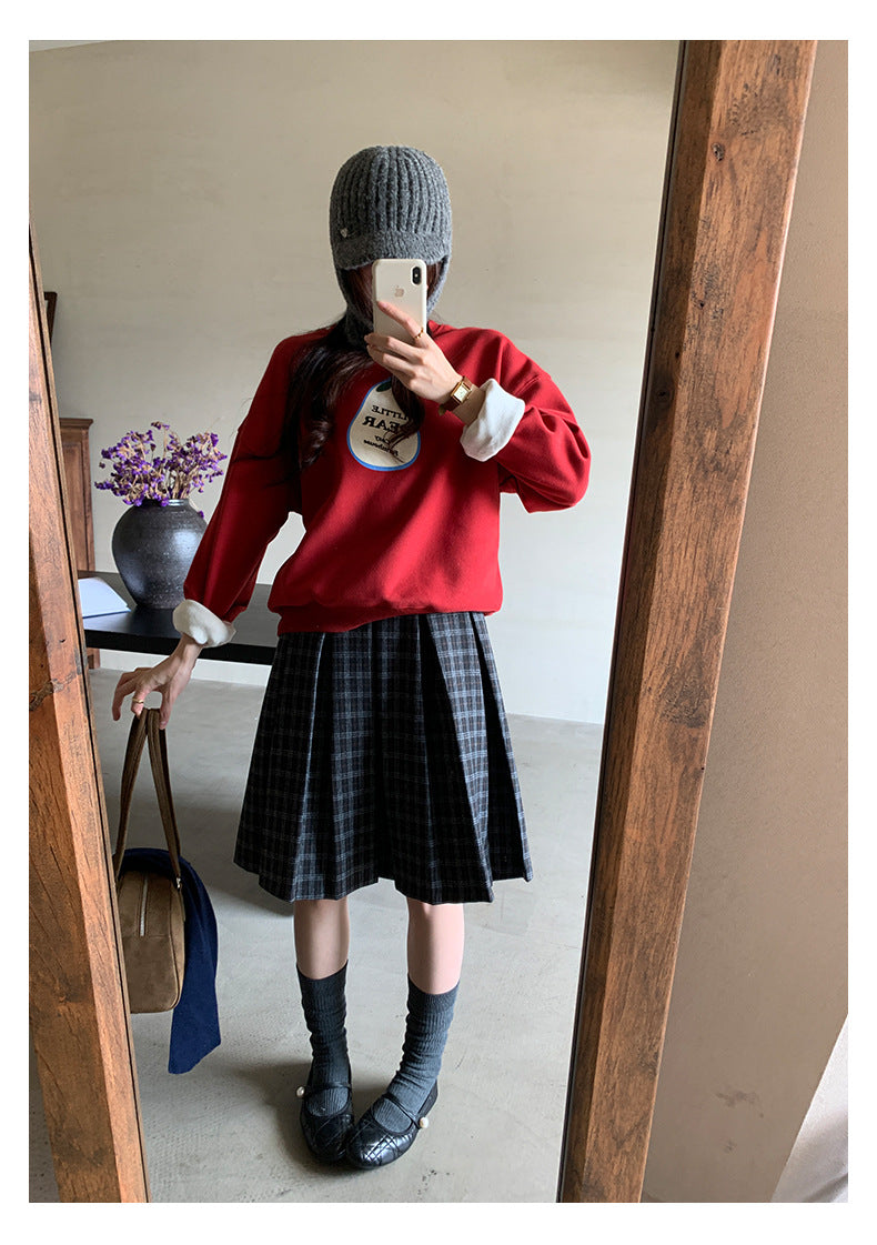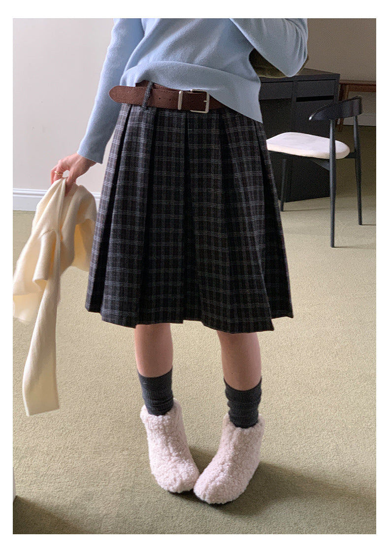 【H5502】實拍學院復古磨毛格子百褶A字裙251118