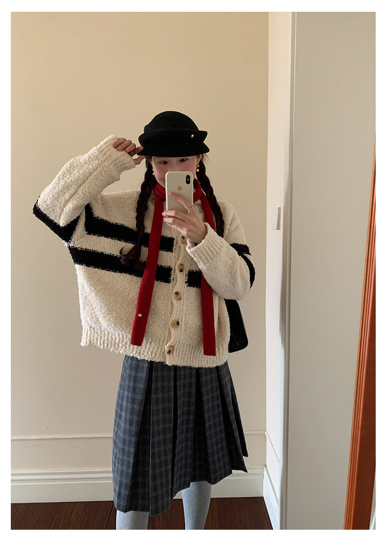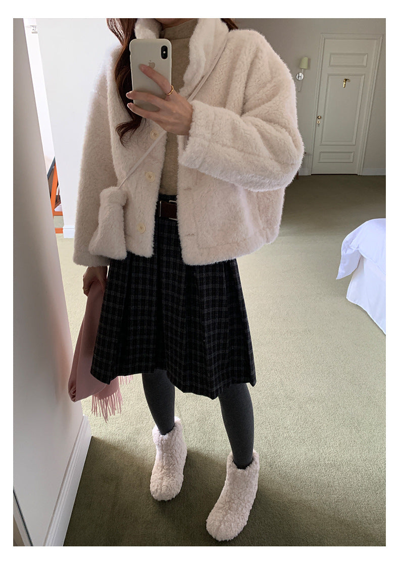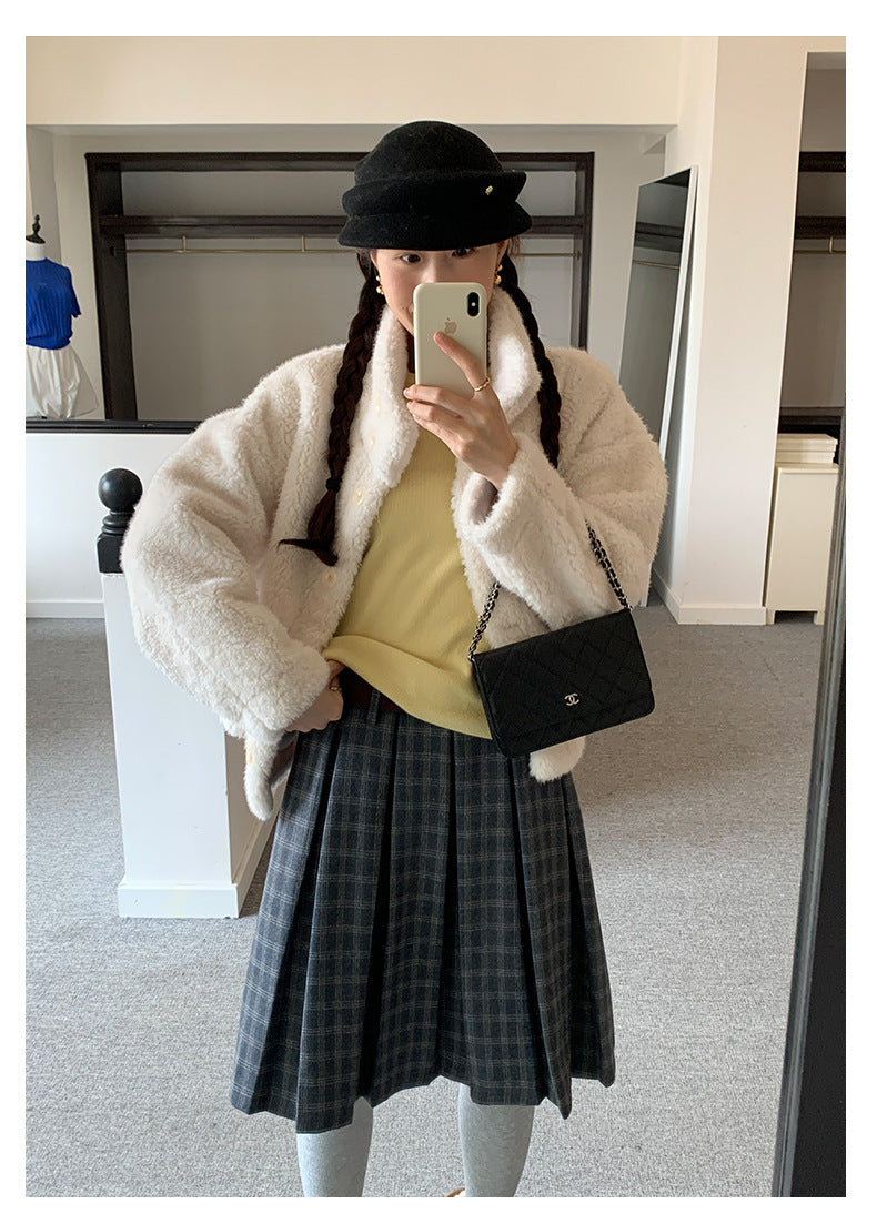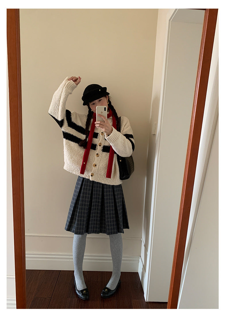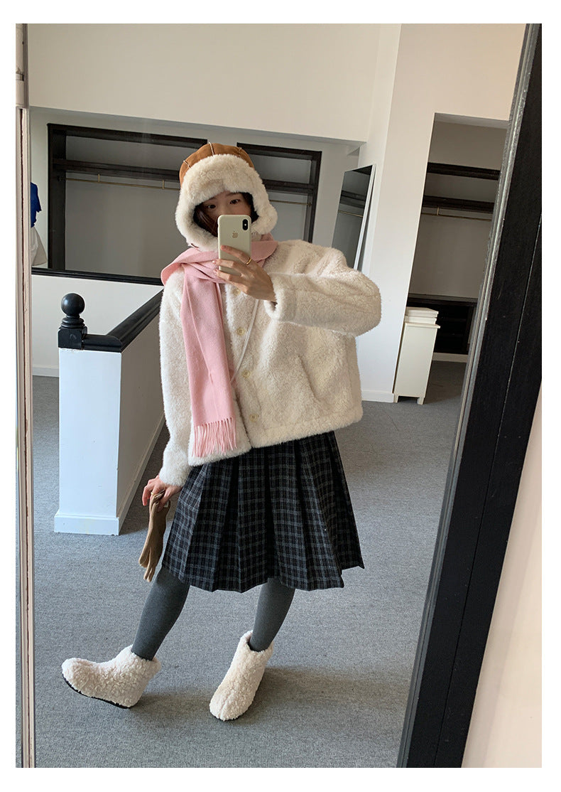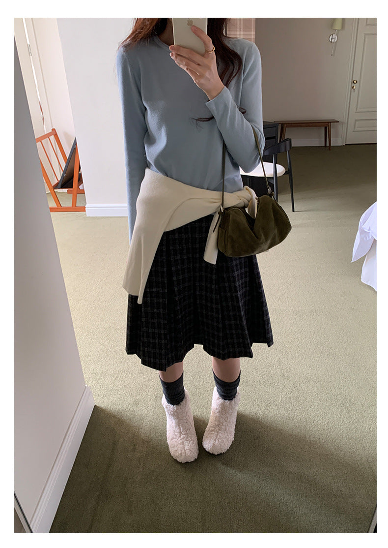 【H5502】實拍學院復古磨毛格子百褶A字裙251118
