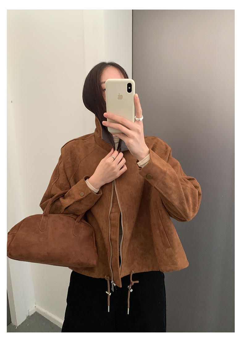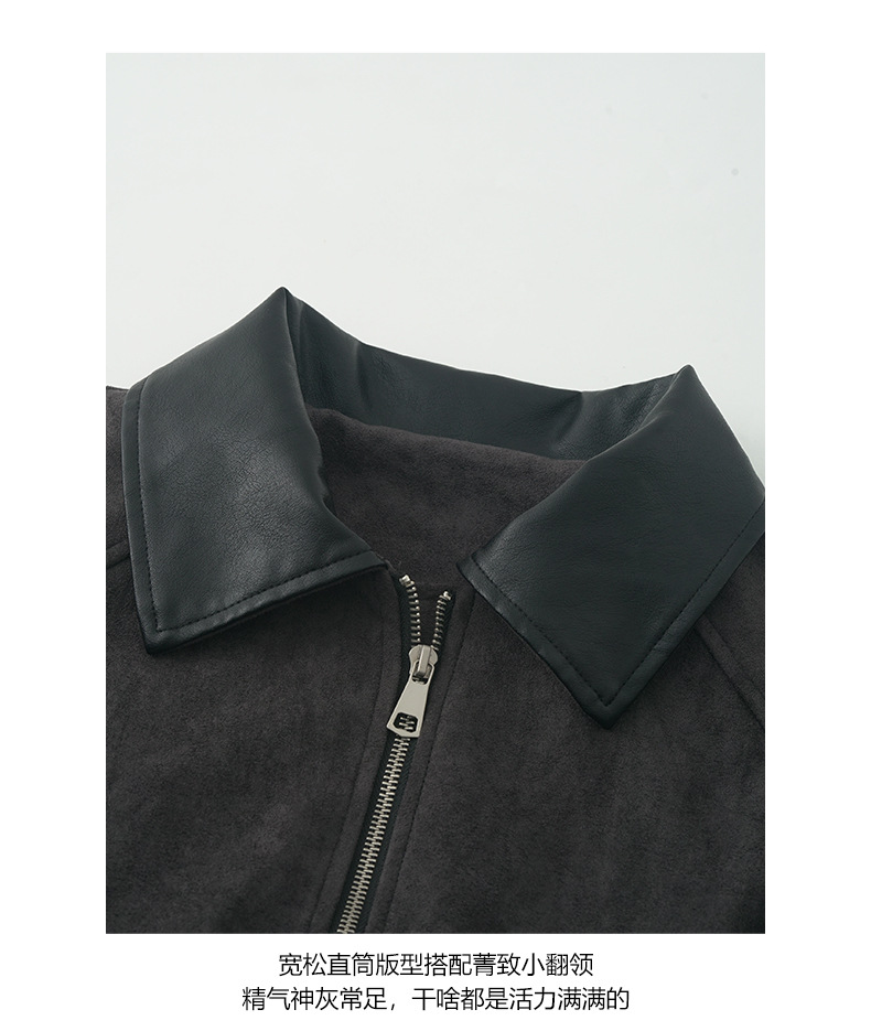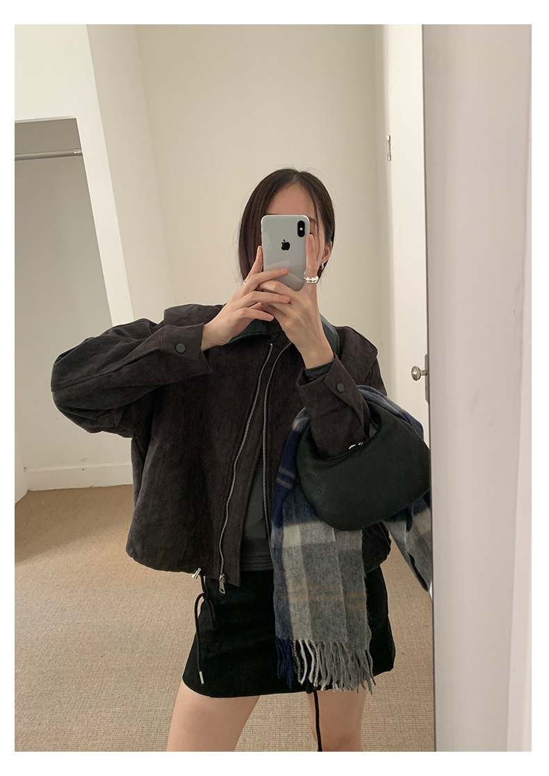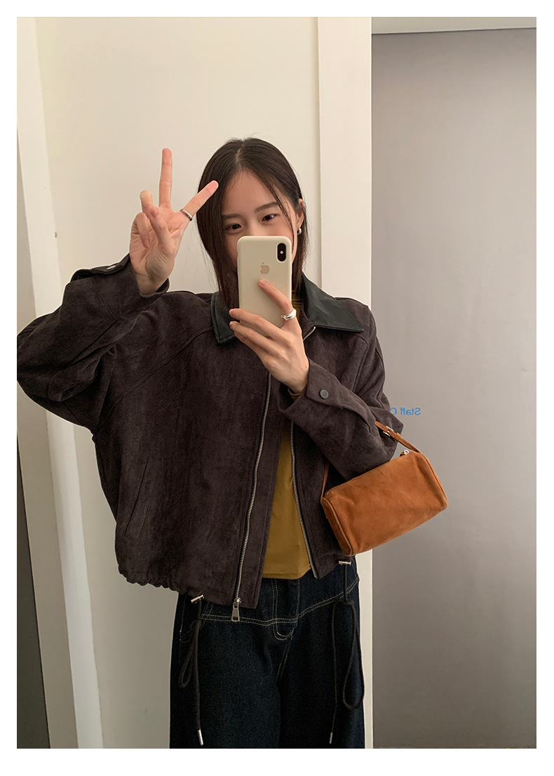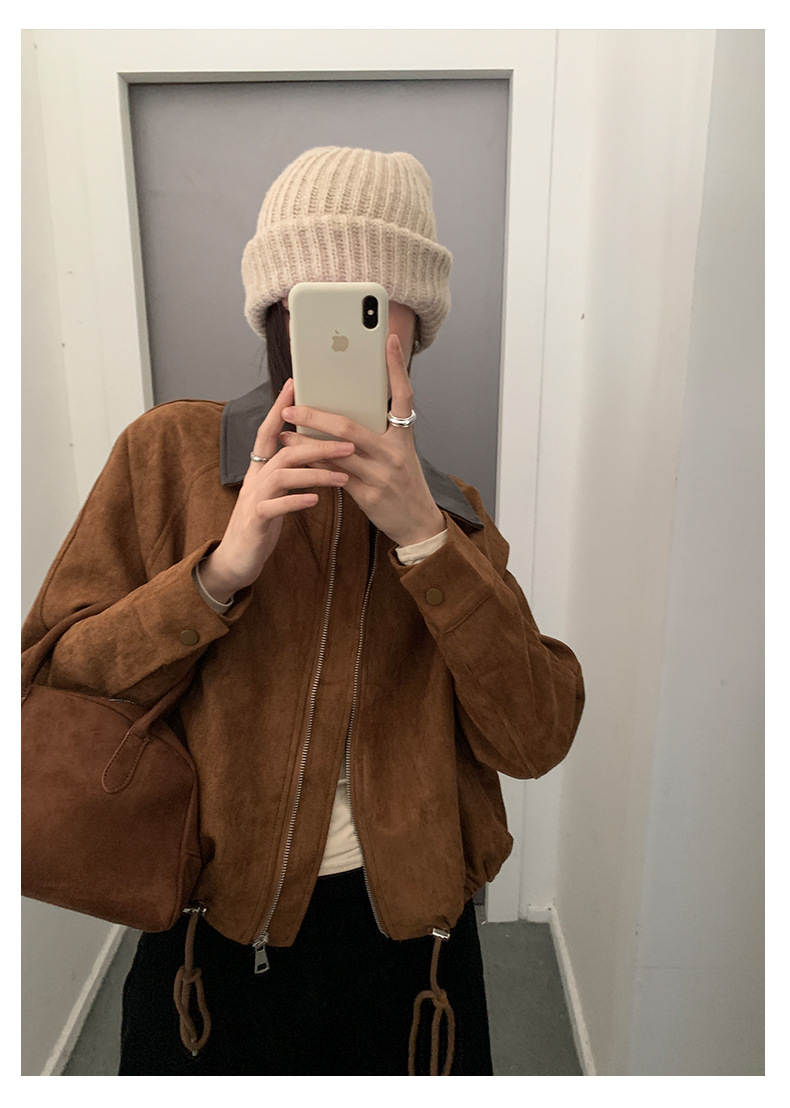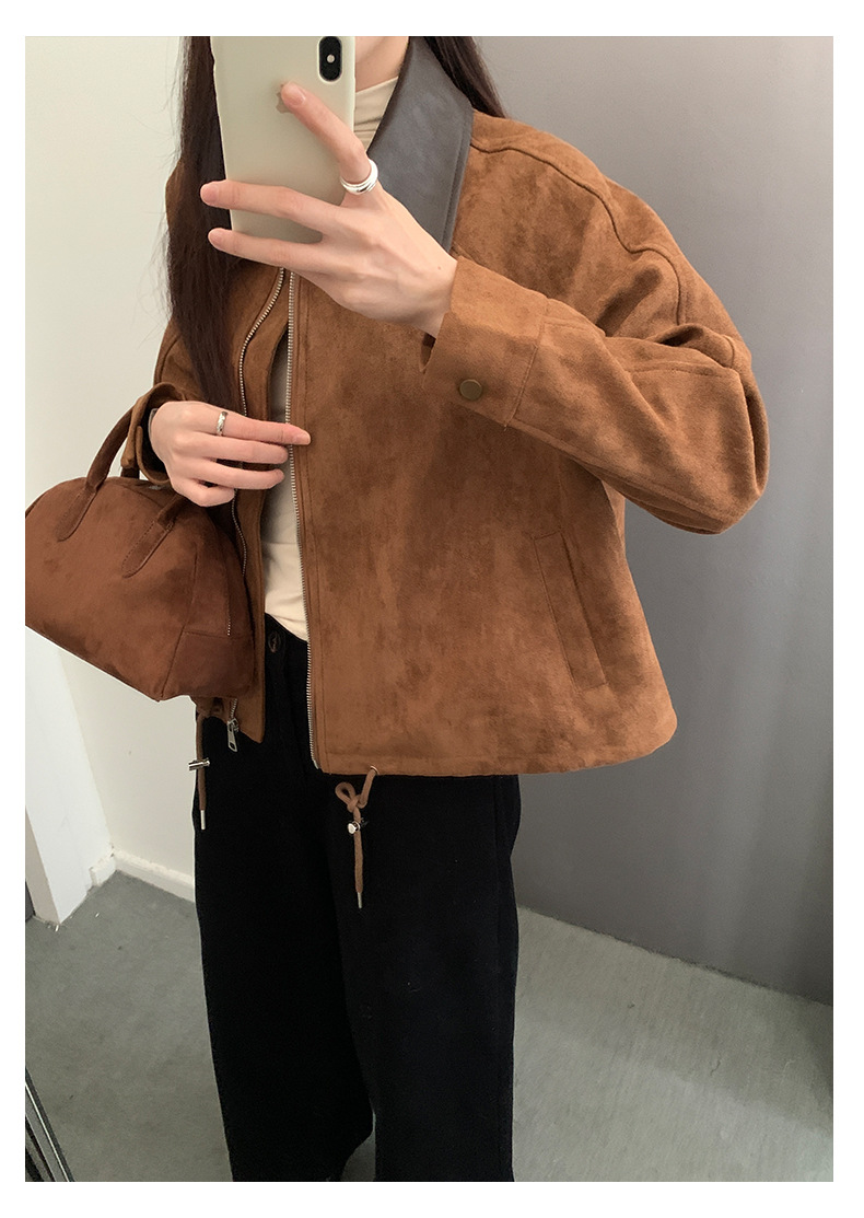 【H556】實拍復古皮領麂皮絨短版外套251007