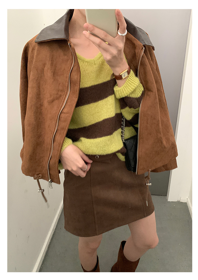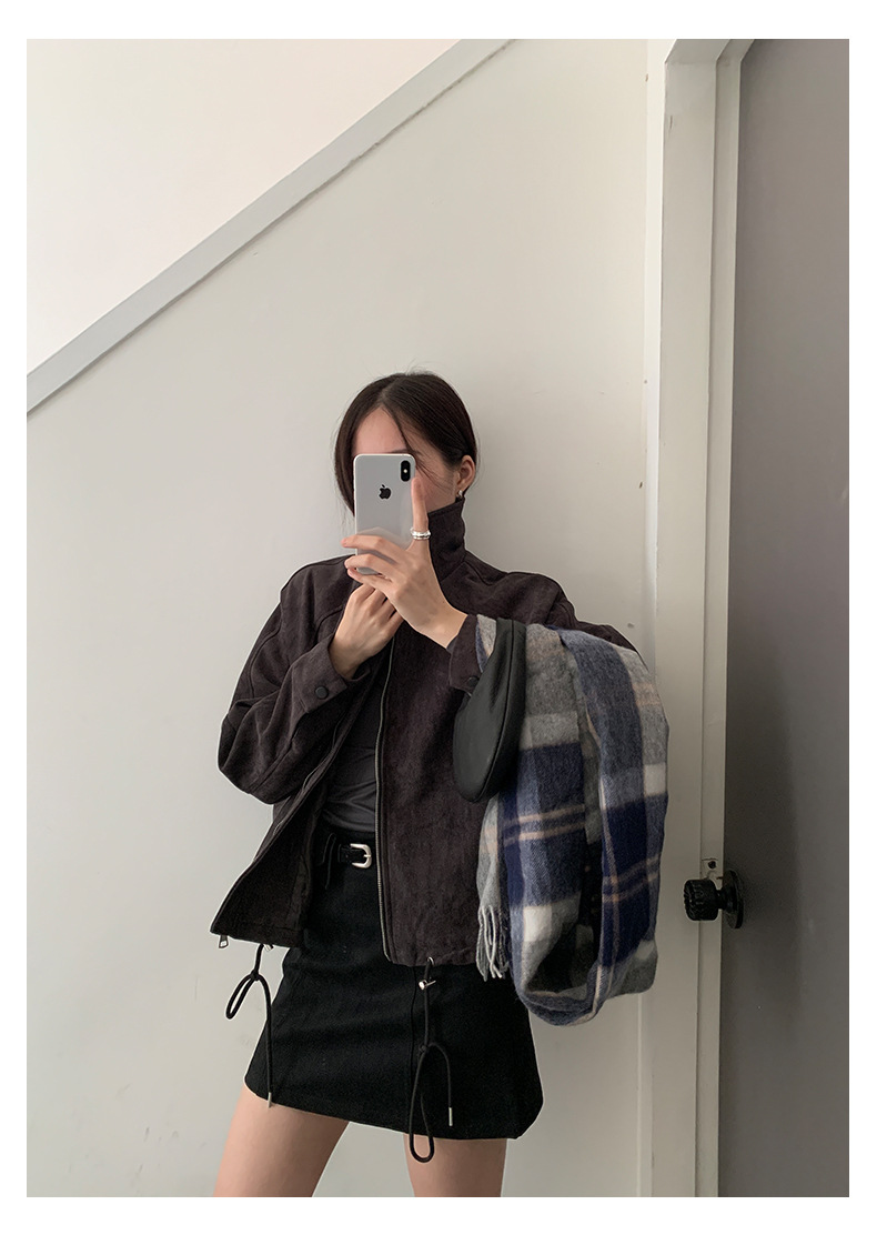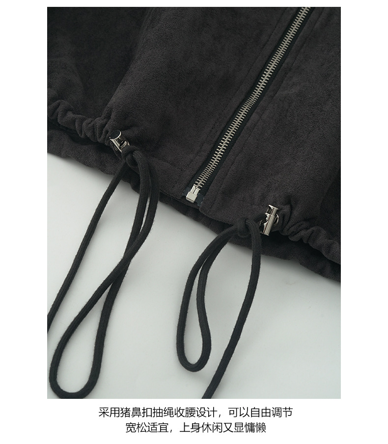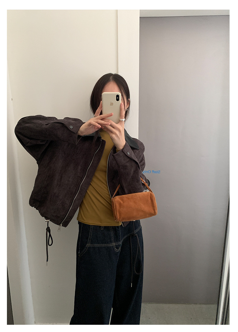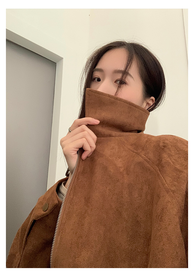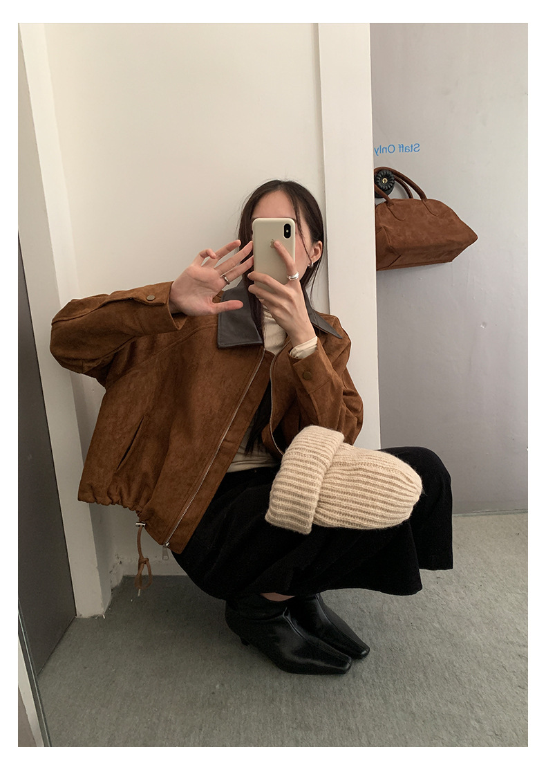 【H556】實拍復古皮領麂皮絨短版外套251007