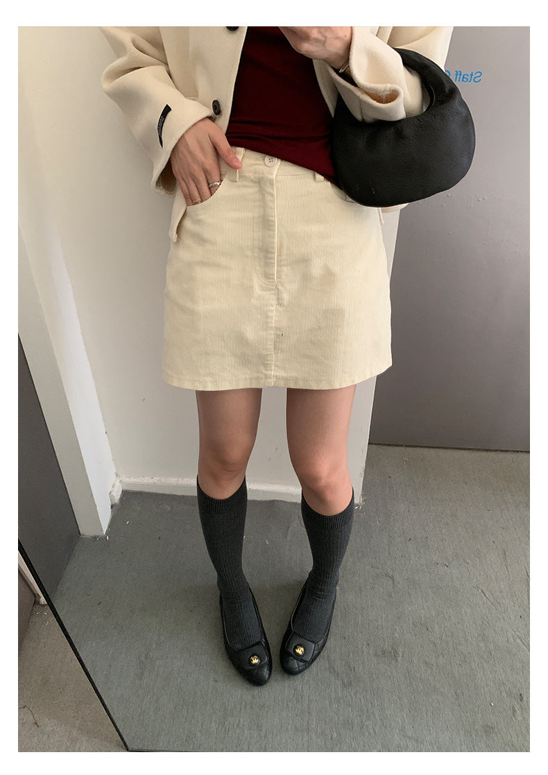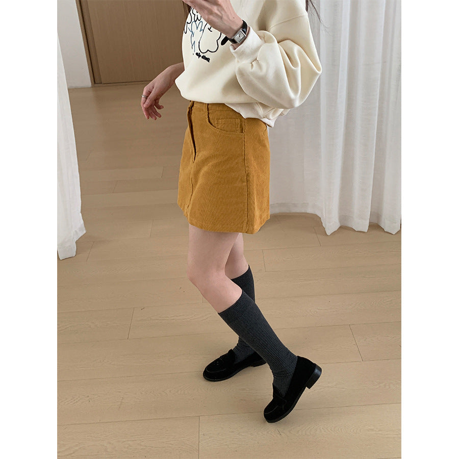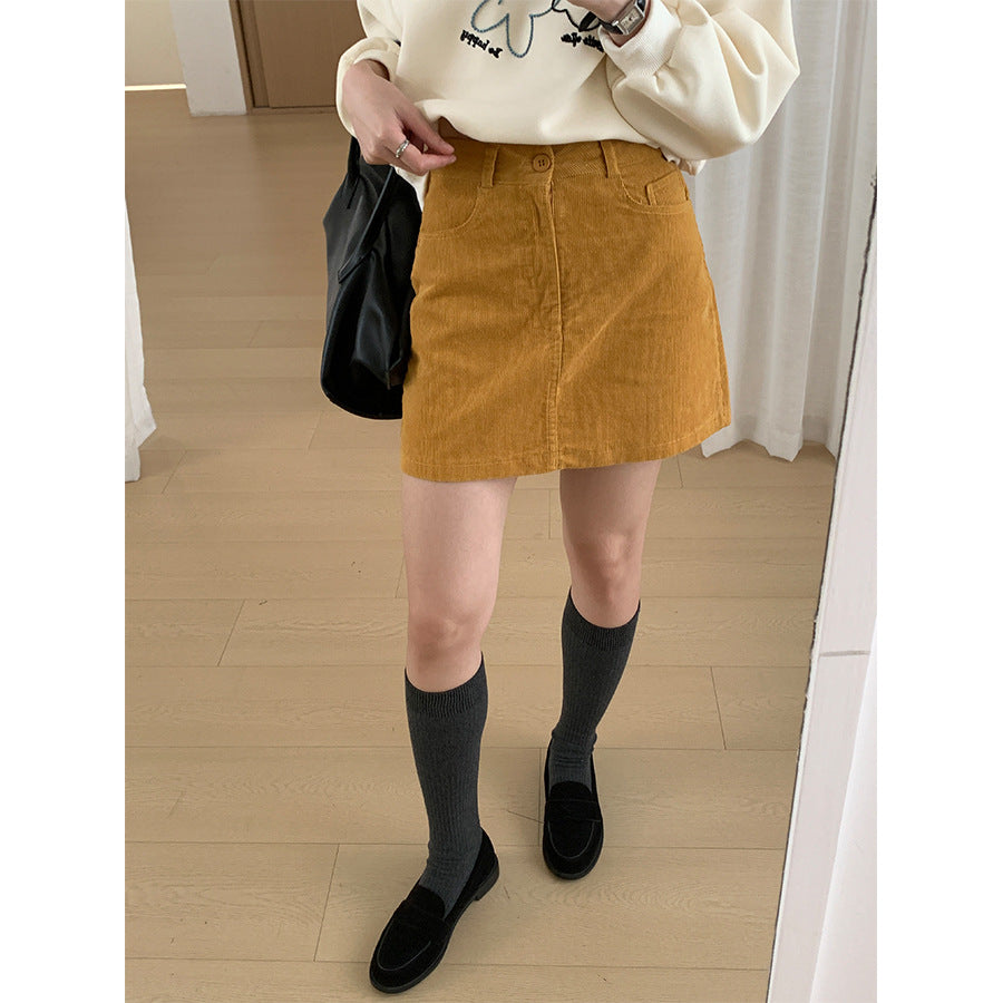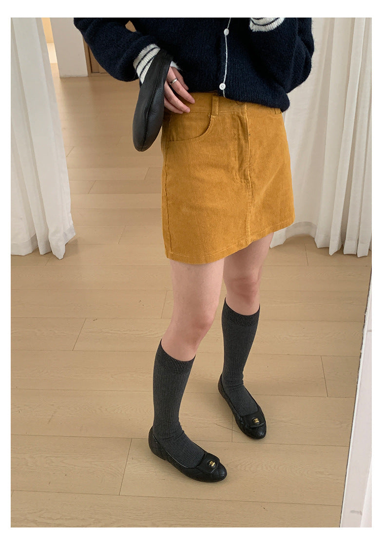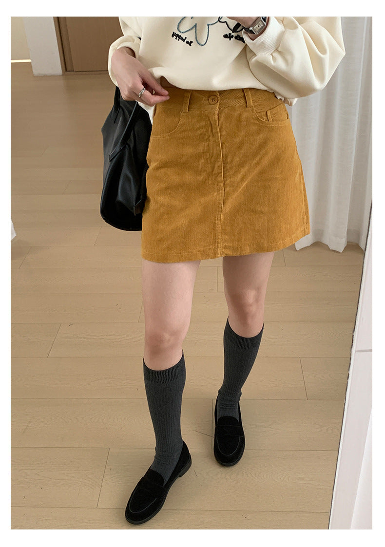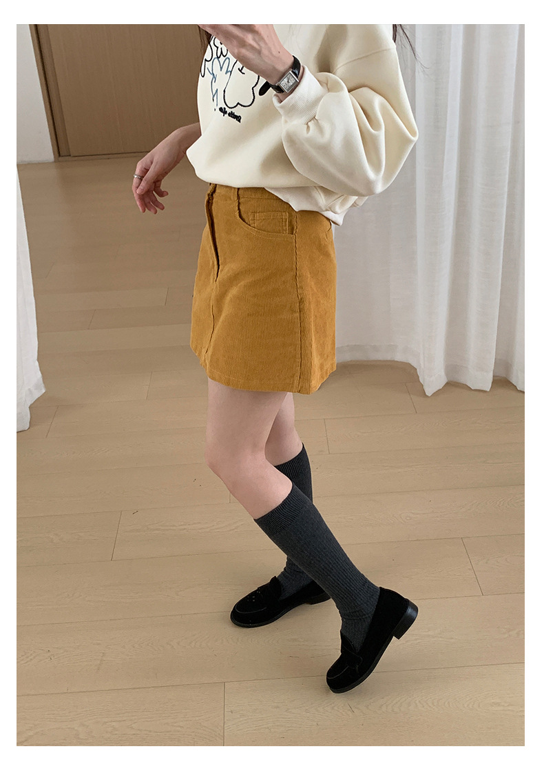 【H562】實拍秋冬S~XL必備復古高腰燈芯絨A字裙251021