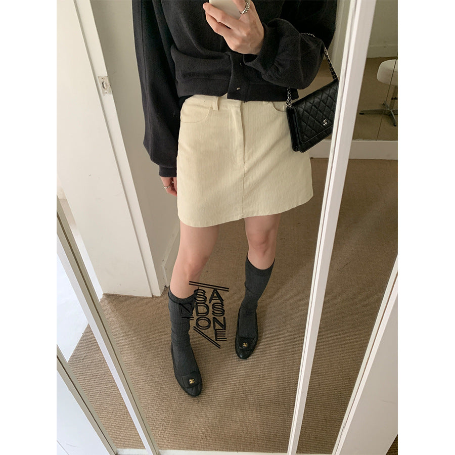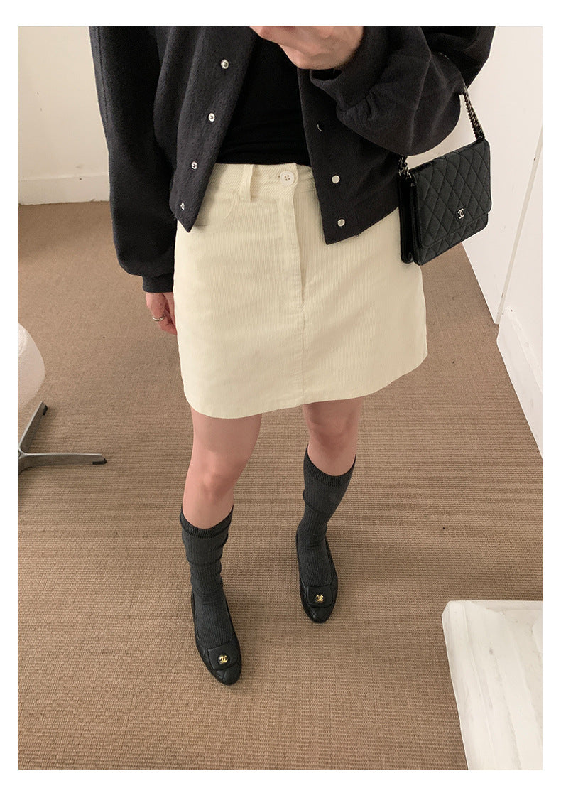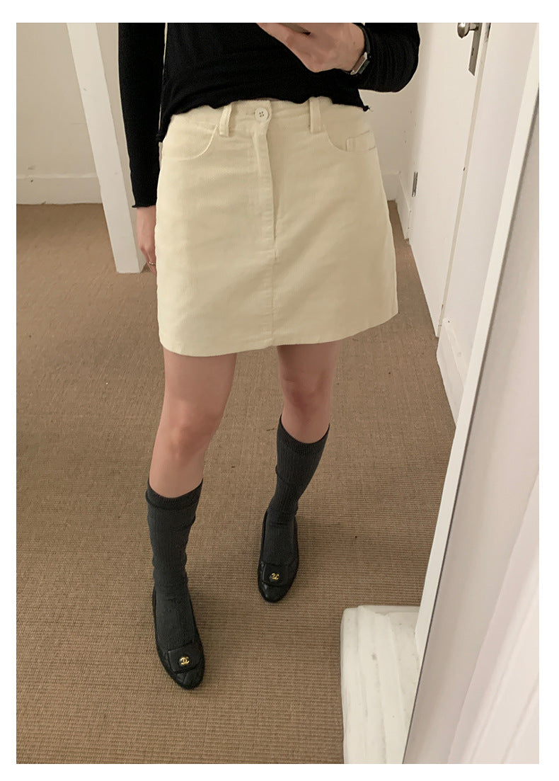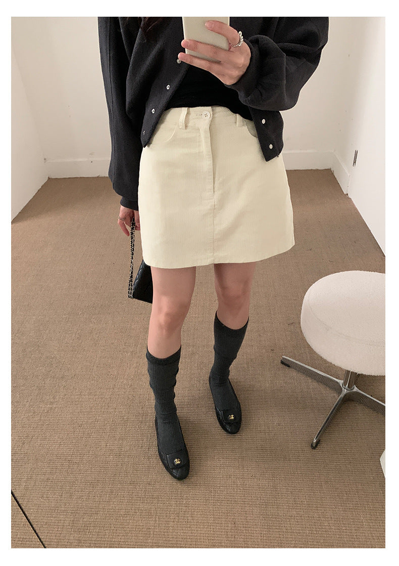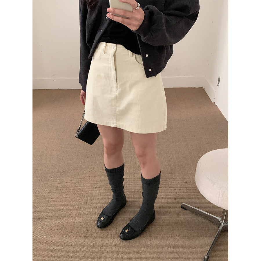 【H562】實拍秋冬S~XL必備復古高腰燈芯絨A字裙251021