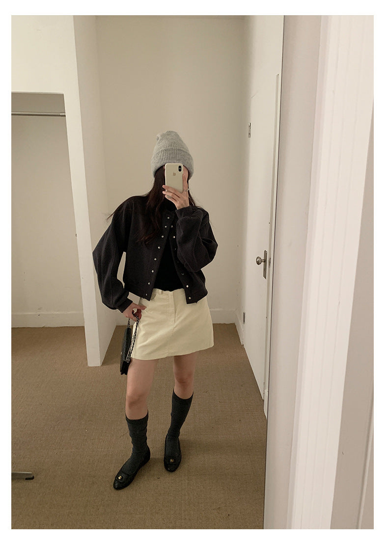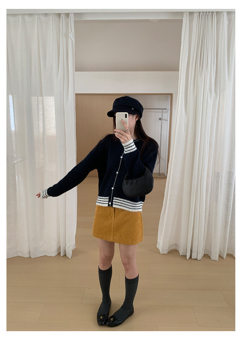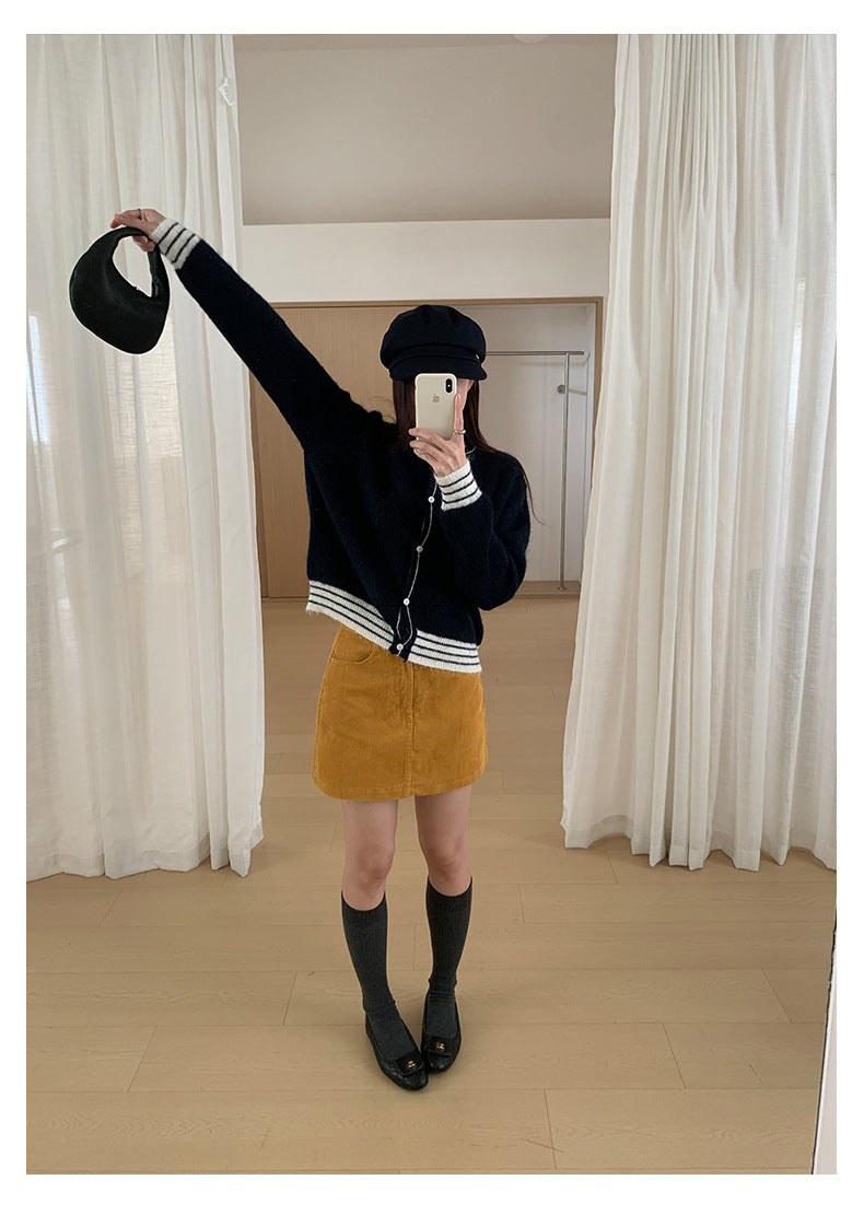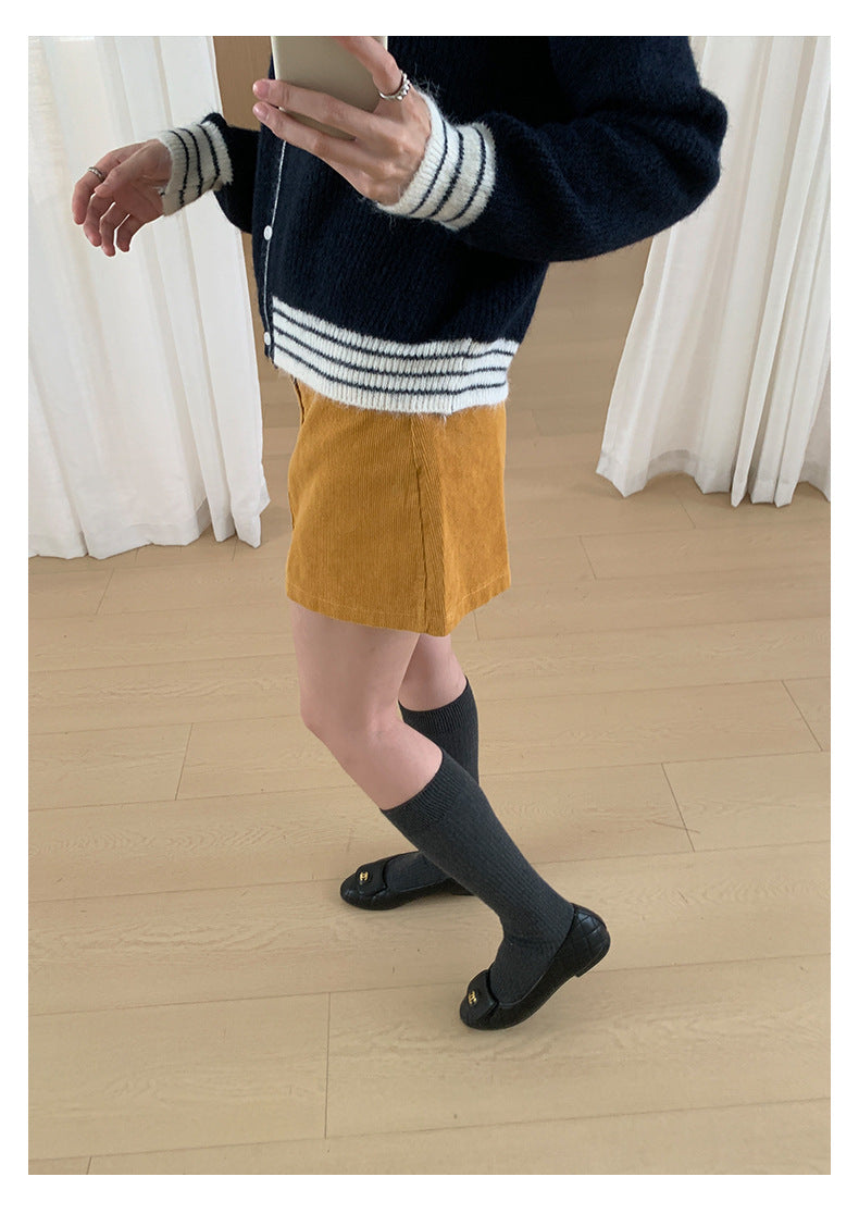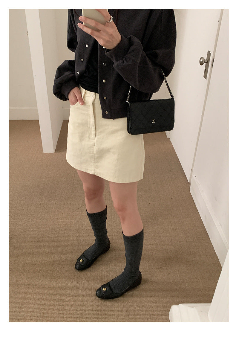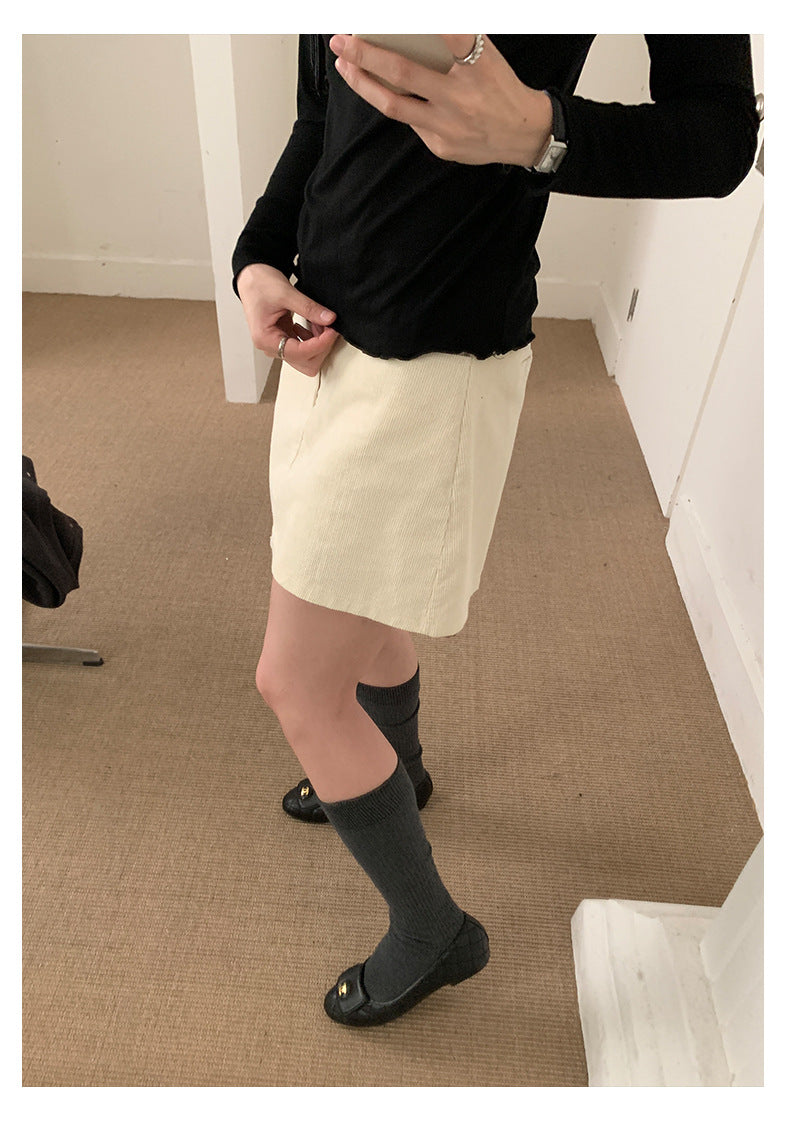 【H562】實拍秋冬S~XL必備復古高腰燈芯絨A字裙251021