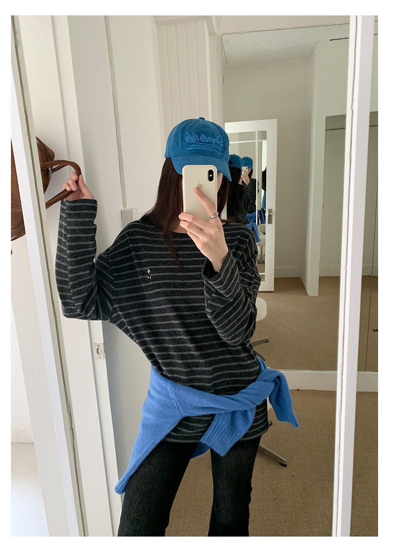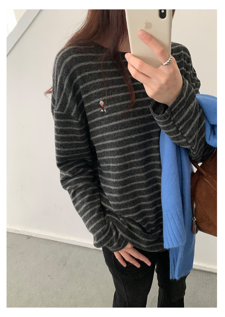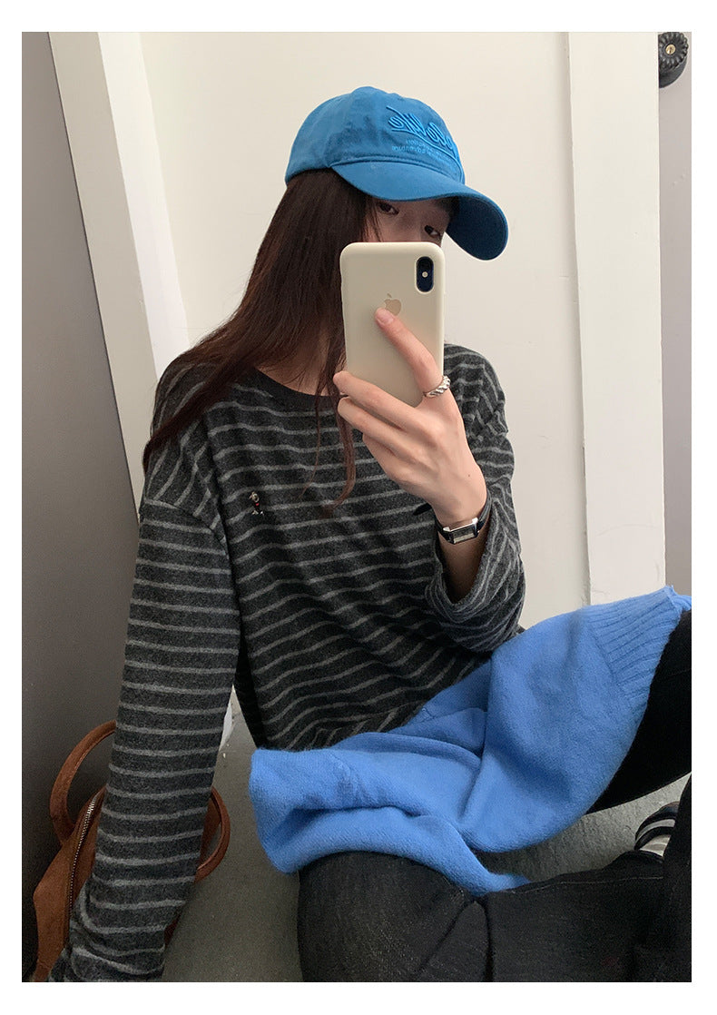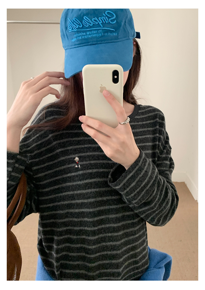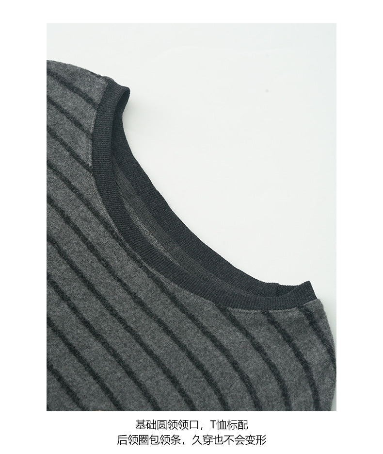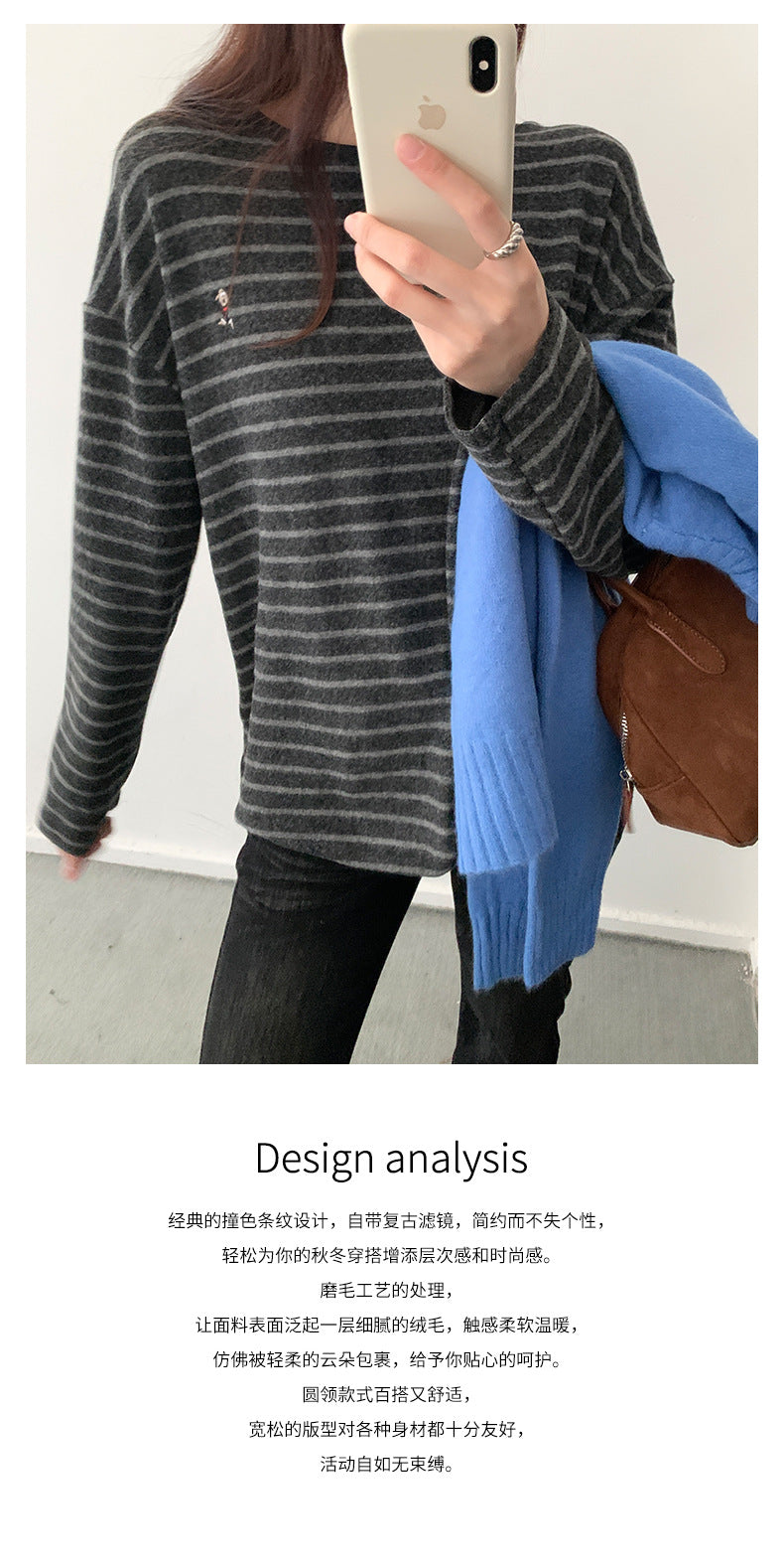 【H572】實拍復古磨毛刺繡條紋圓領T恤251021