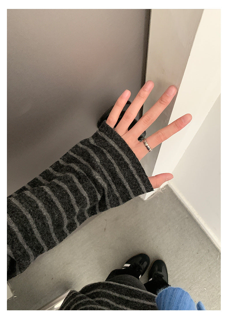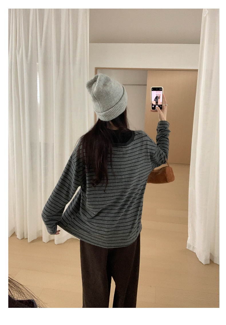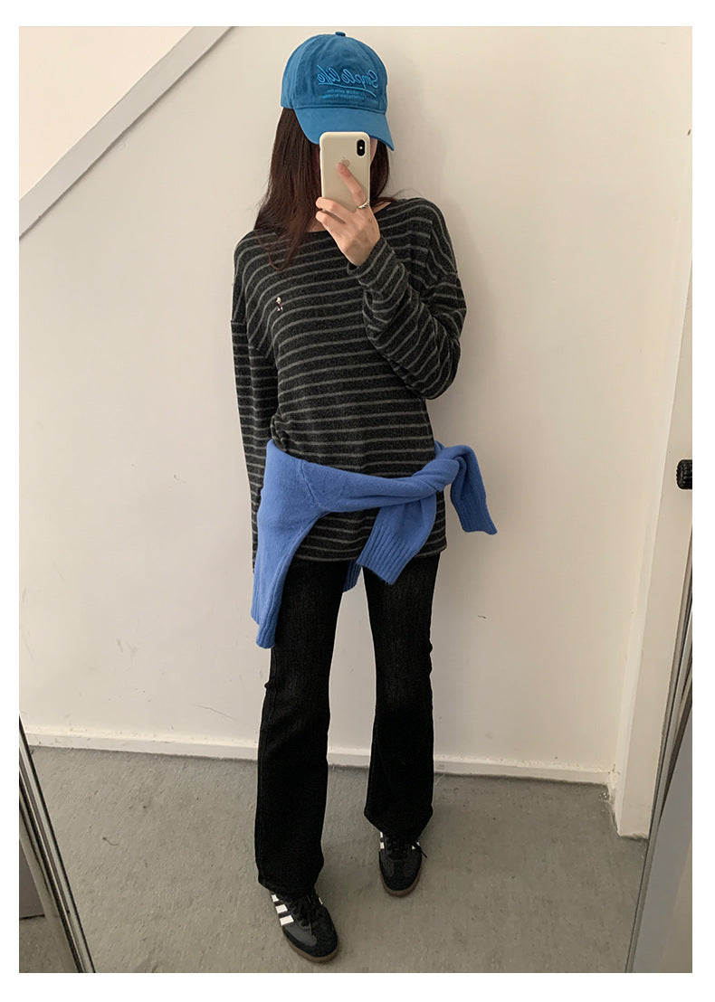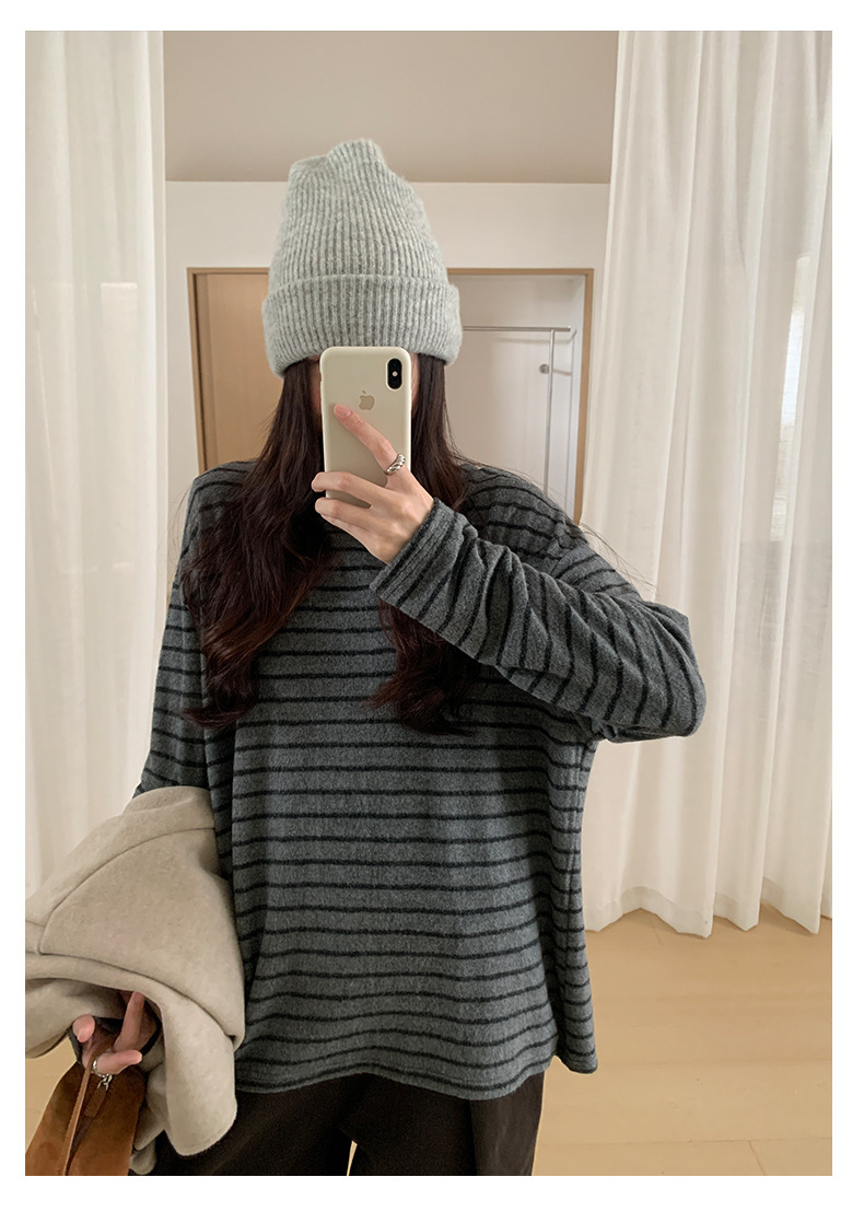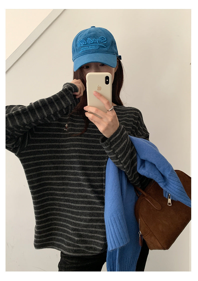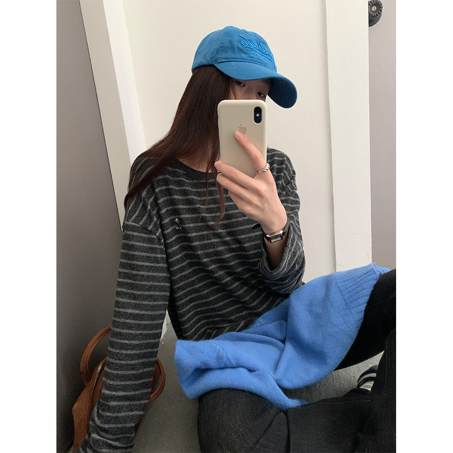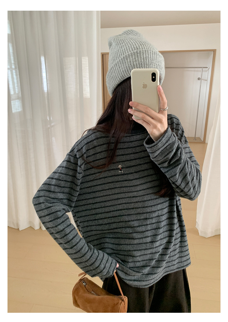【H572】實拍復古磨毛刺繡條紋圓領T恤251021