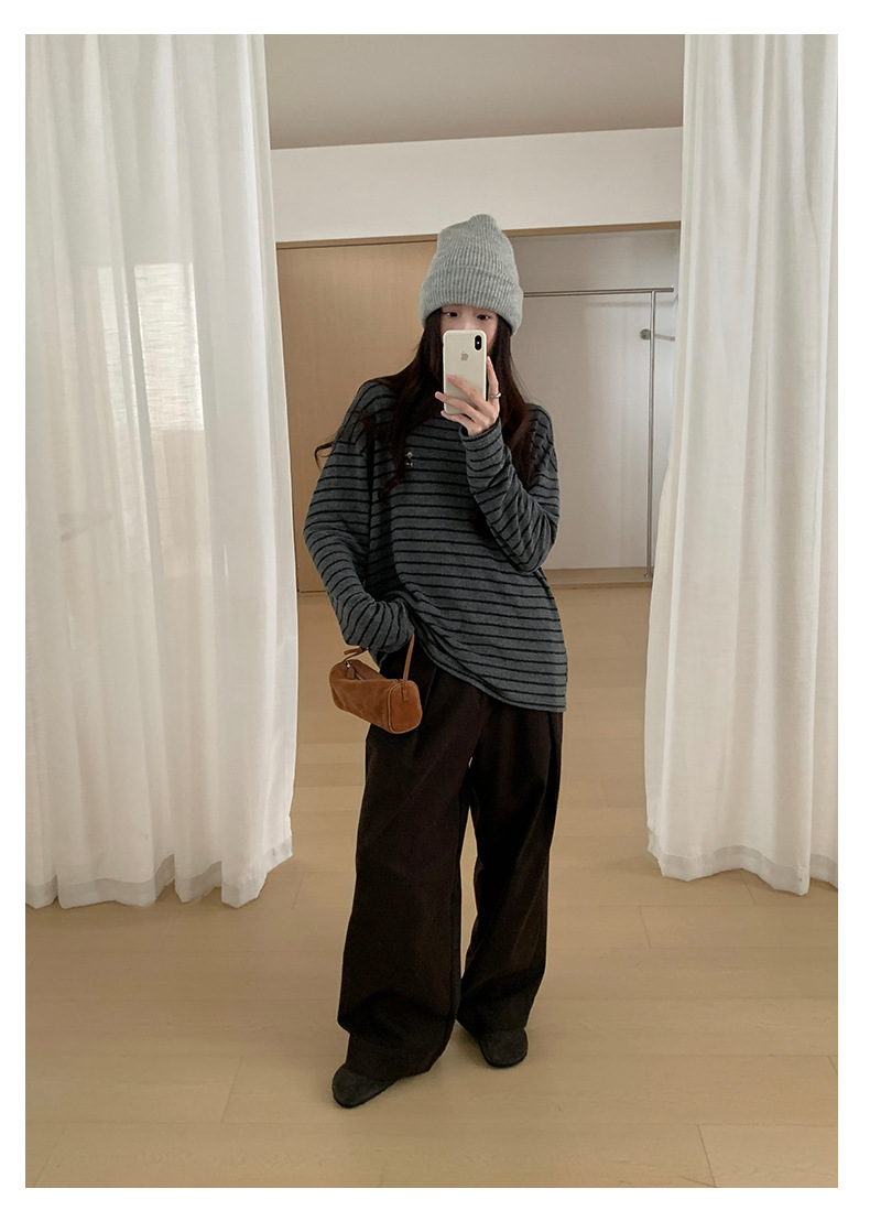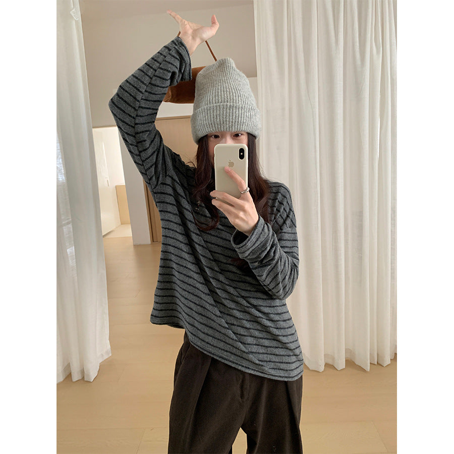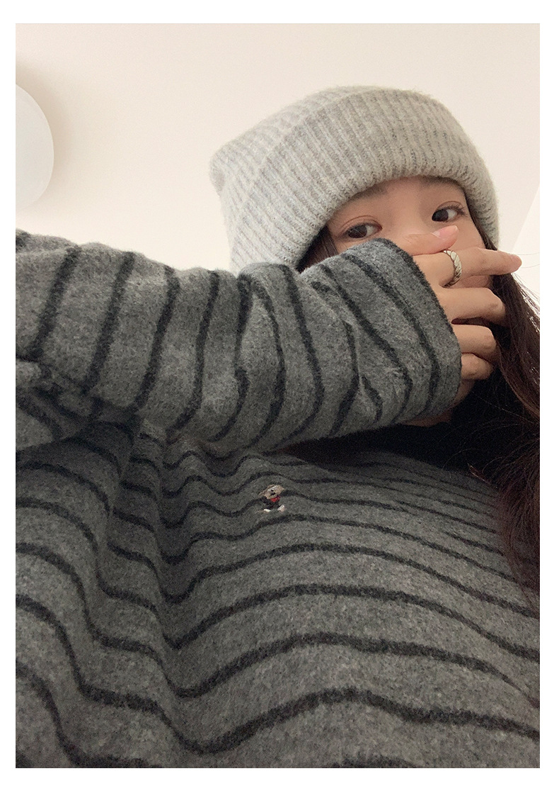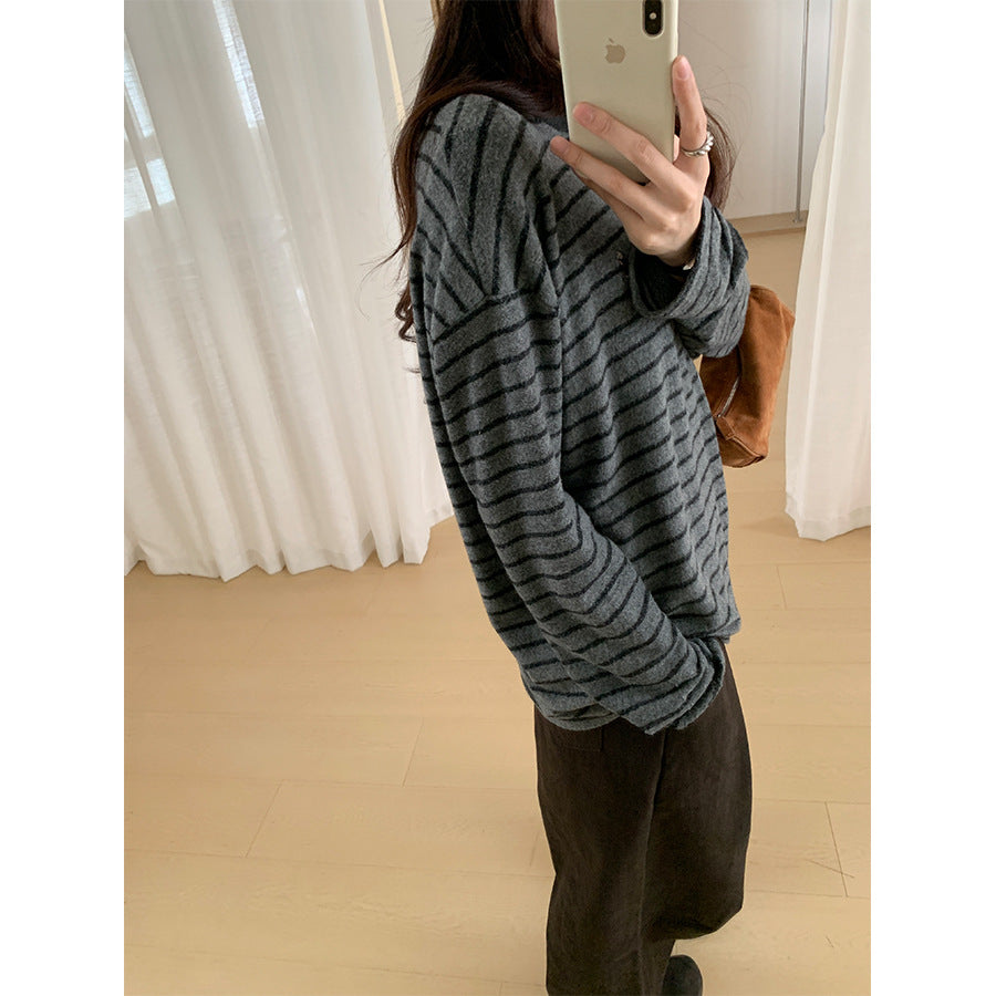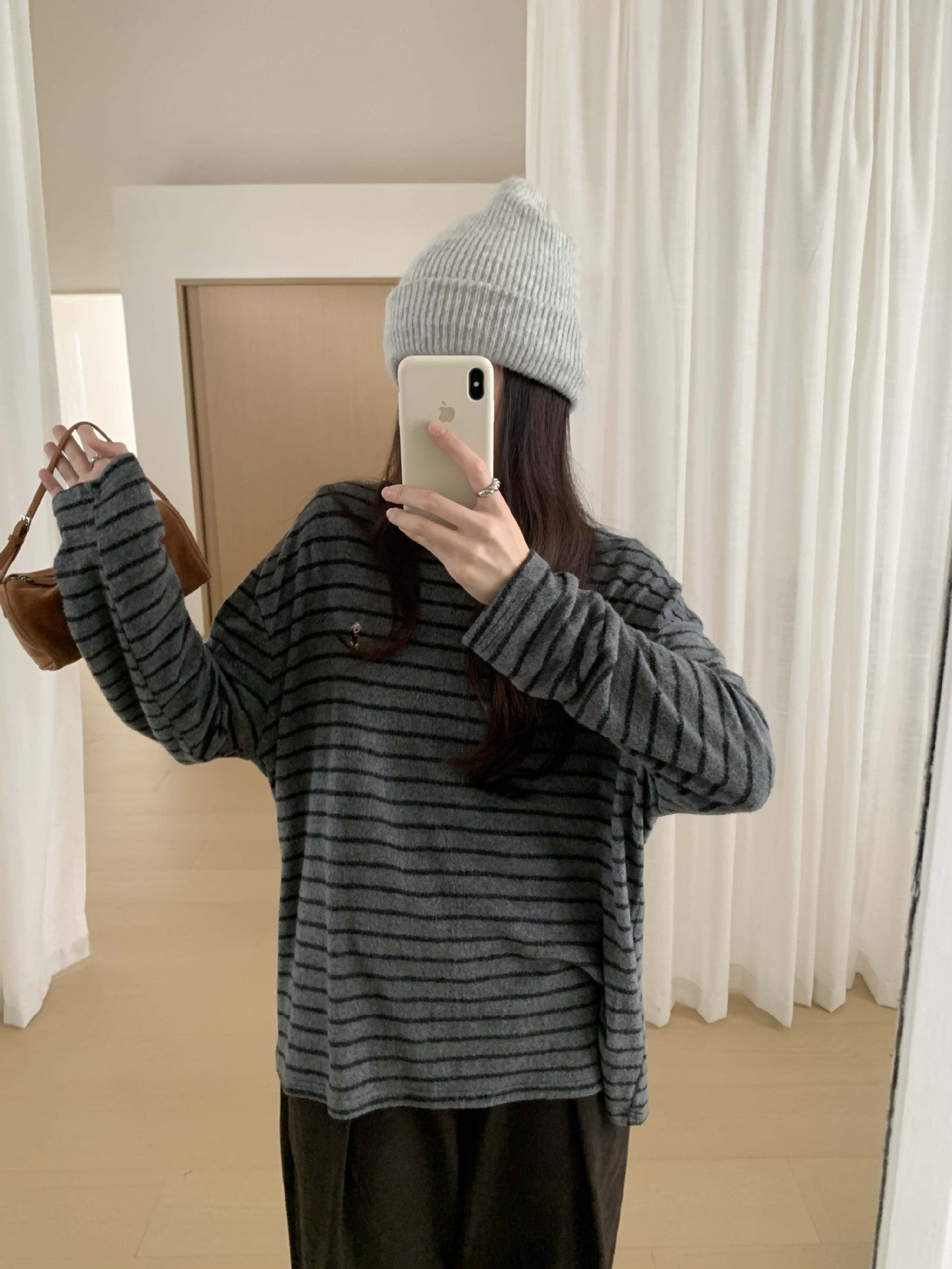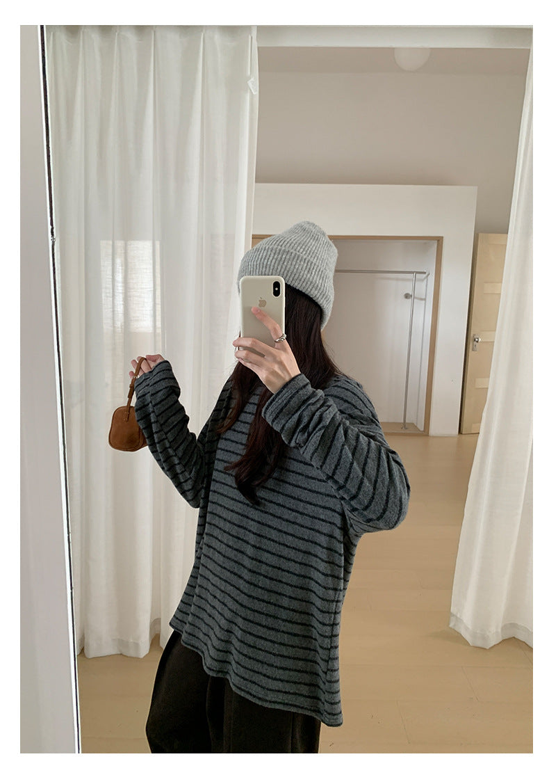 【H572】實拍復古磨毛刺繡條紋圓領T恤251021