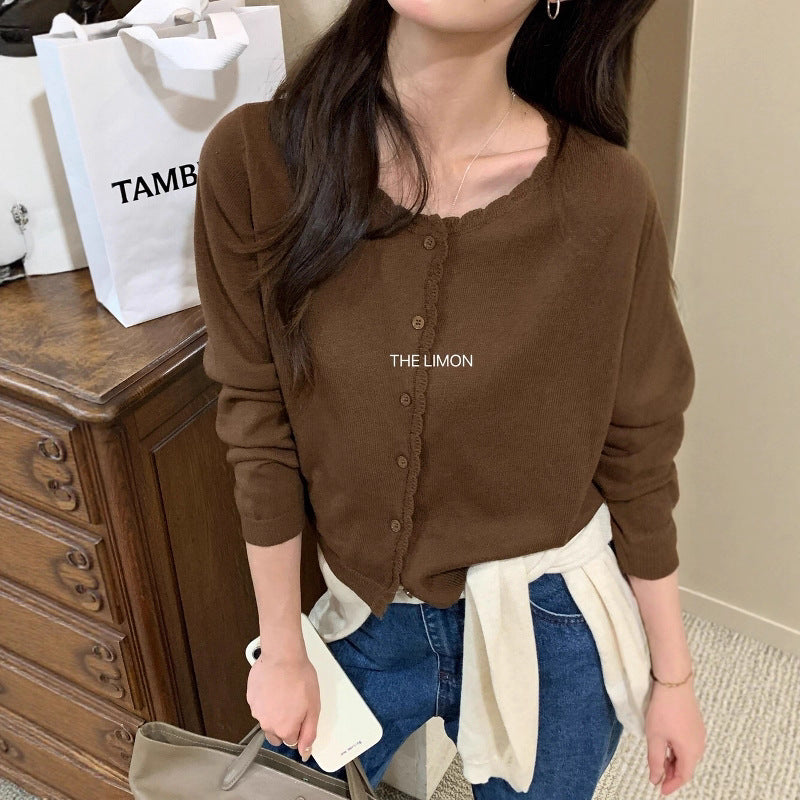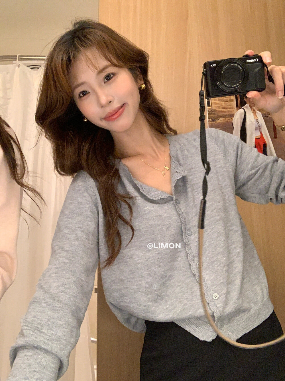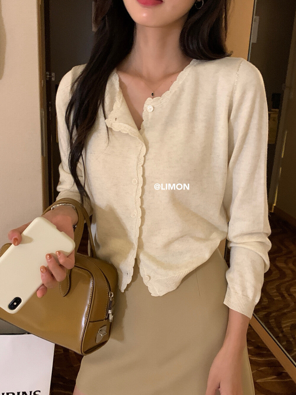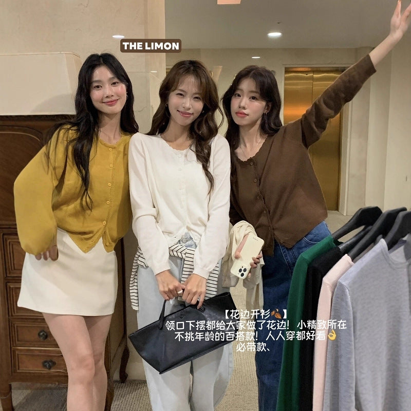 【L006833】實拍檸檬家漂亮花邊長袖針織開衫250901