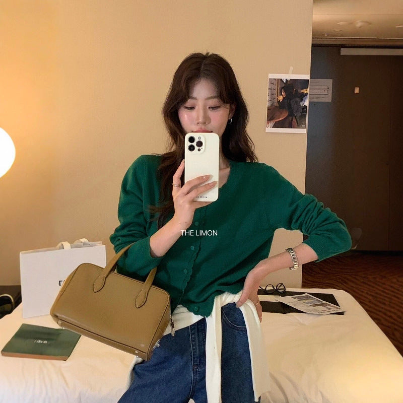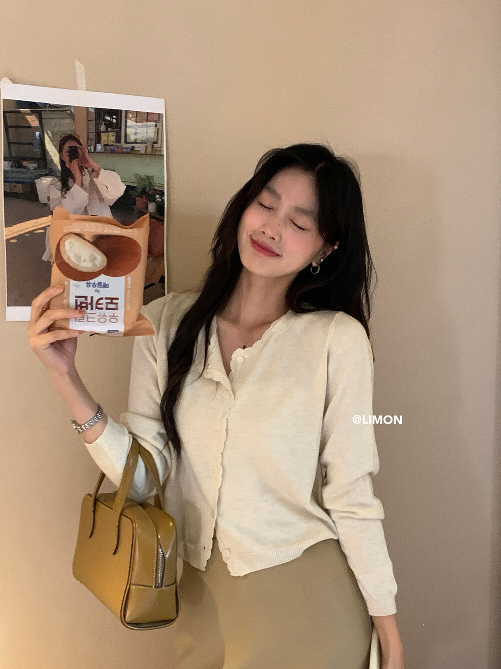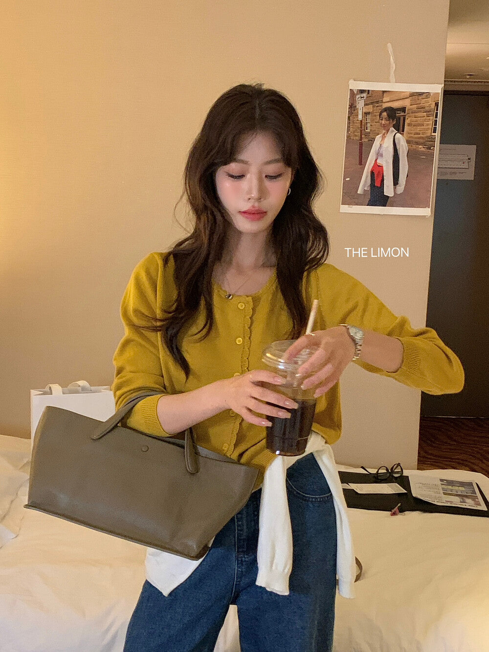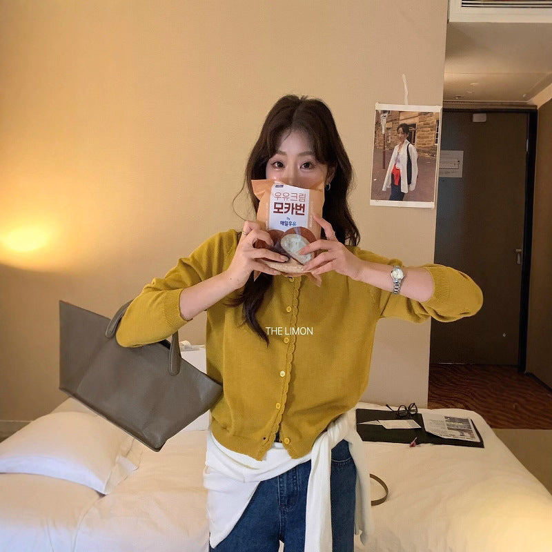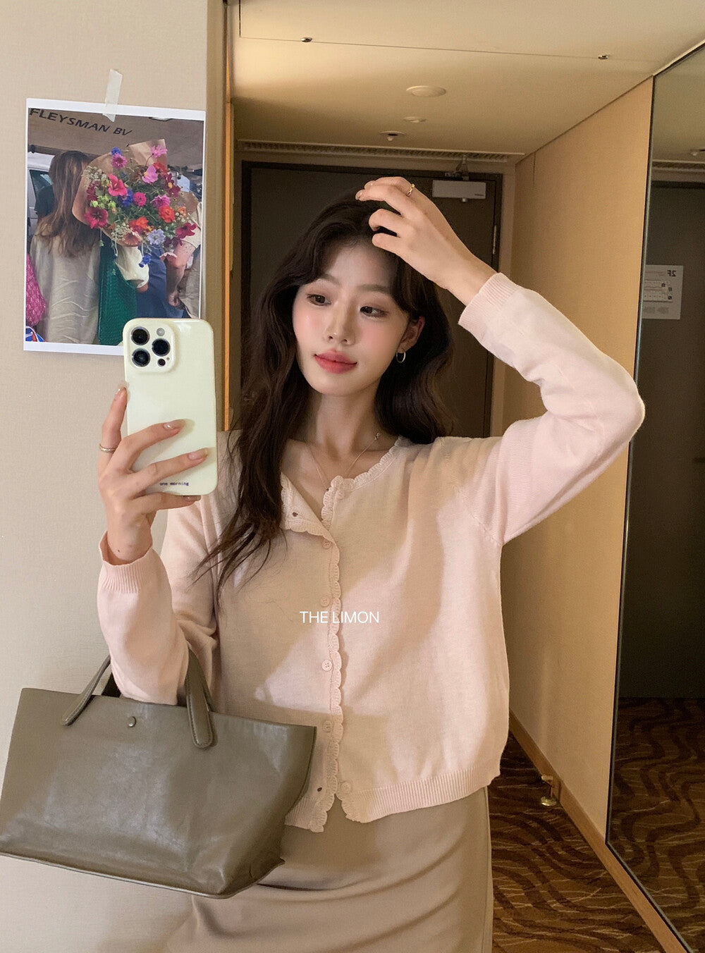 【L006833】實拍檸檬家漂亮花邊長袖針織開衫250901
