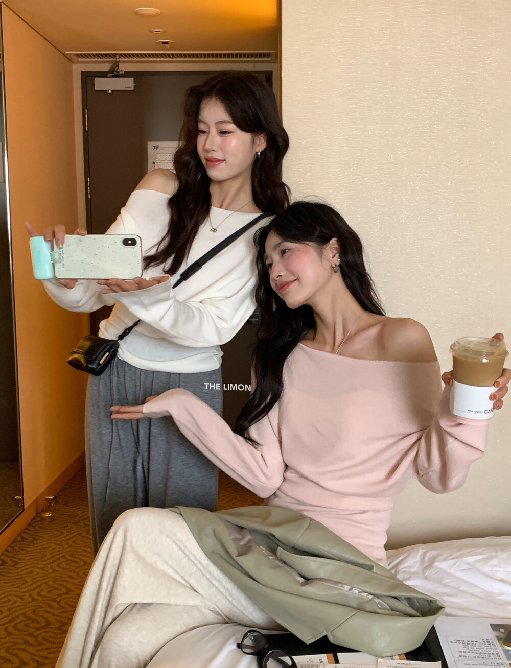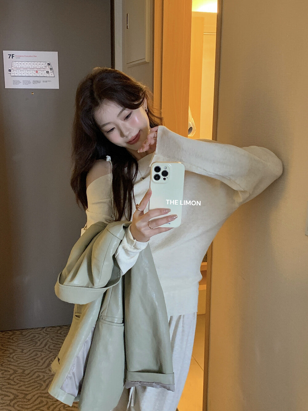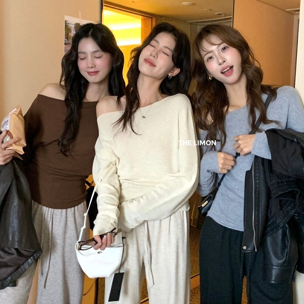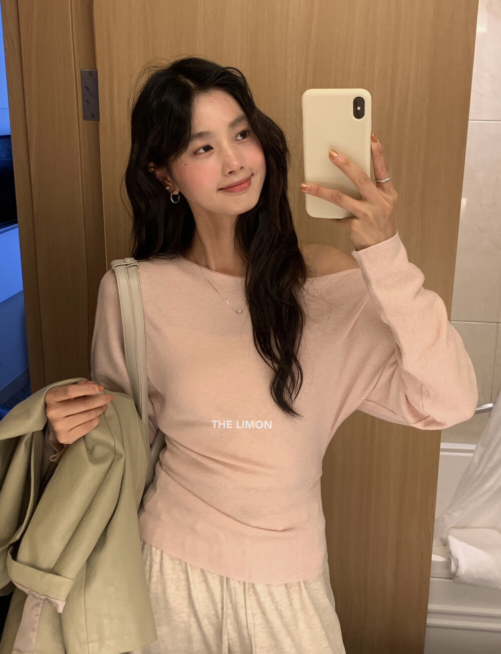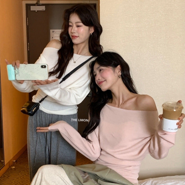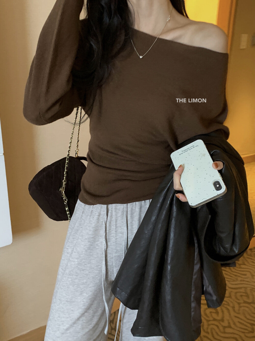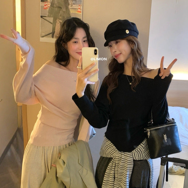 【L006836】實拍檸檬家初秋簡約慵懶斜肩長袖針織衫250901
