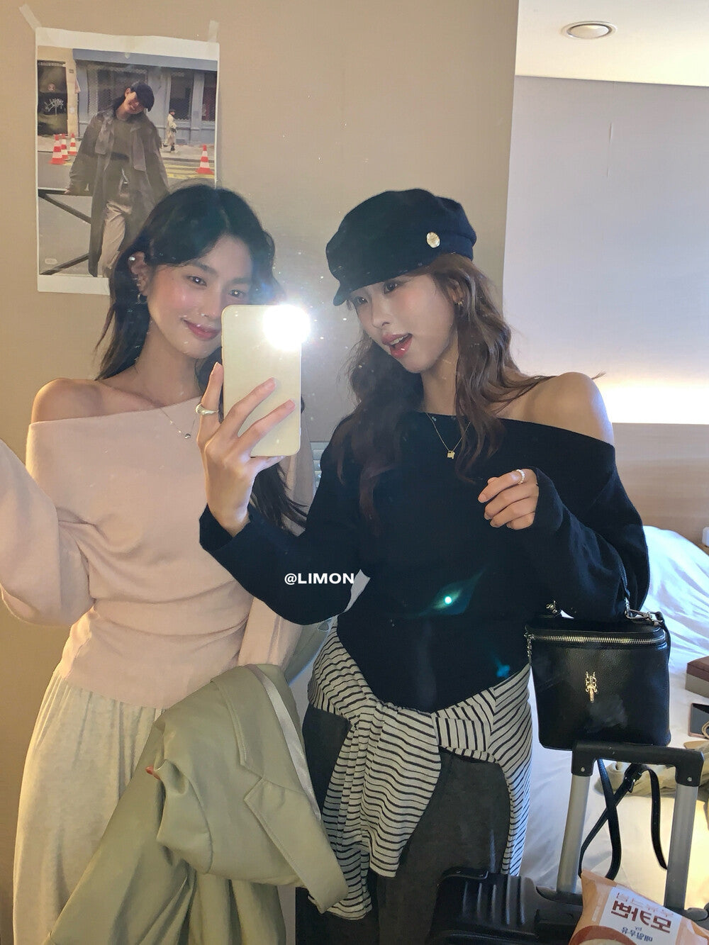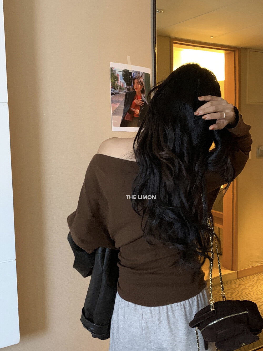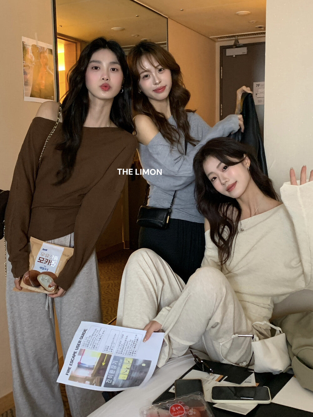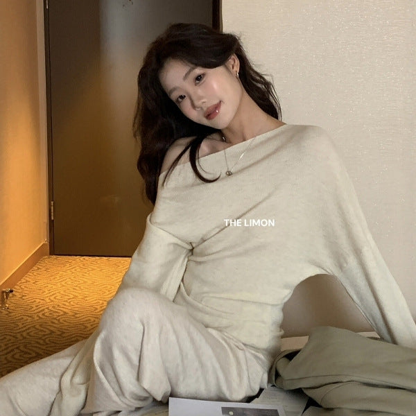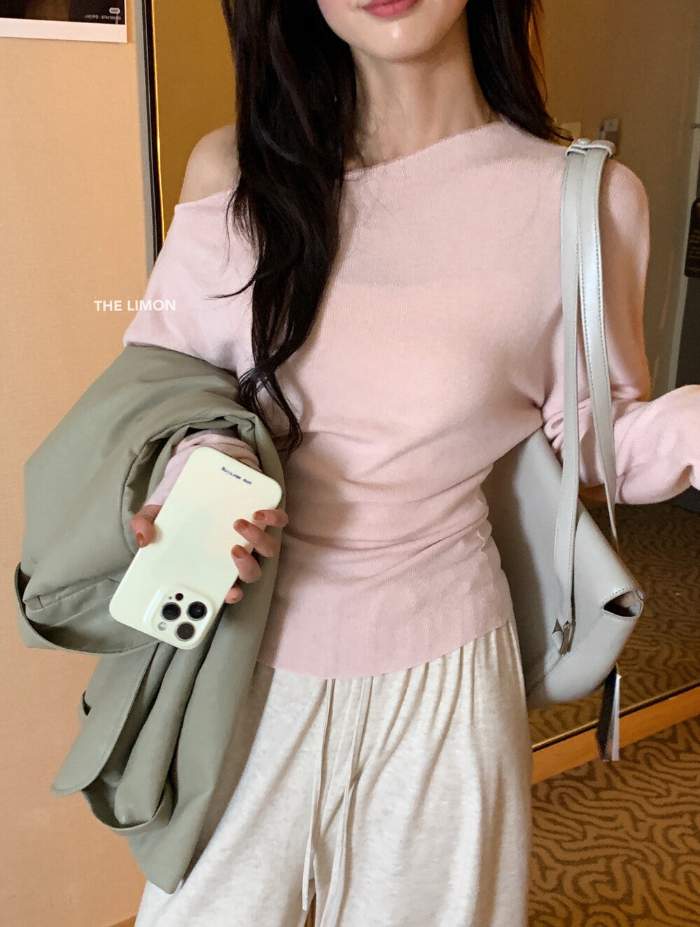 【L006836】實拍檸檬家初秋簡約慵懶斜肩長袖針織衫250901