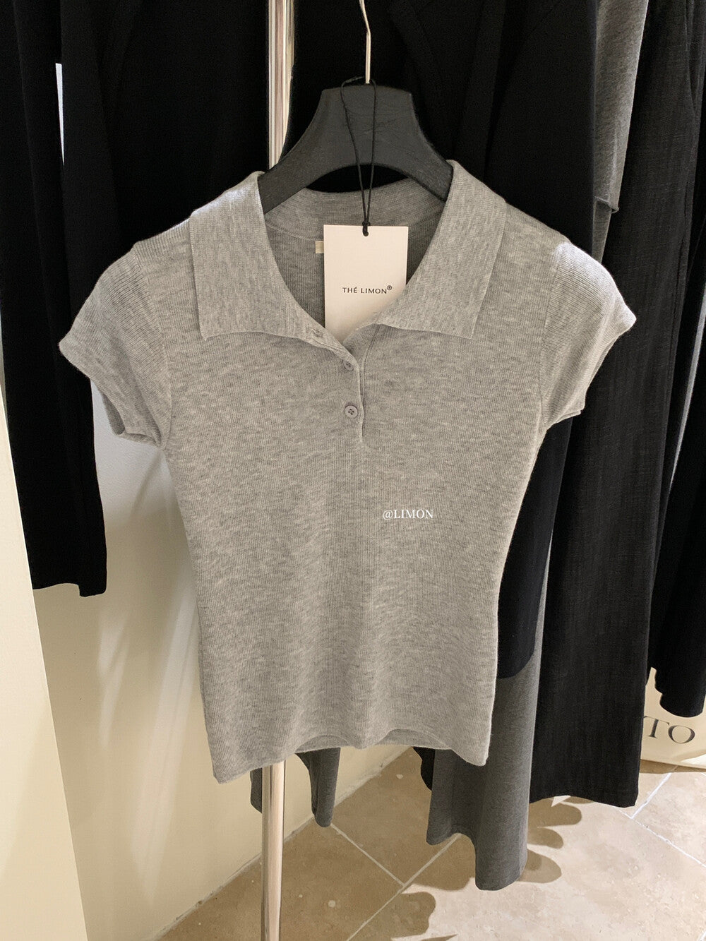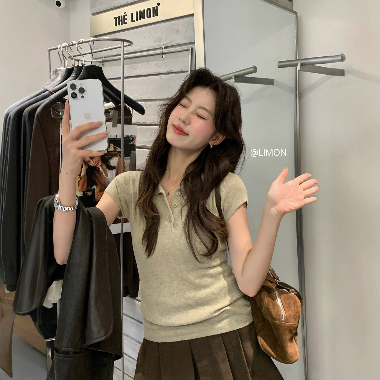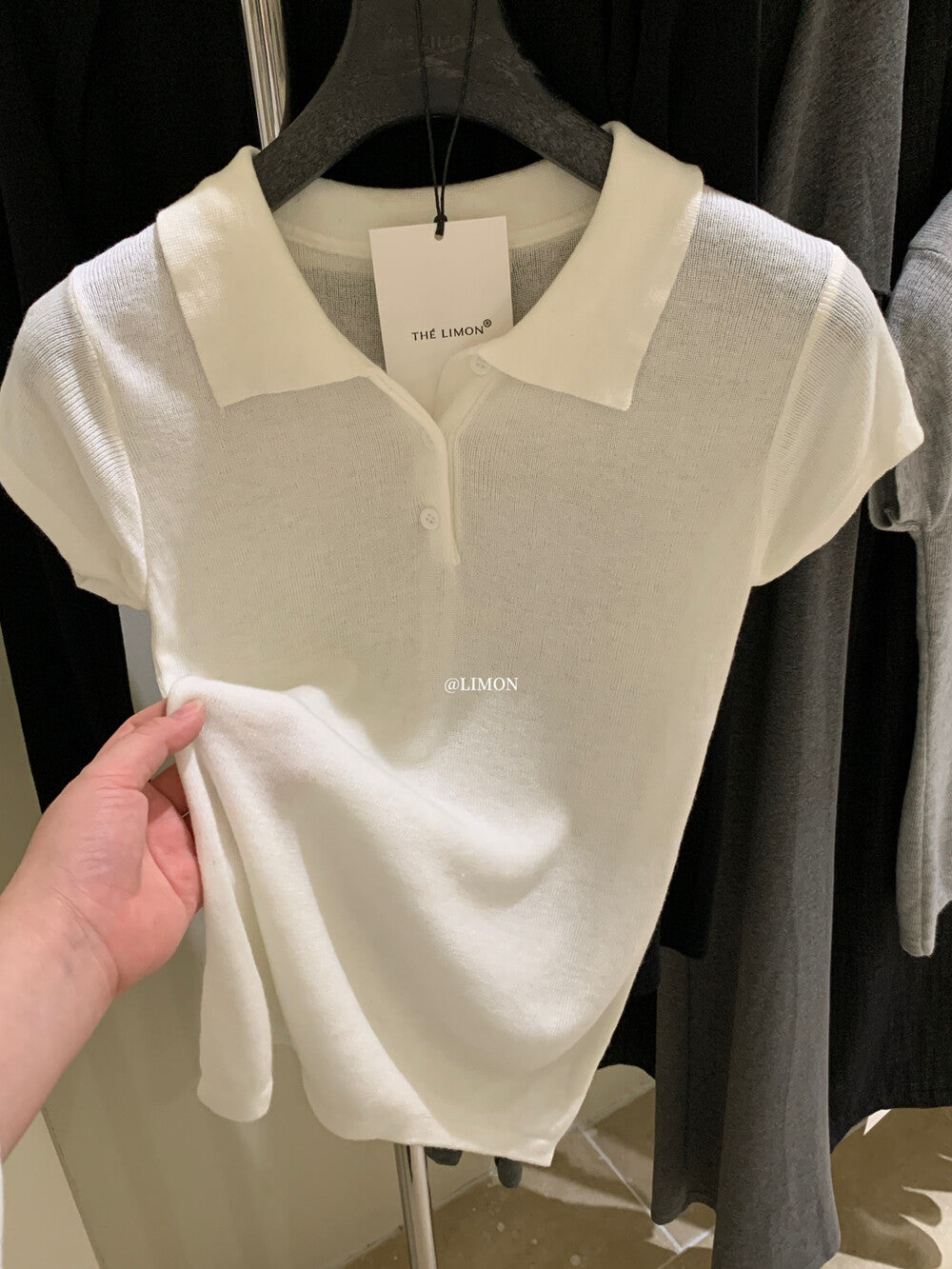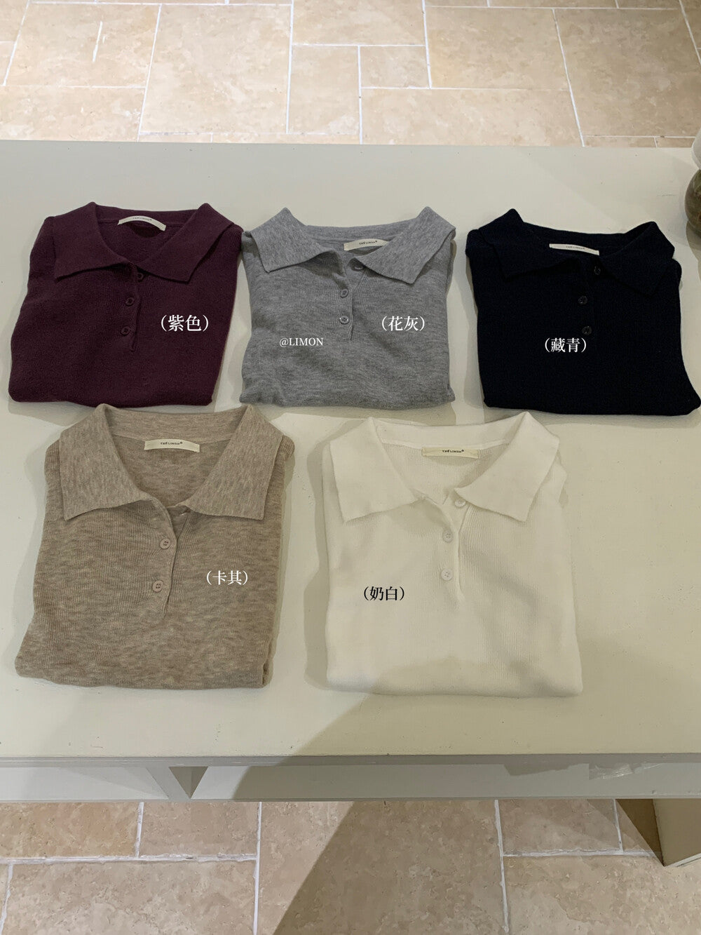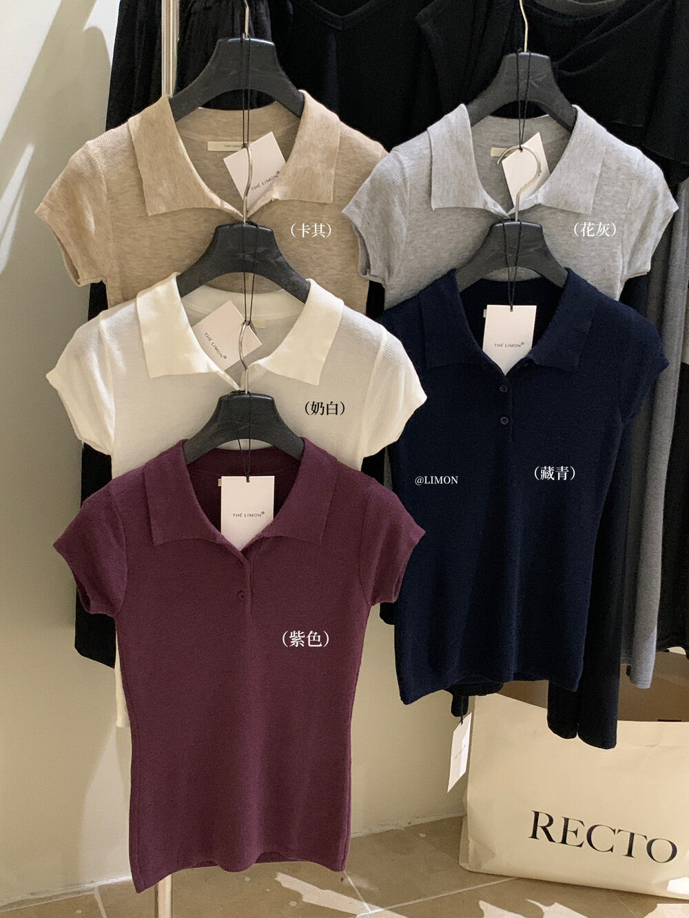 【L006838】實拍檸檬秋季氣質POLO領短袖針織衫250915