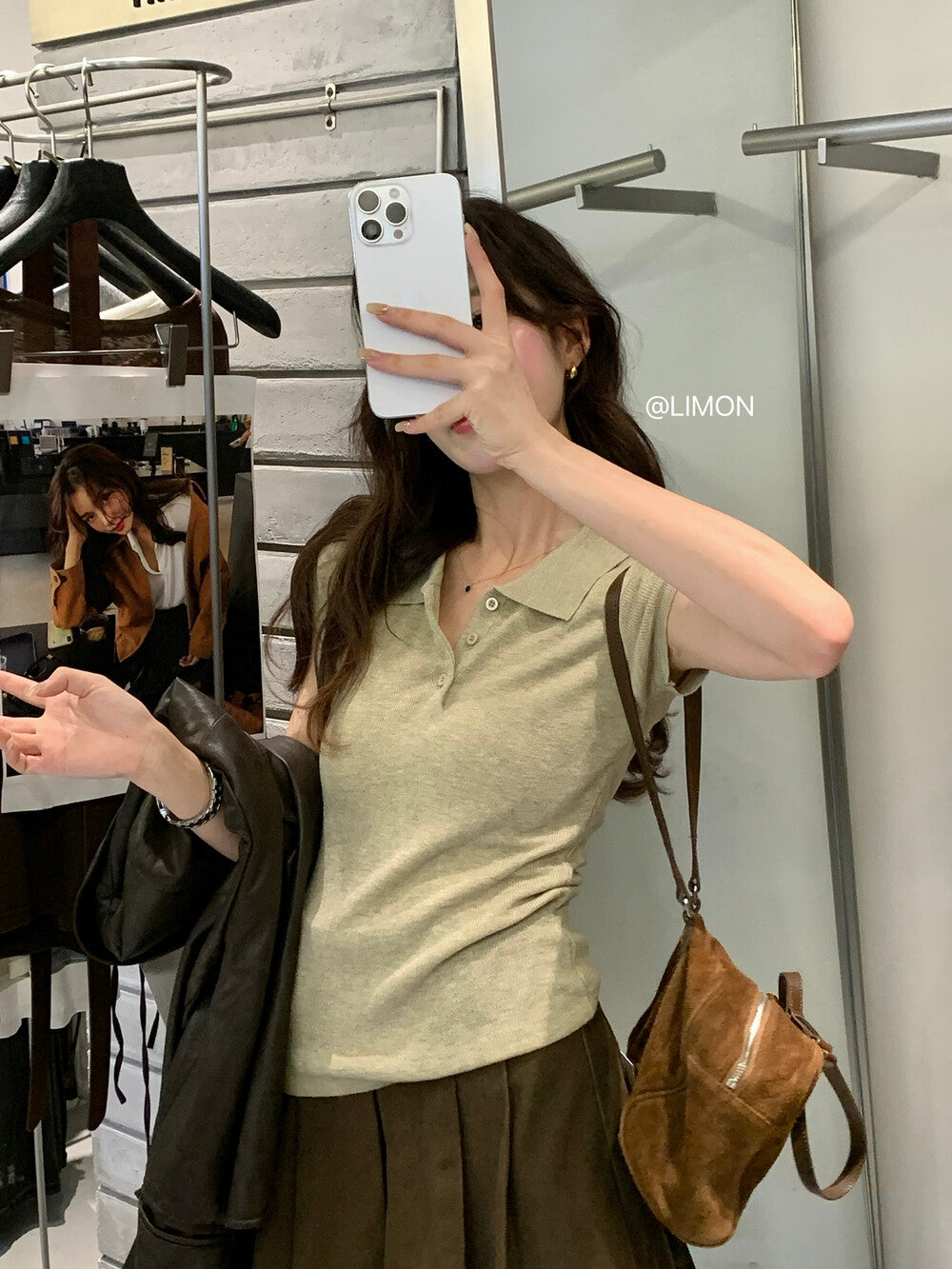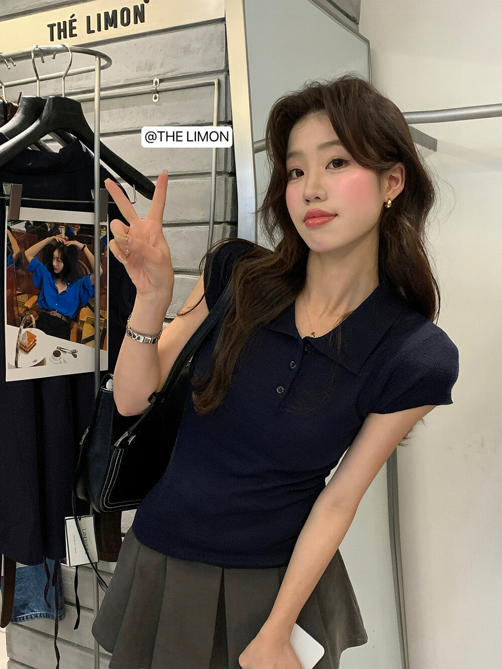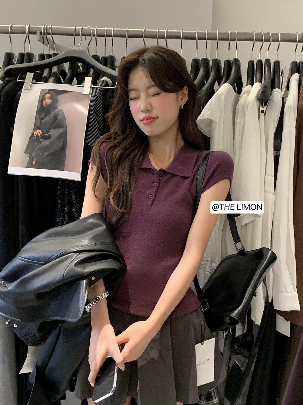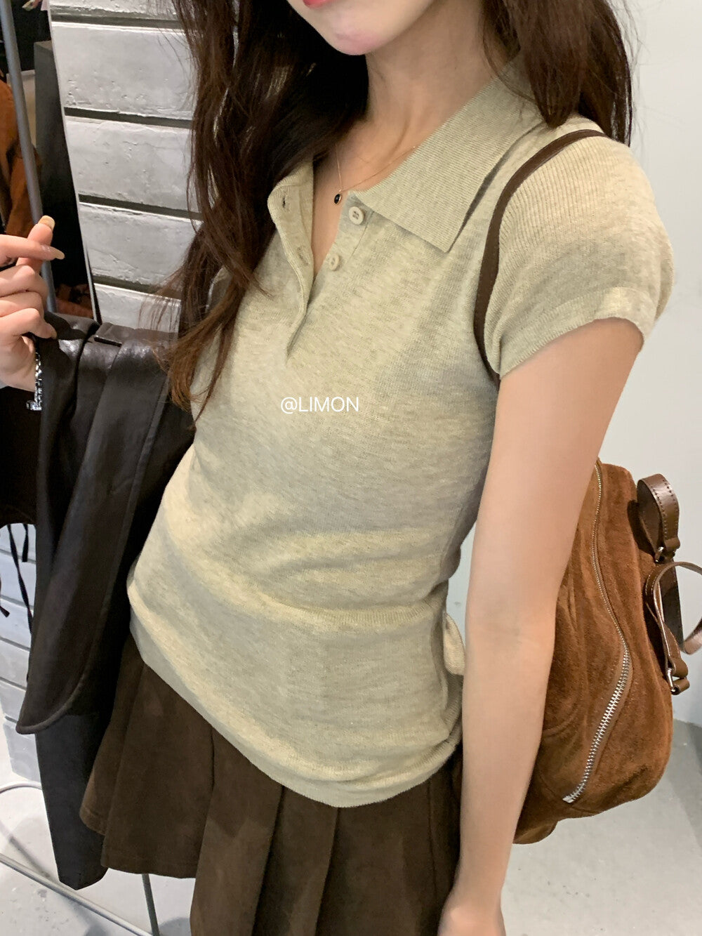 【L006838】實拍檸檬秋季氣質POLO領短袖針織衫250915