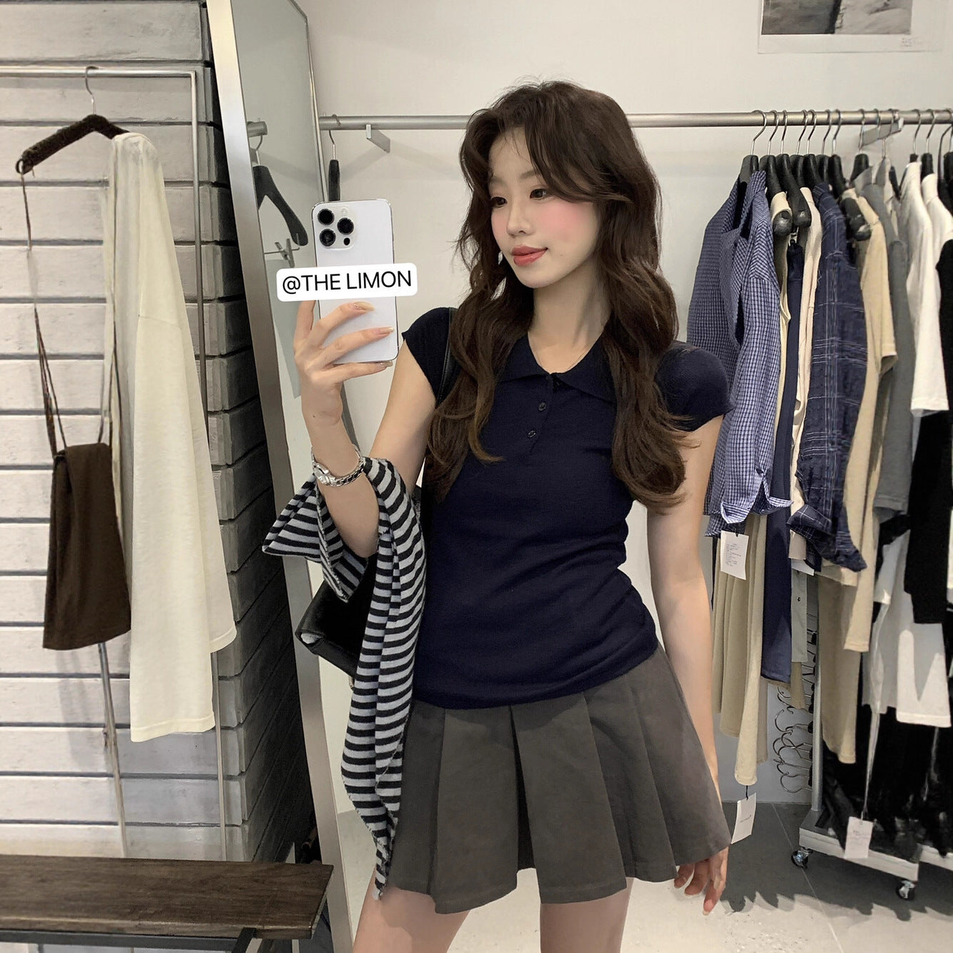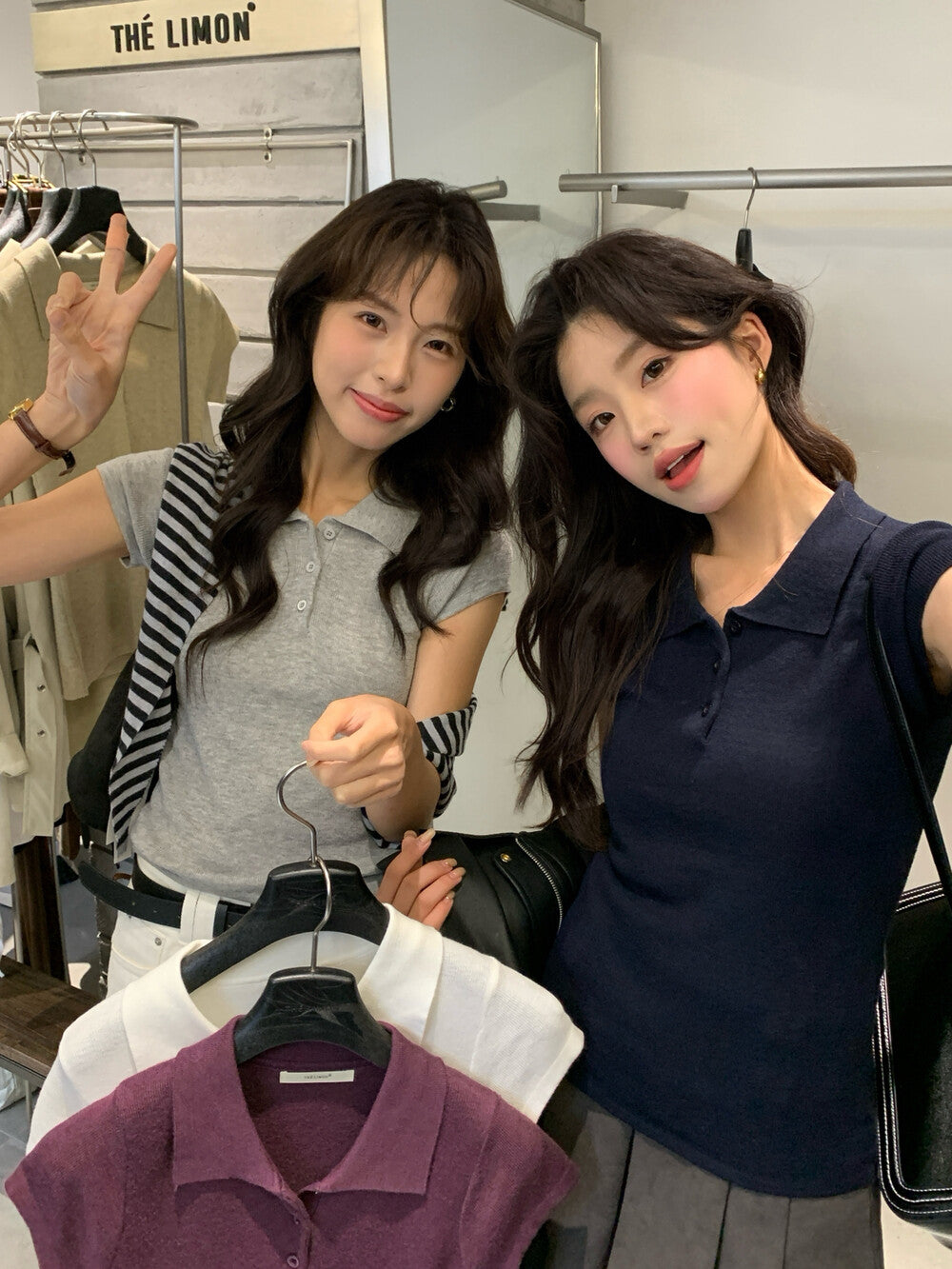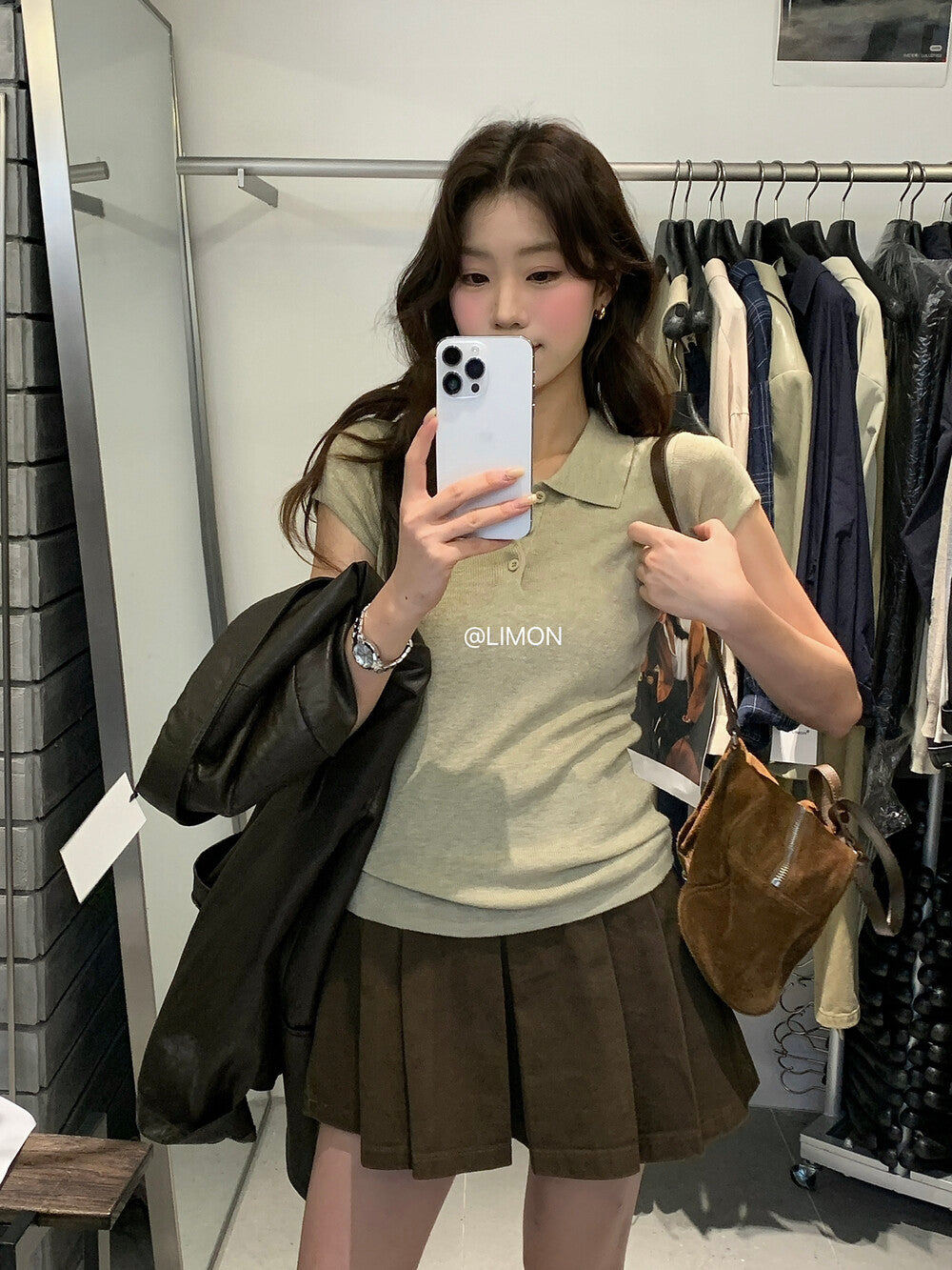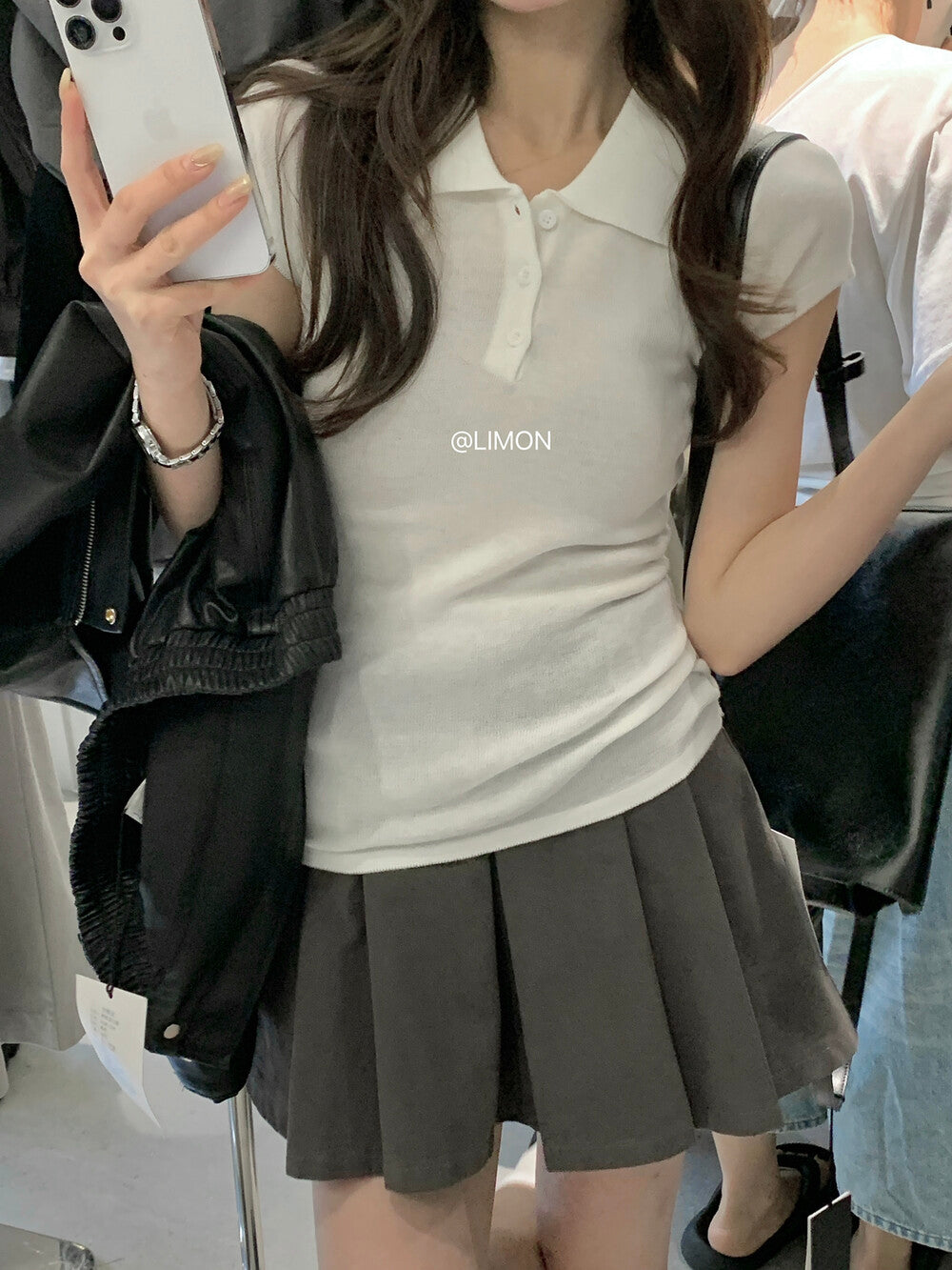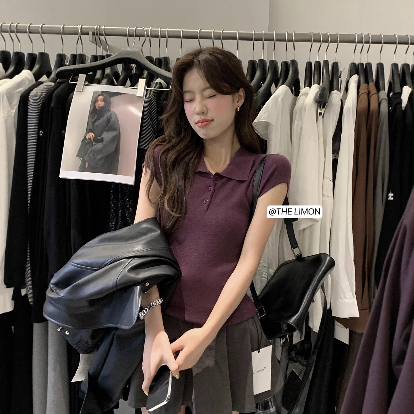 【L006838】實拍檸檬秋季氣質POLO領短袖針織衫250915
