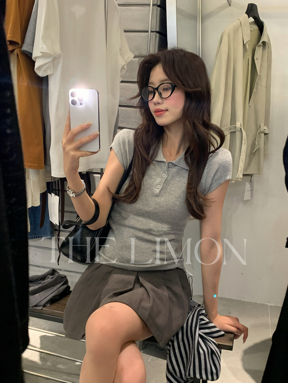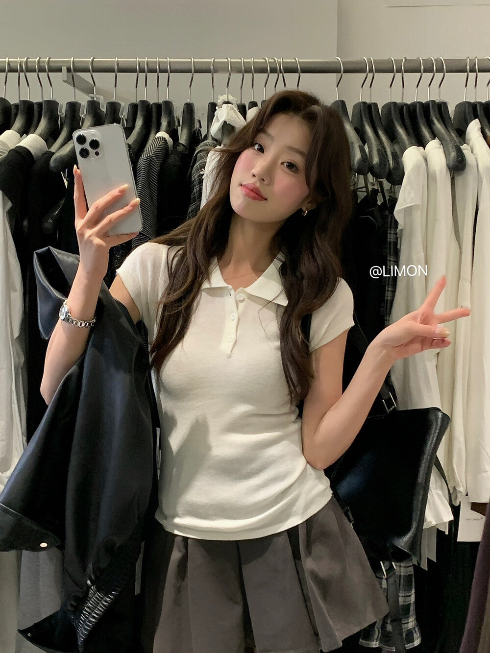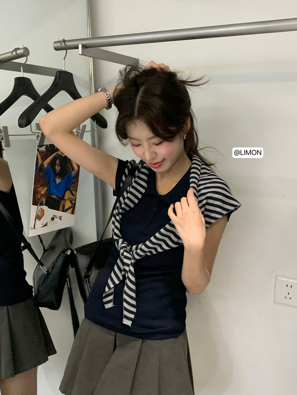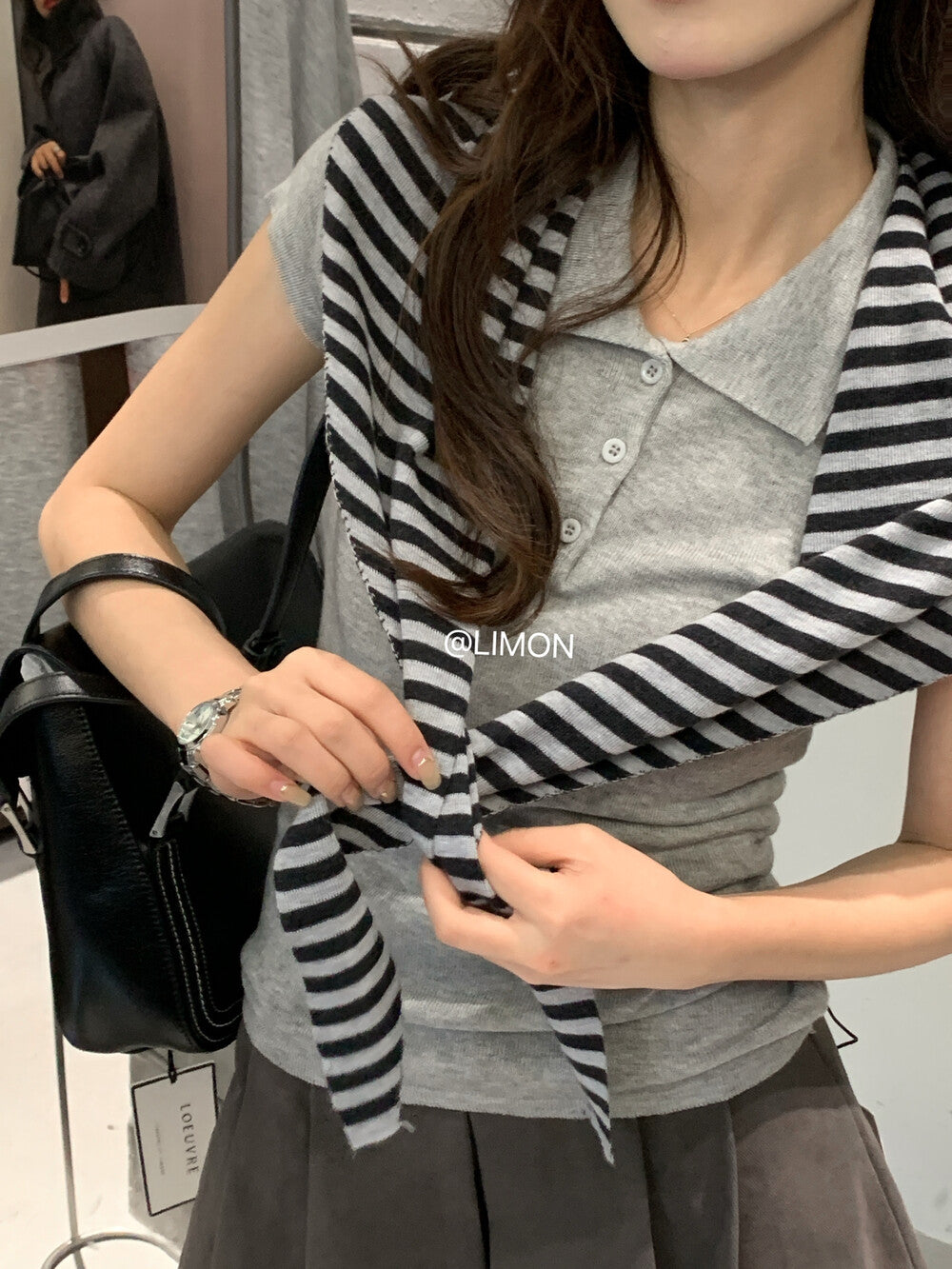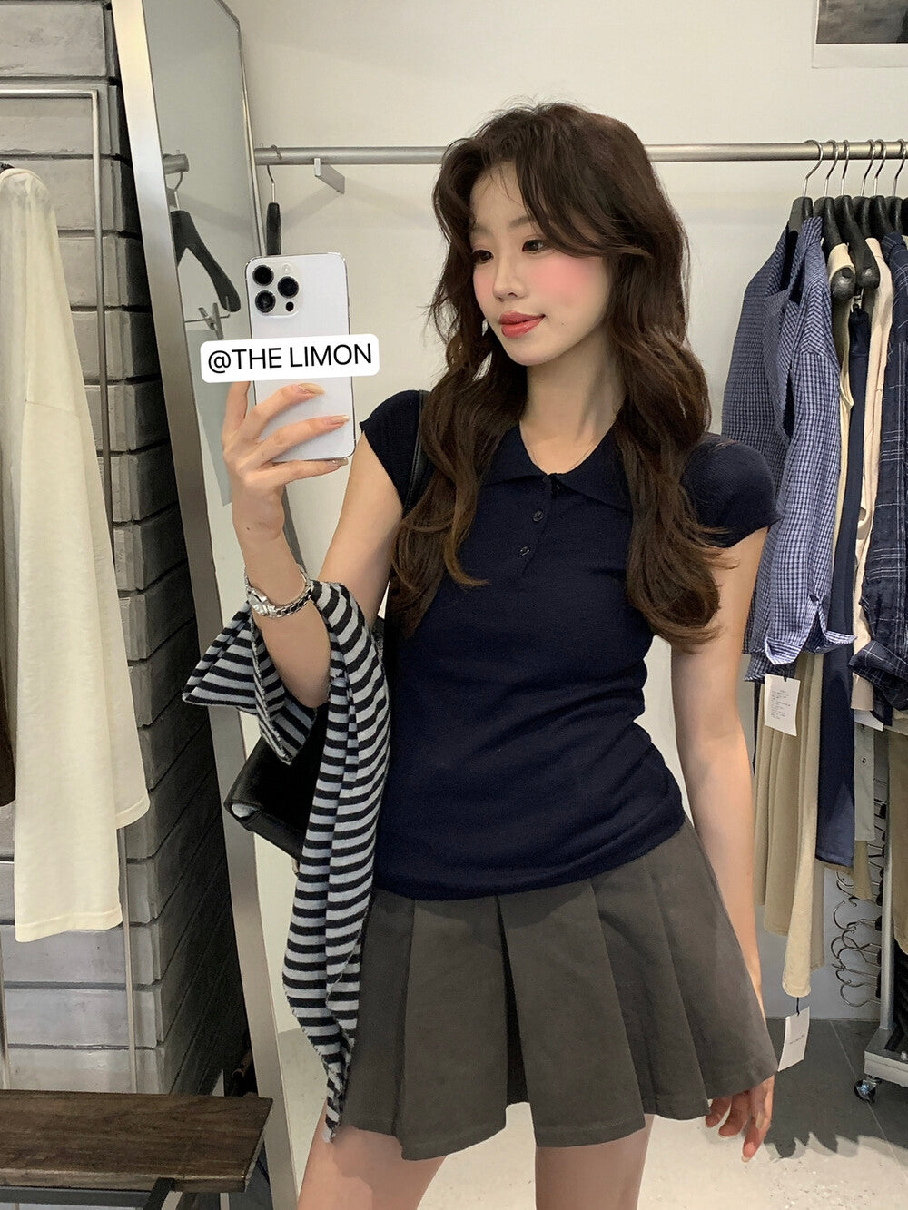 【L006838】實拍檸檬秋季氣質POLO領短袖針織衫250915