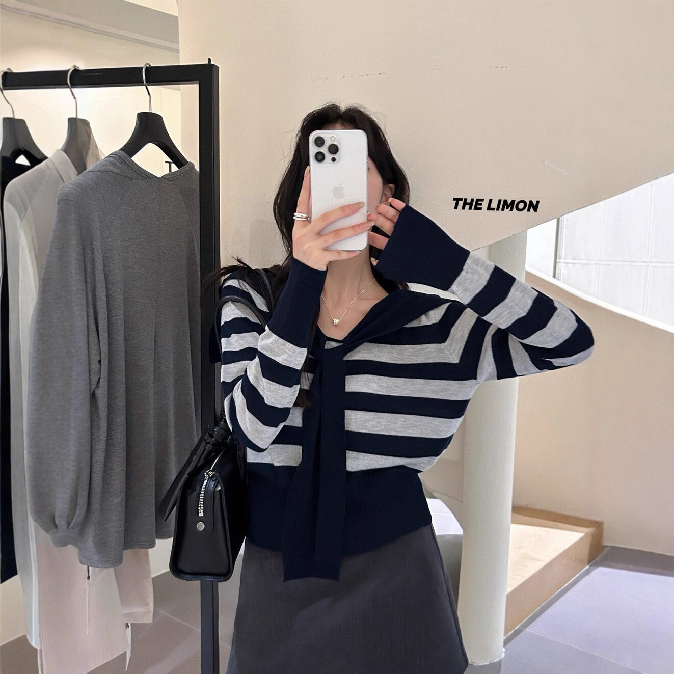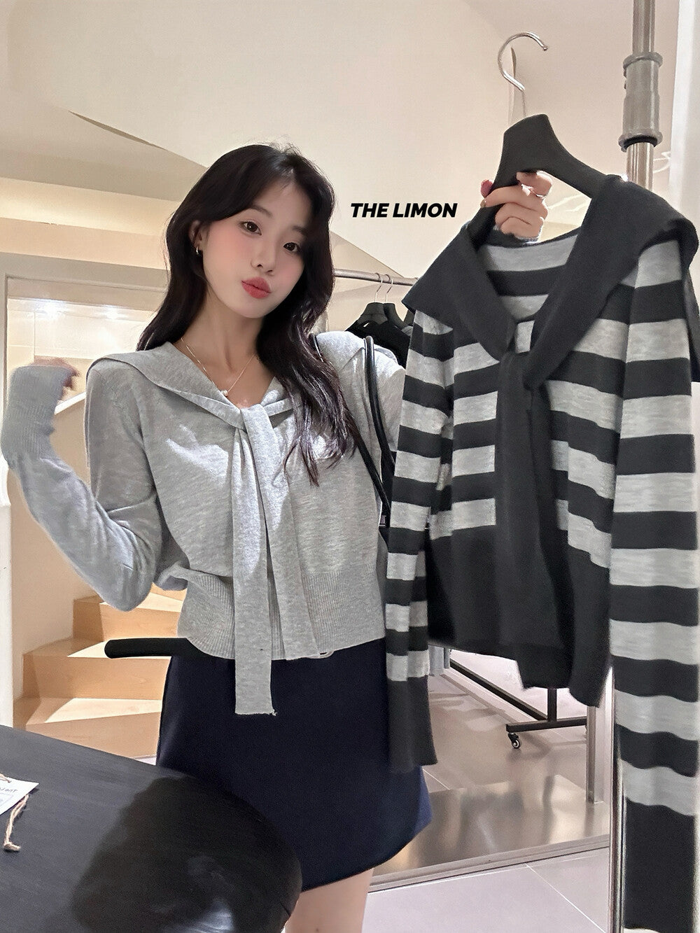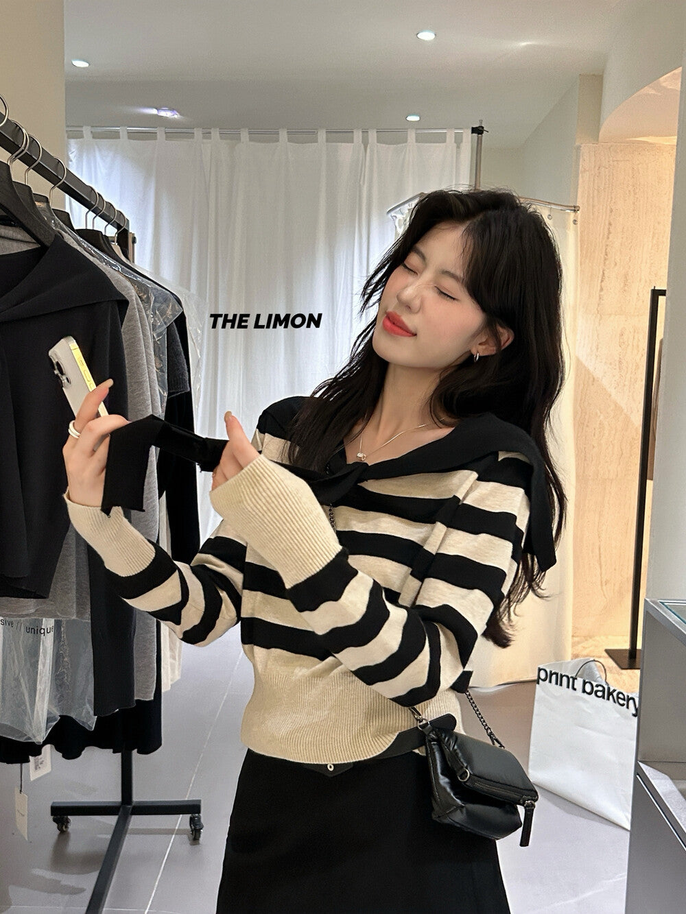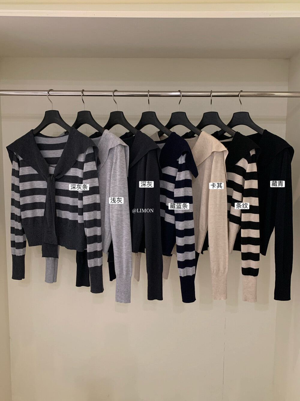 【L006852】實拍檸檬家時髦簡約海軍領長袖針織衫250901