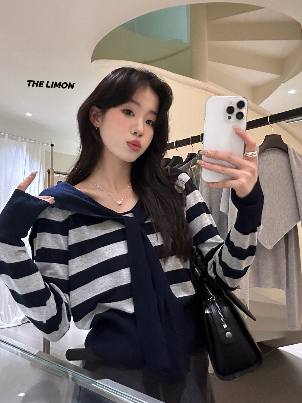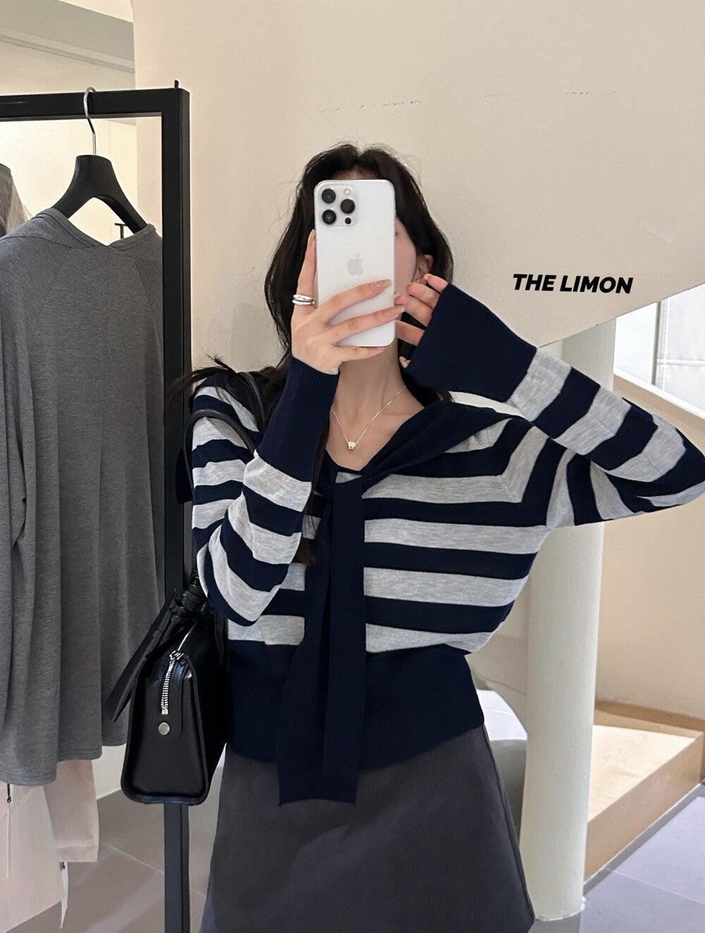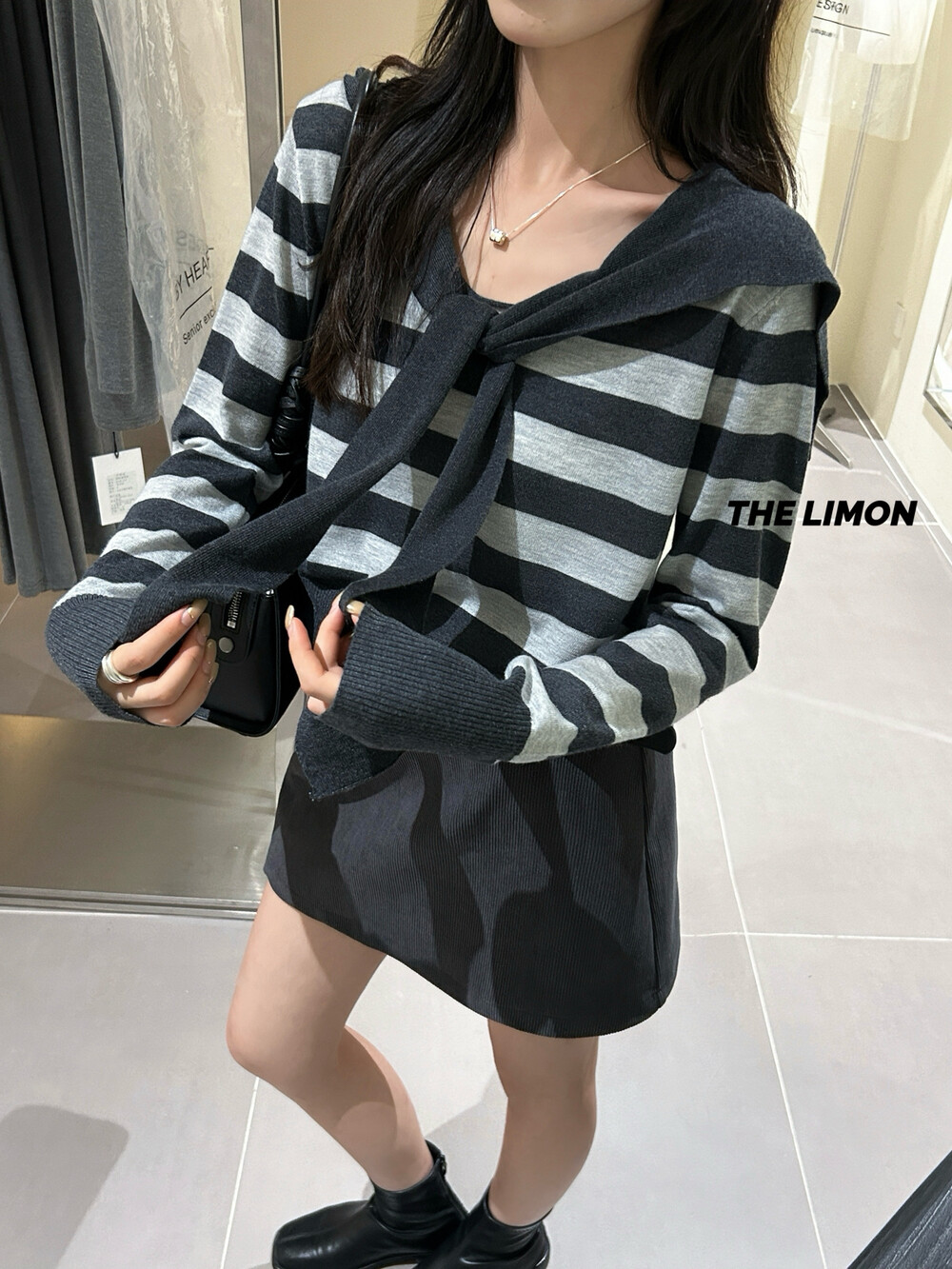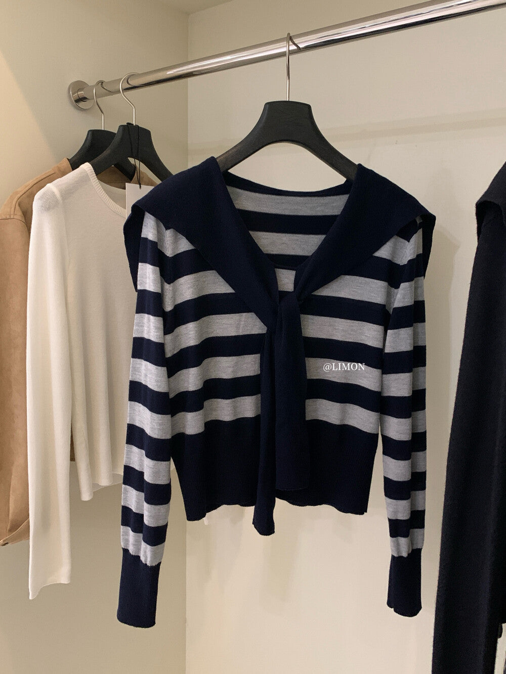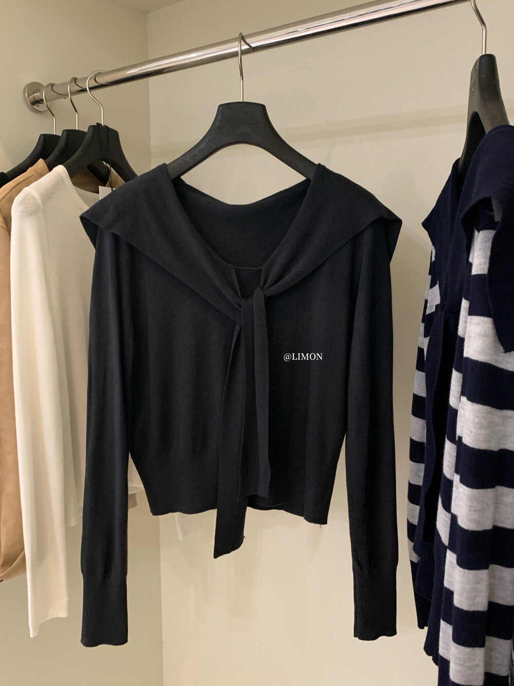 【L006852】實拍檸檬家時髦簡約海軍領長袖針織衫250901