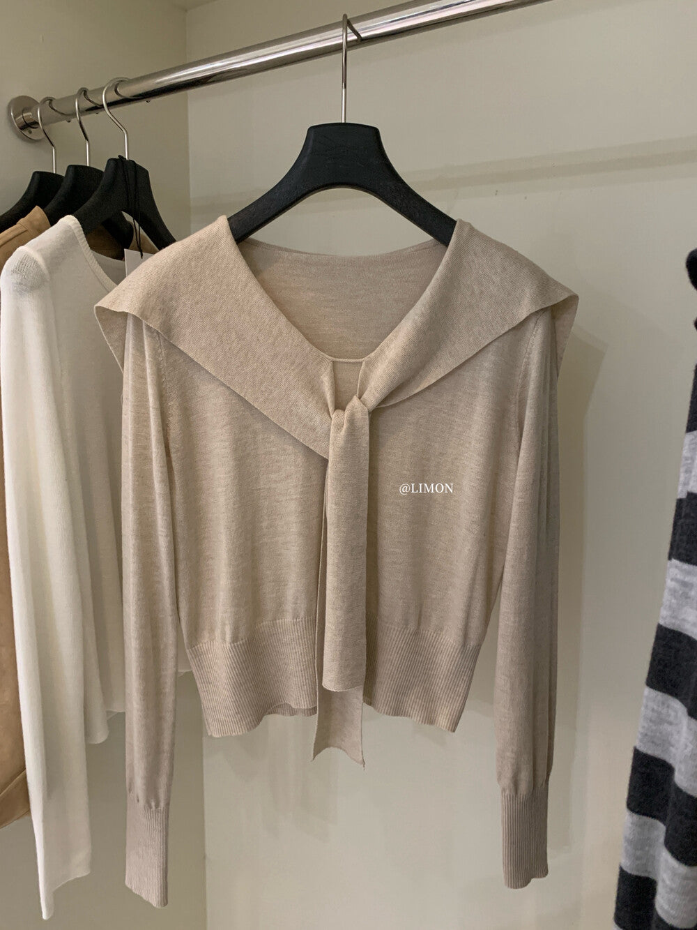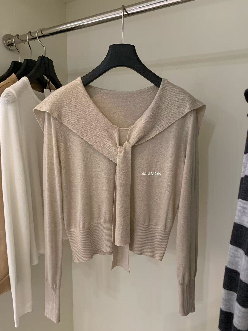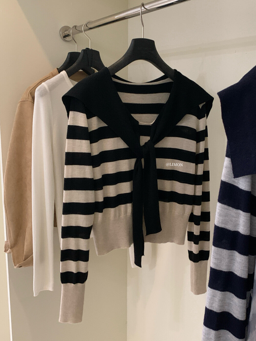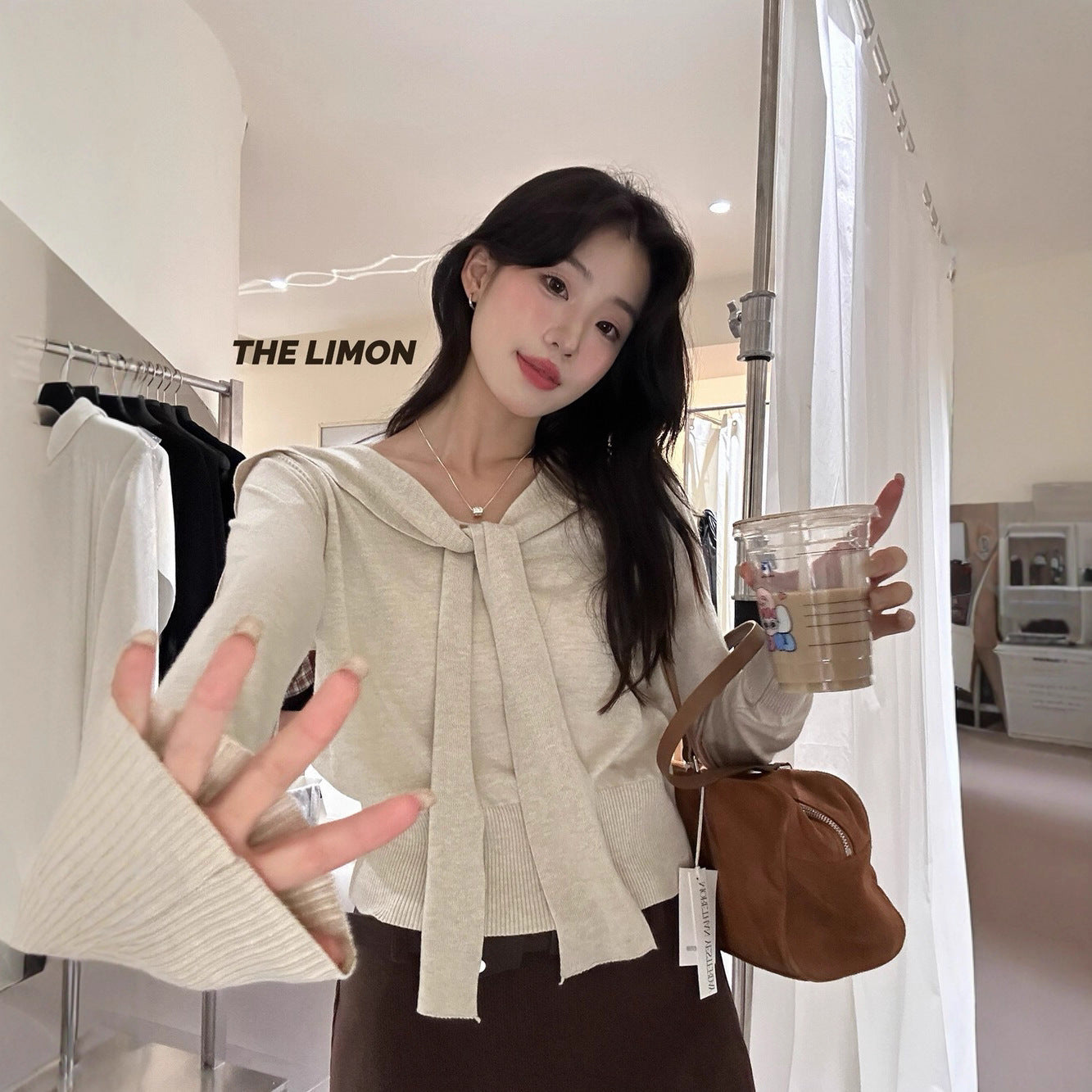 【L006852】實拍檸檬家時髦簡約海軍領長袖針織衫250901