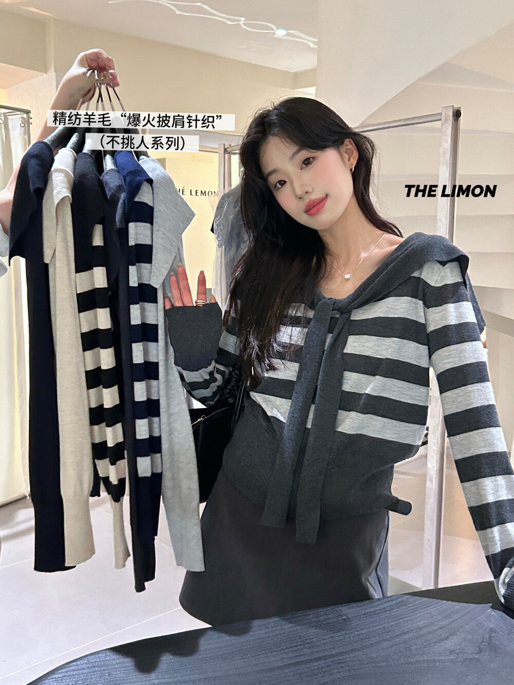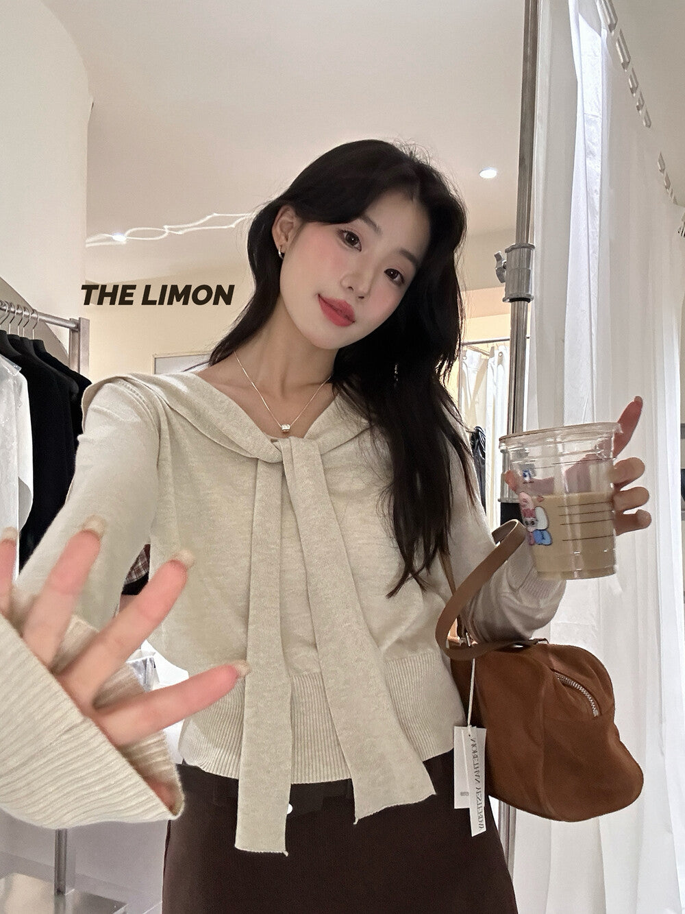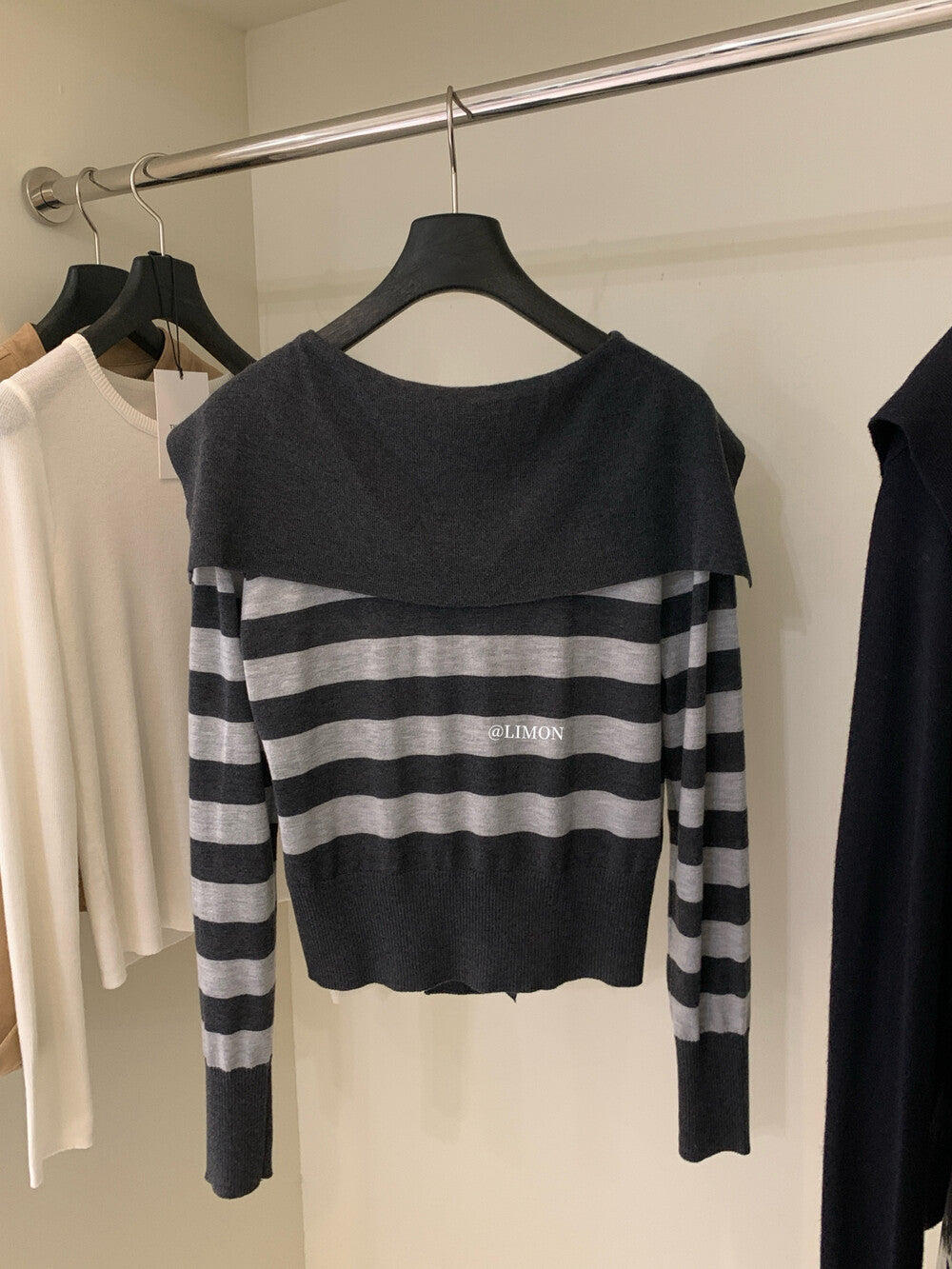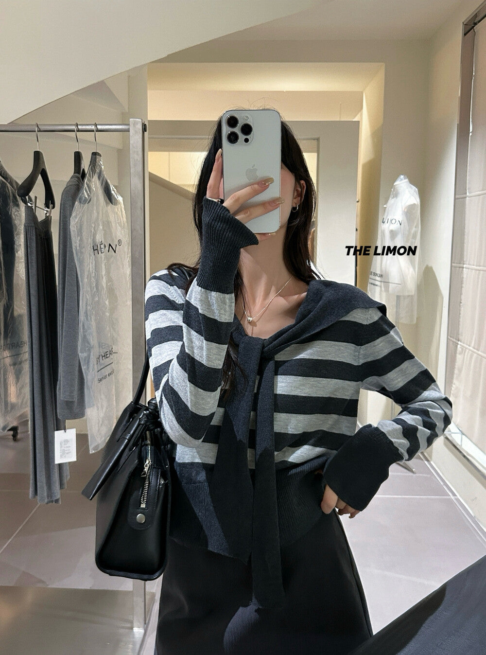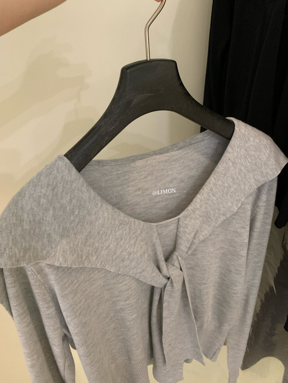 【L006852】實拍檸檬家時髦簡約海軍領長袖針織衫250901