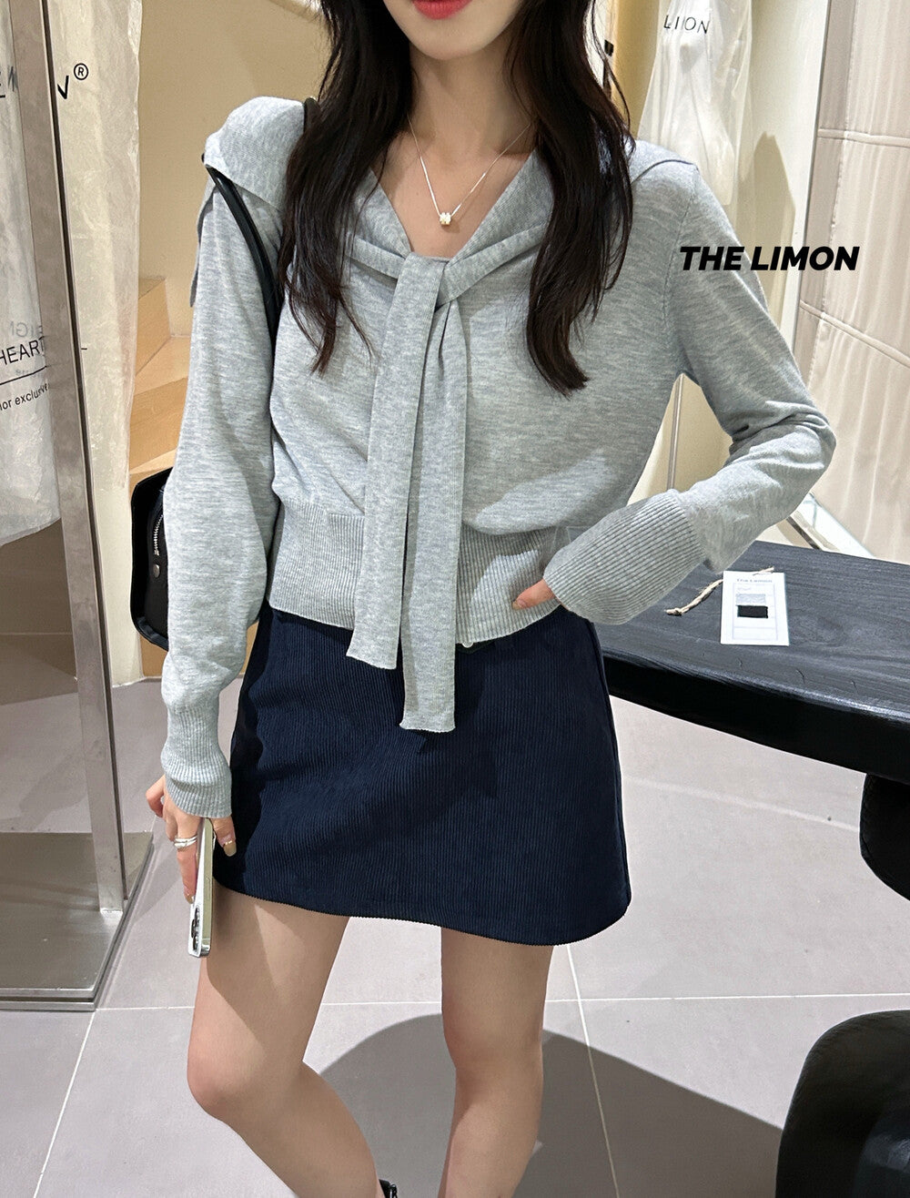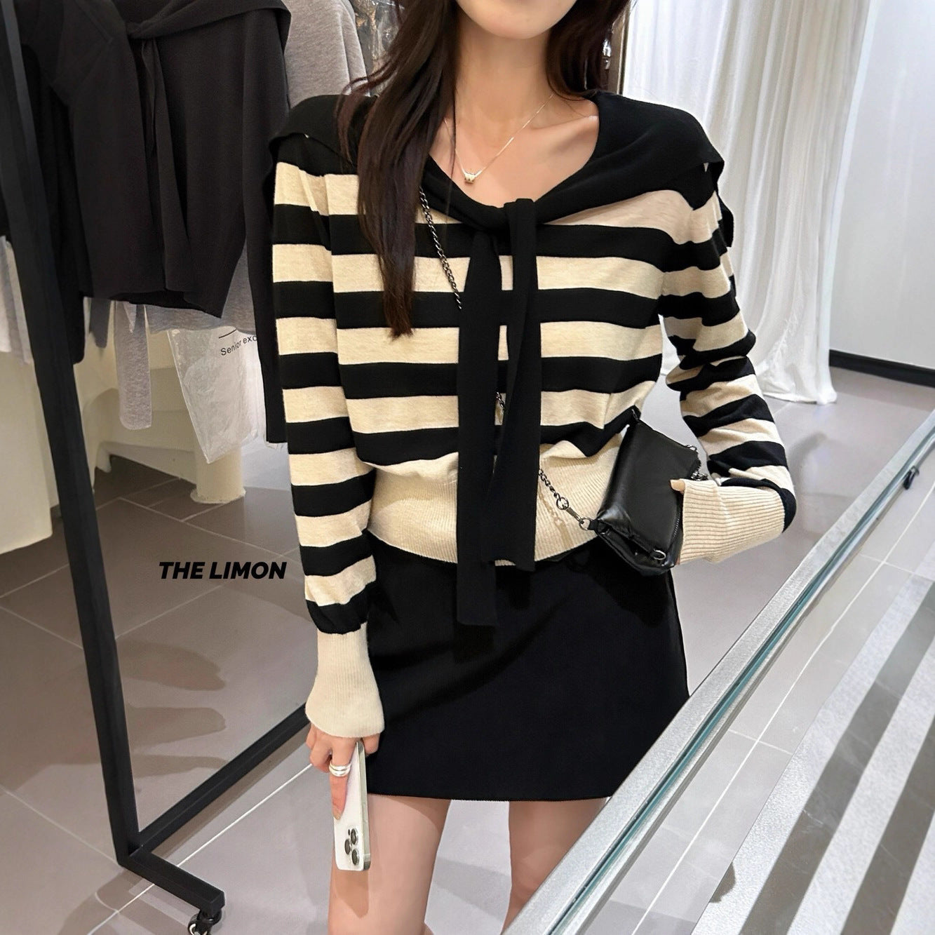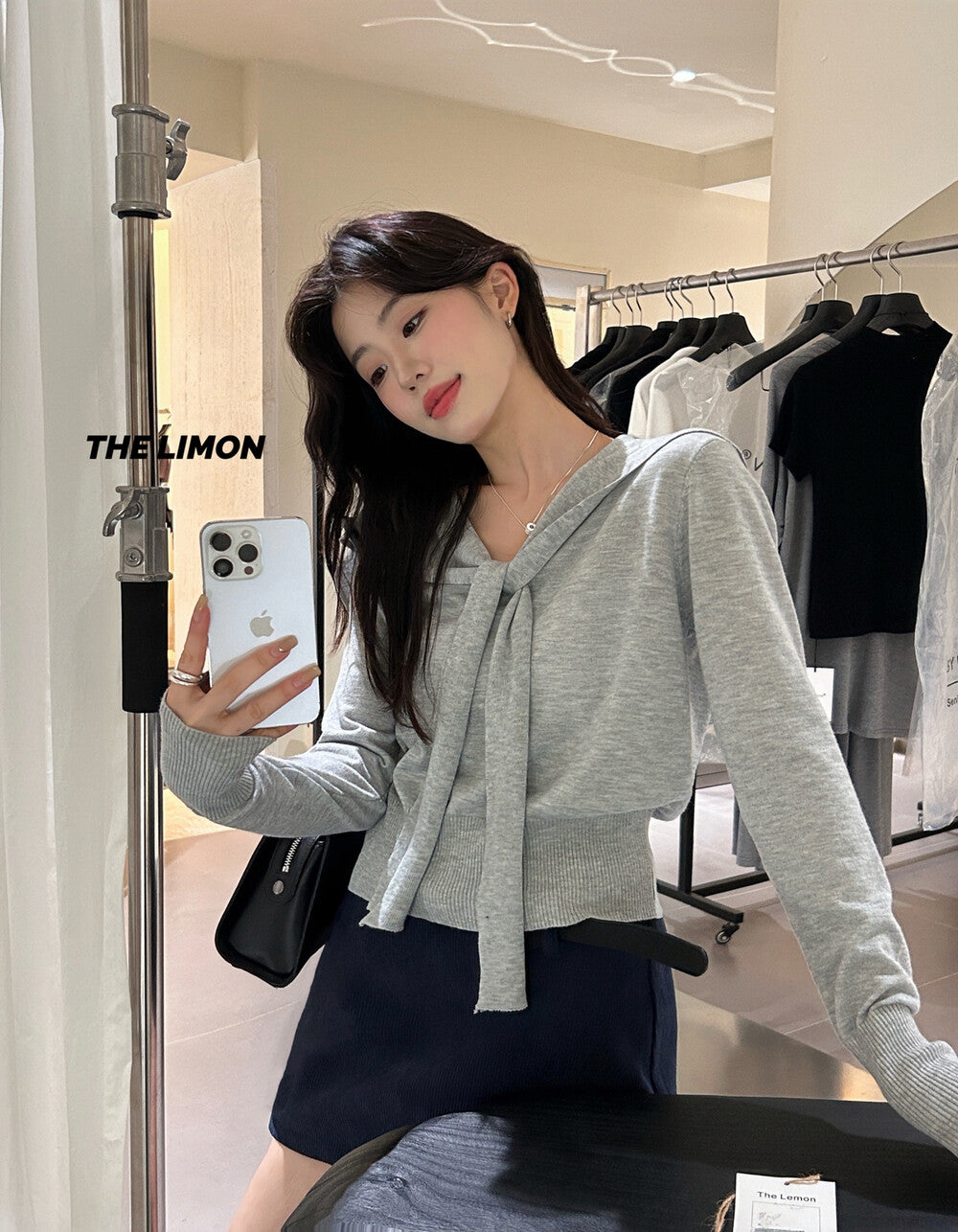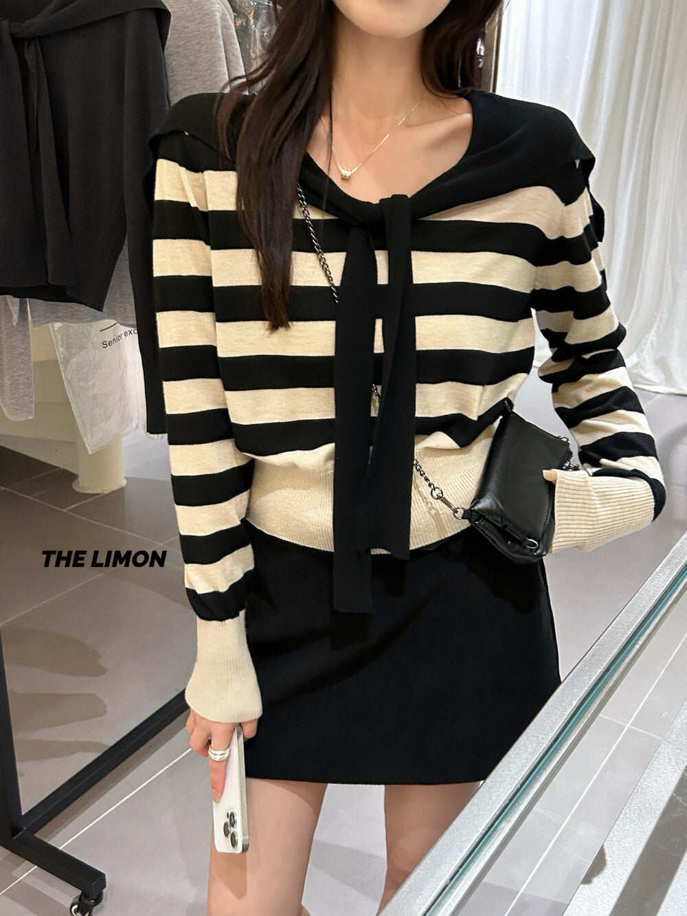 【L006852】實拍檸檬家時髦簡約海軍領長袖針織衫250901