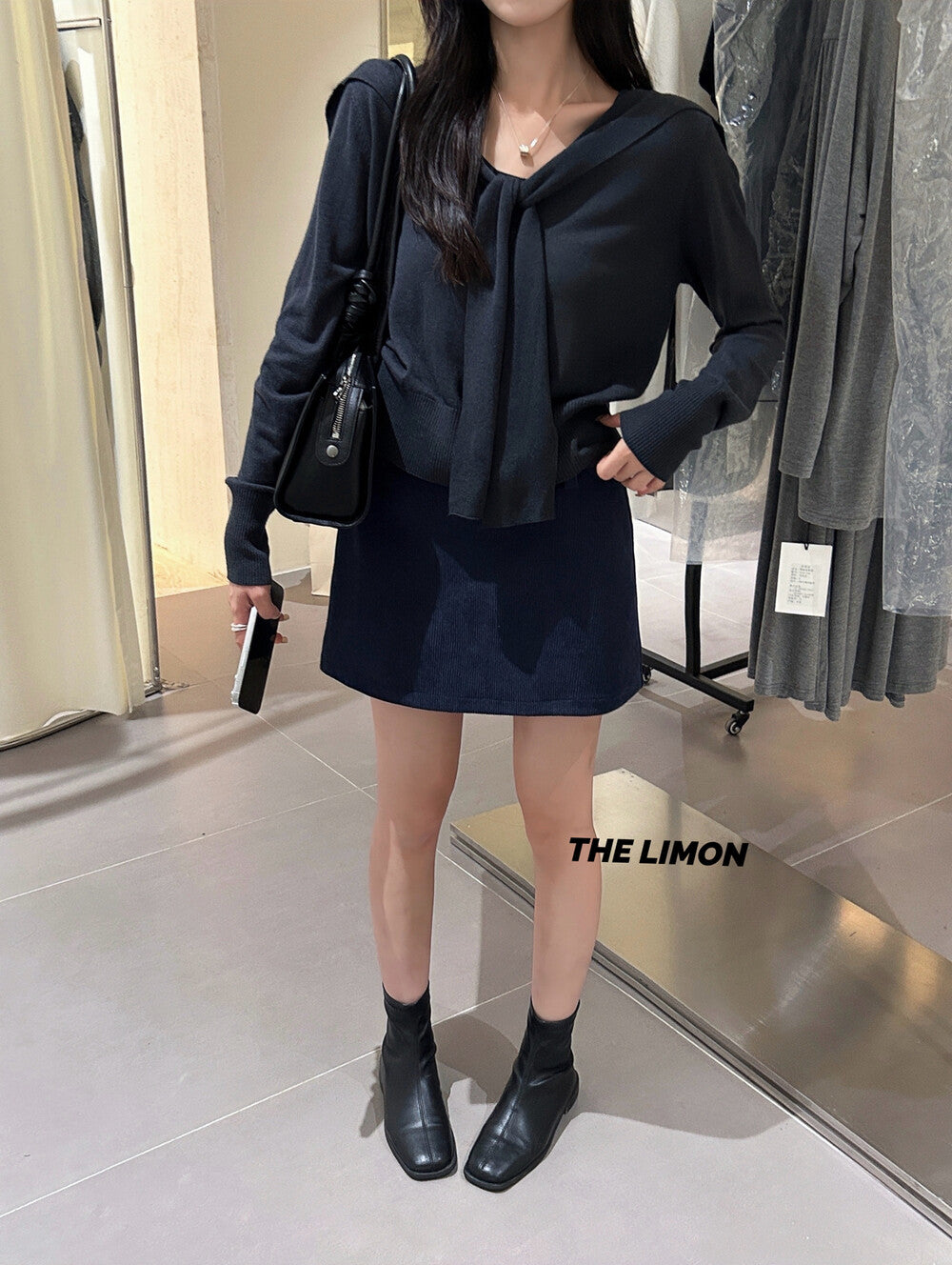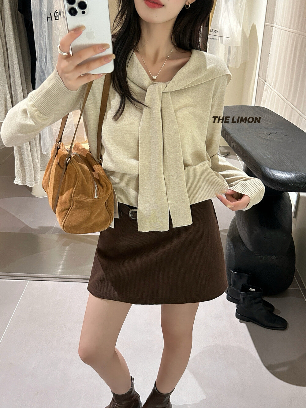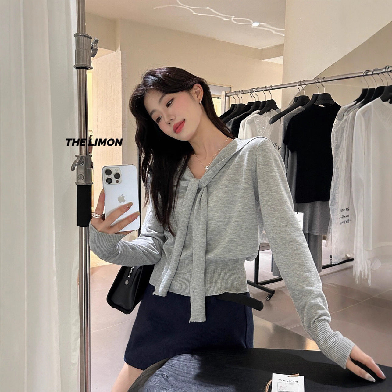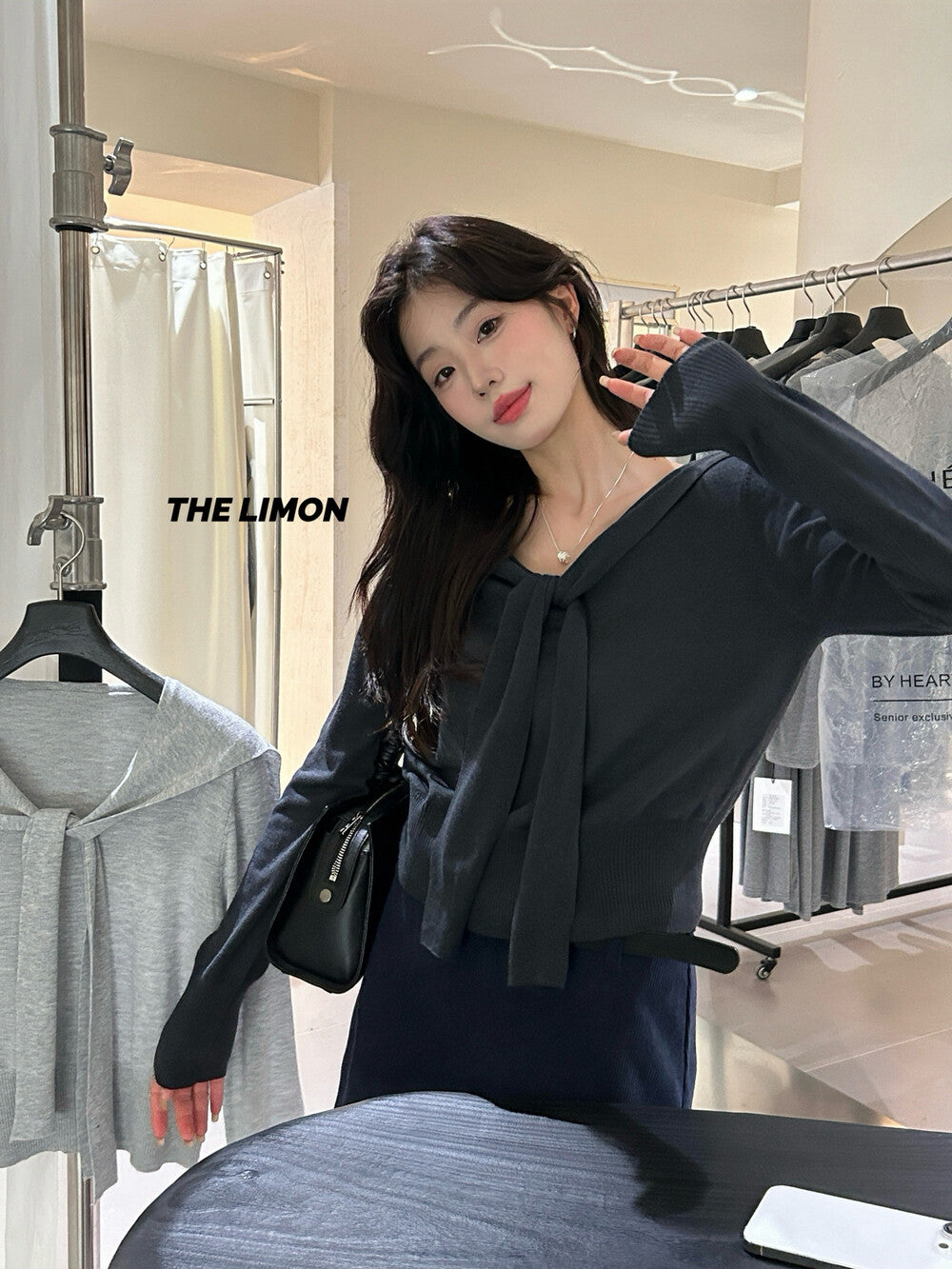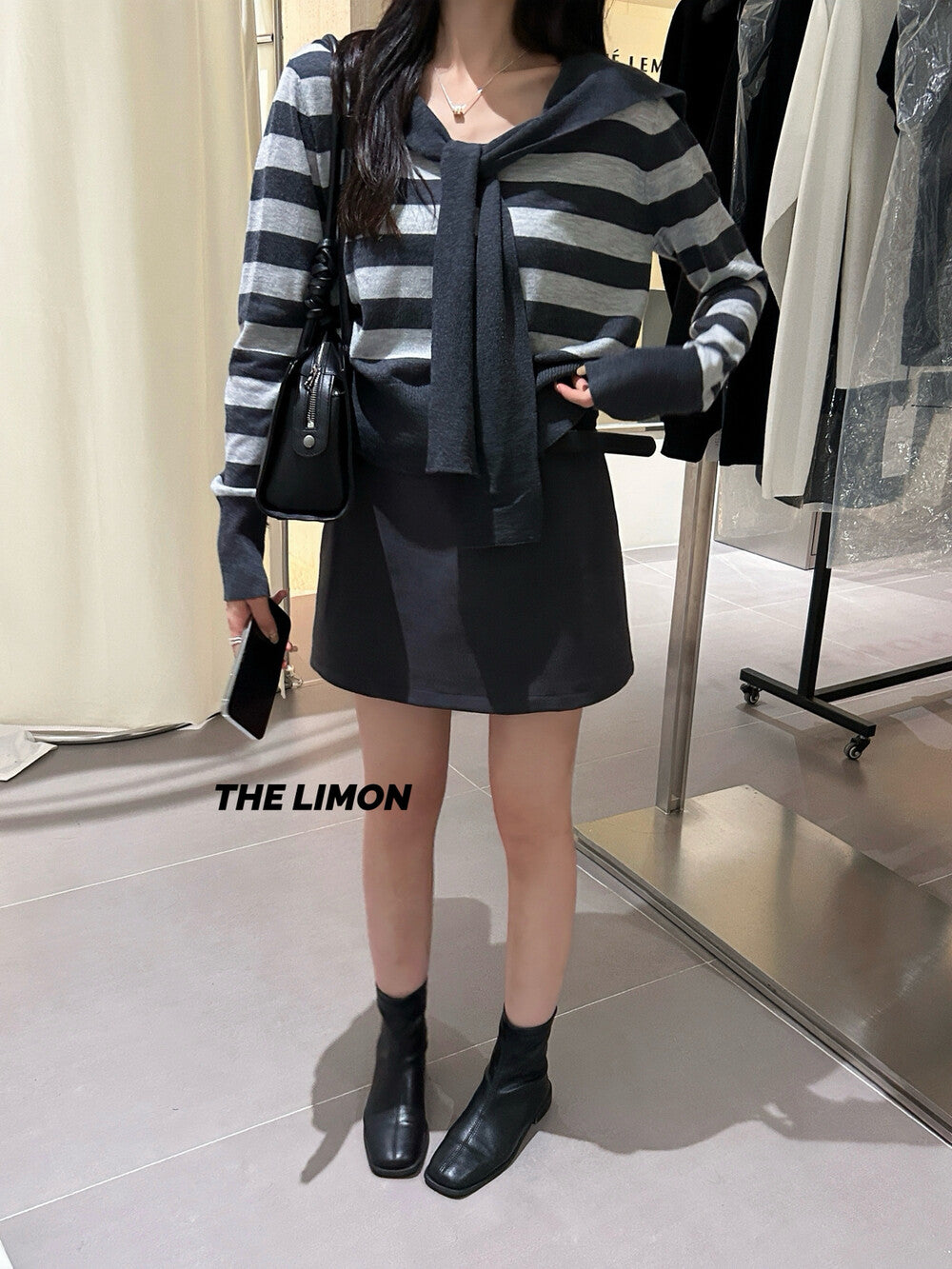 【L006852】實拍檸檬家時髦簡約海軍領長袖針織衫250901