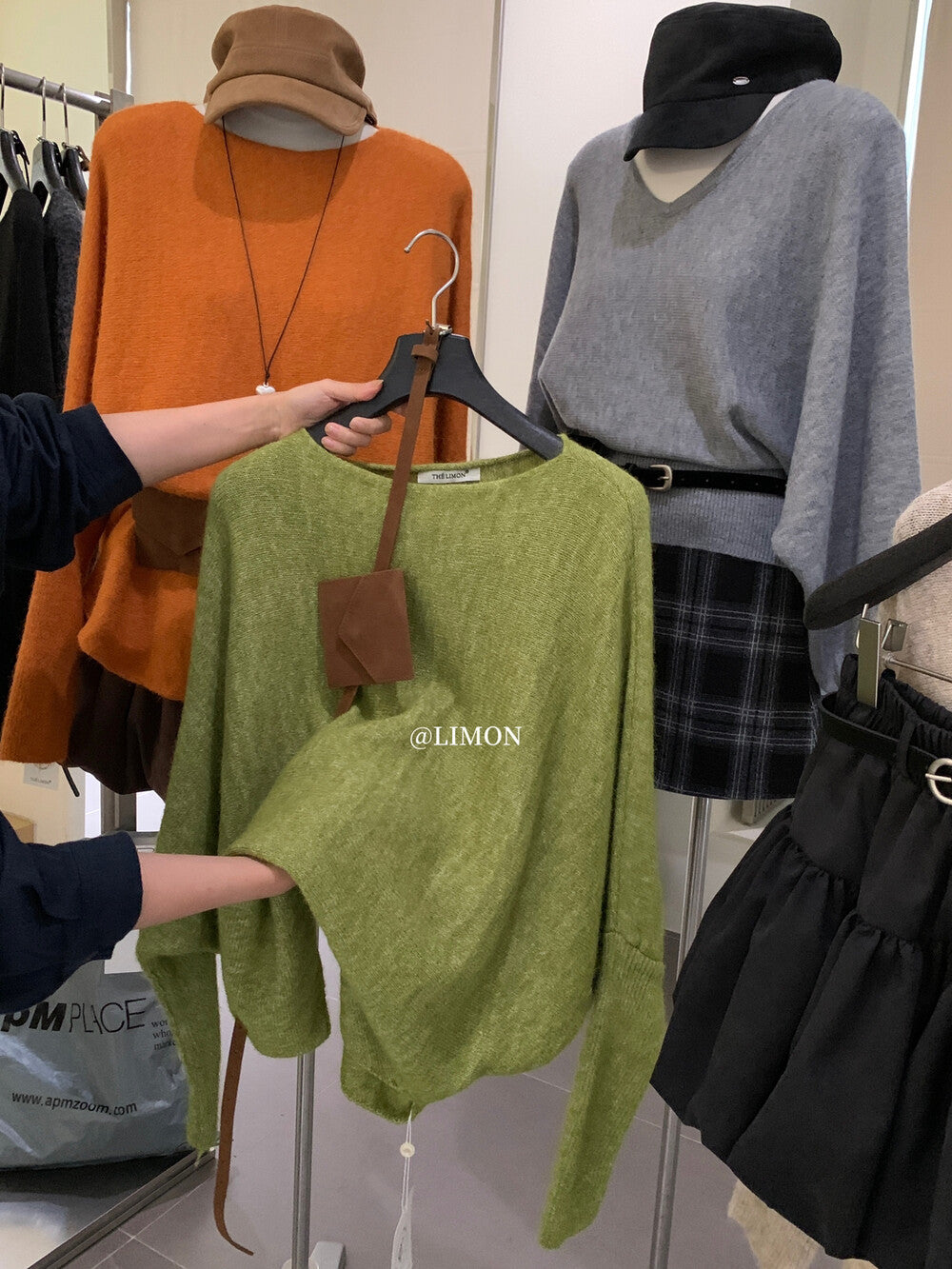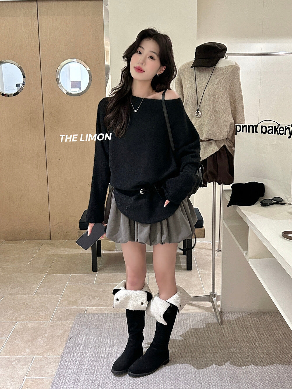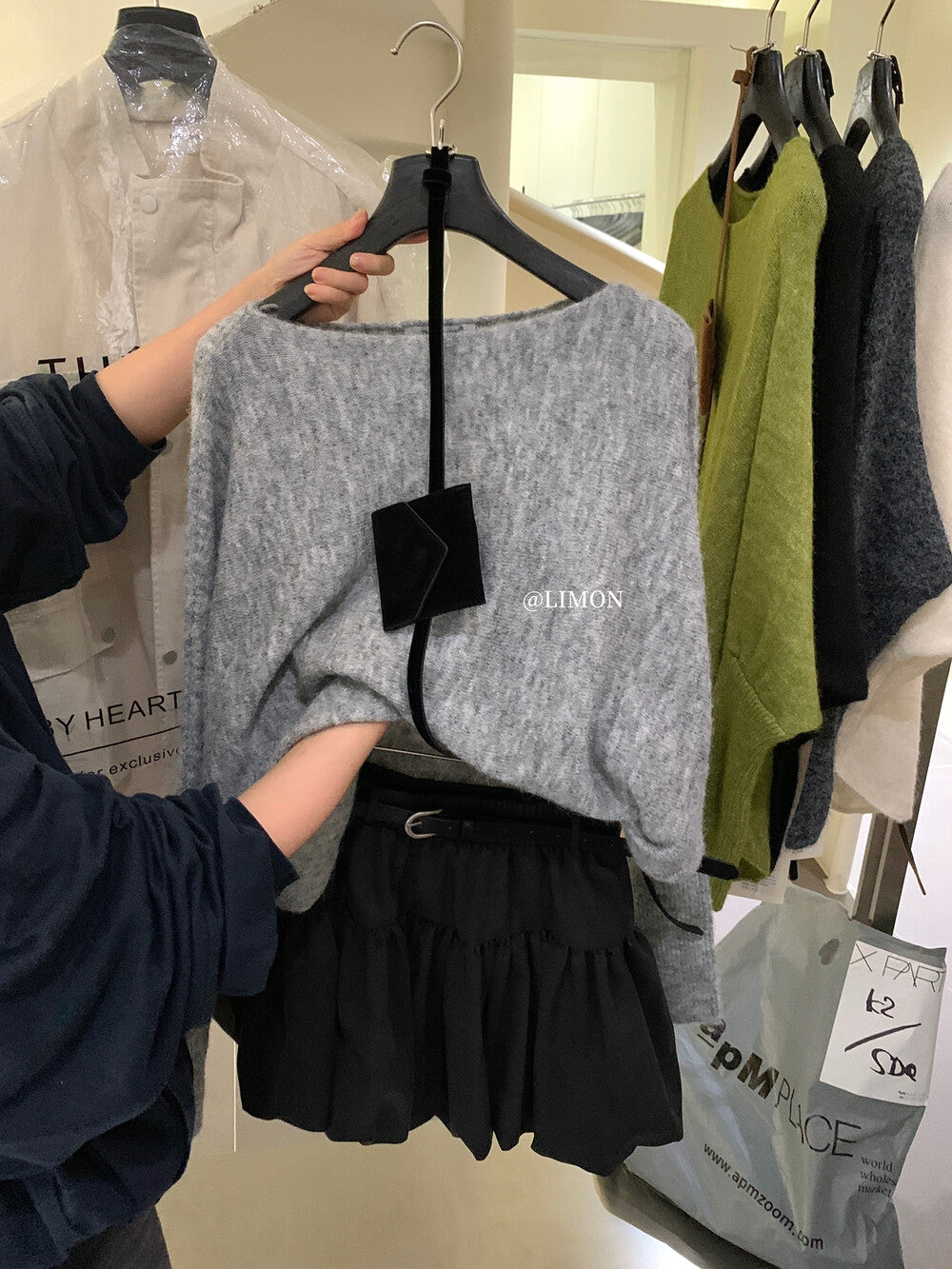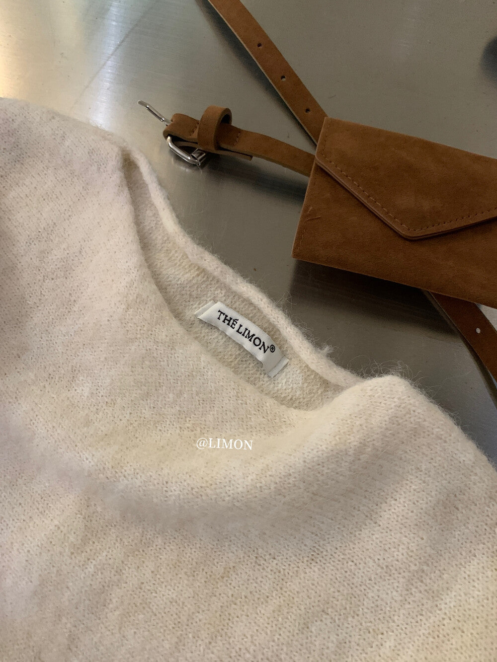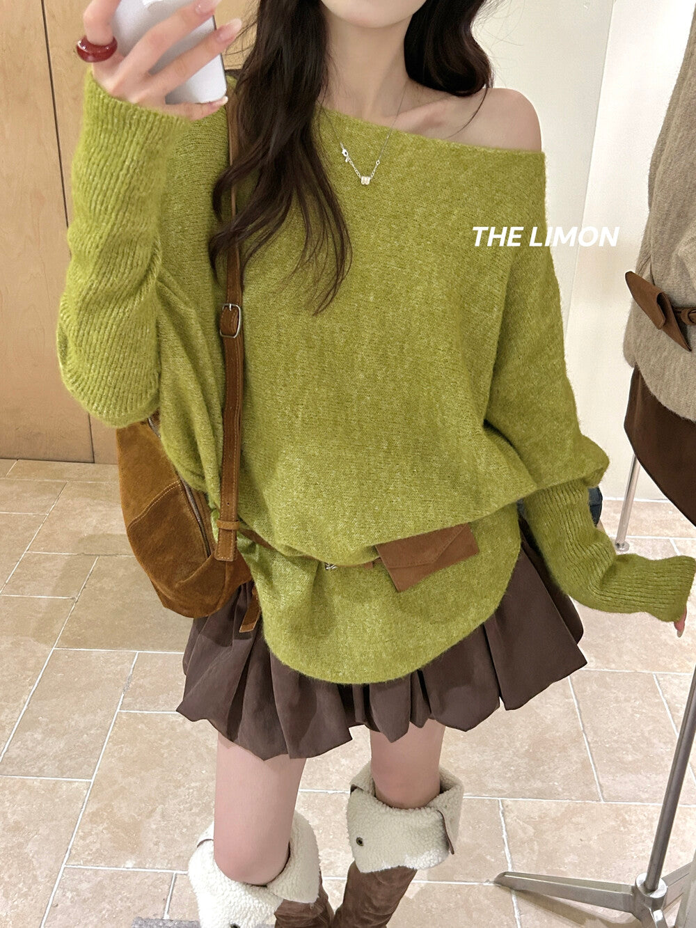 【L006868】實拍檸檬秋季慵懶寬鬆露肩長袖針織衫+腰包(含羊毛8%)250930