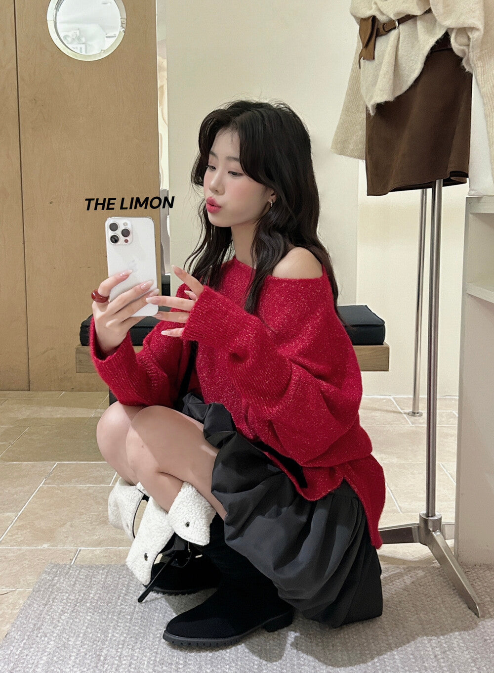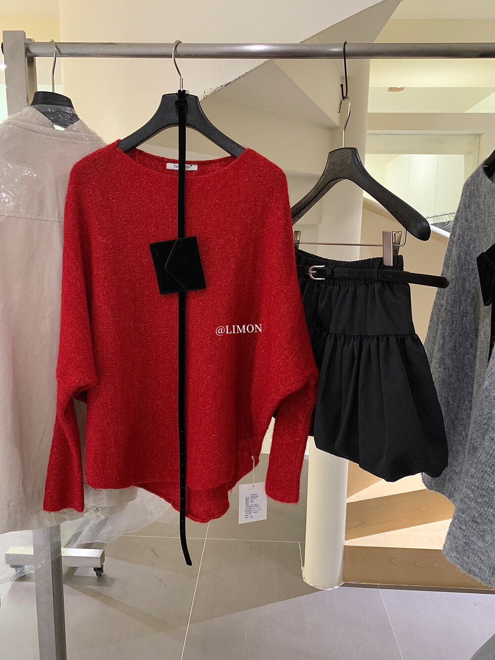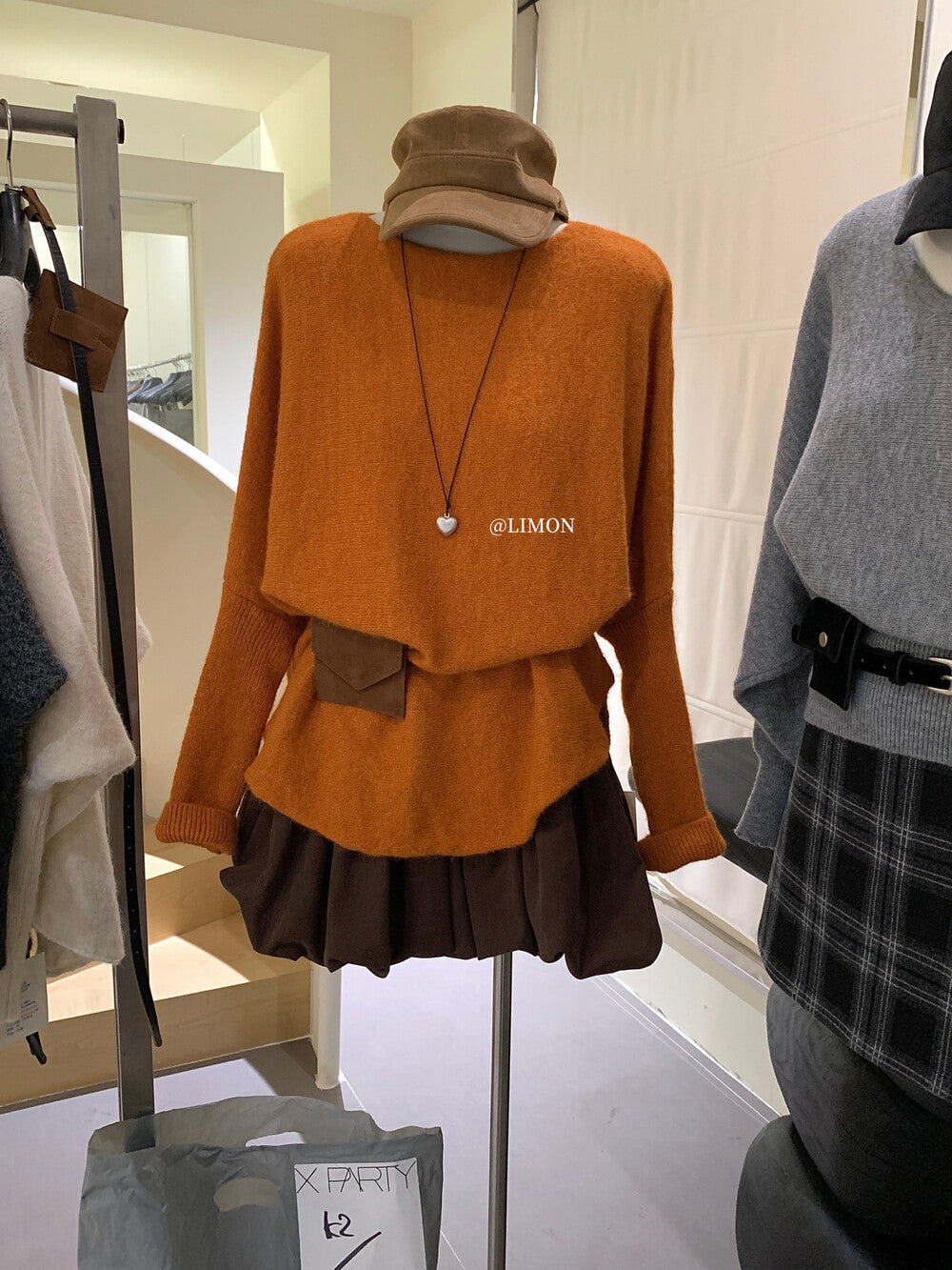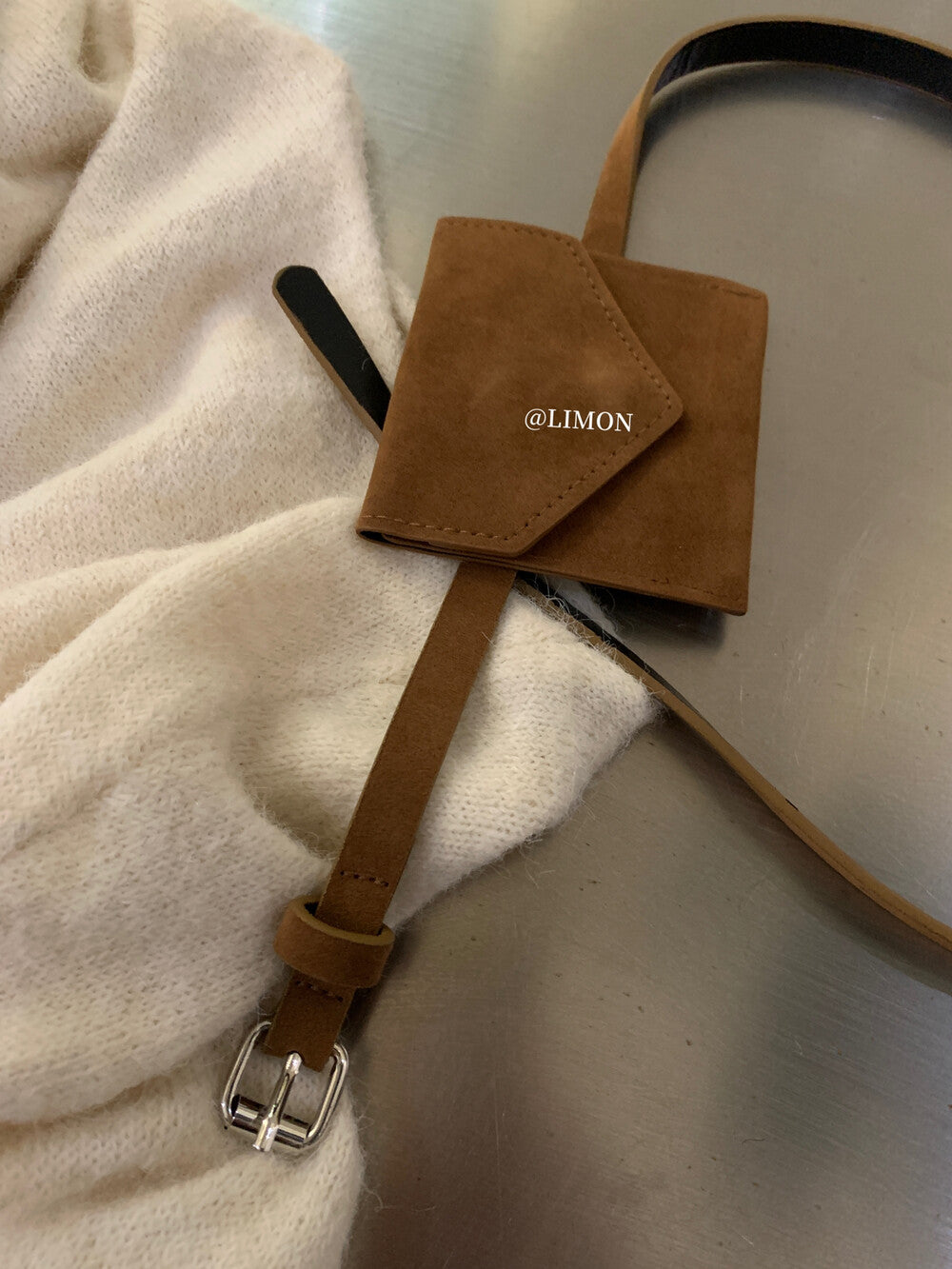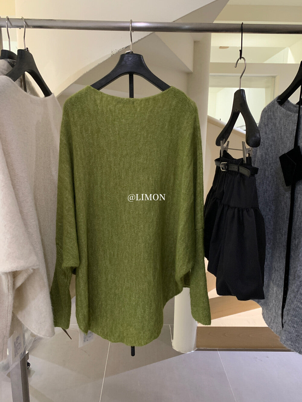 【L006868】實拍檸檬秋季慵懶寬鬆露肩長袖針織衫+腰包(含羊毛8%)250930