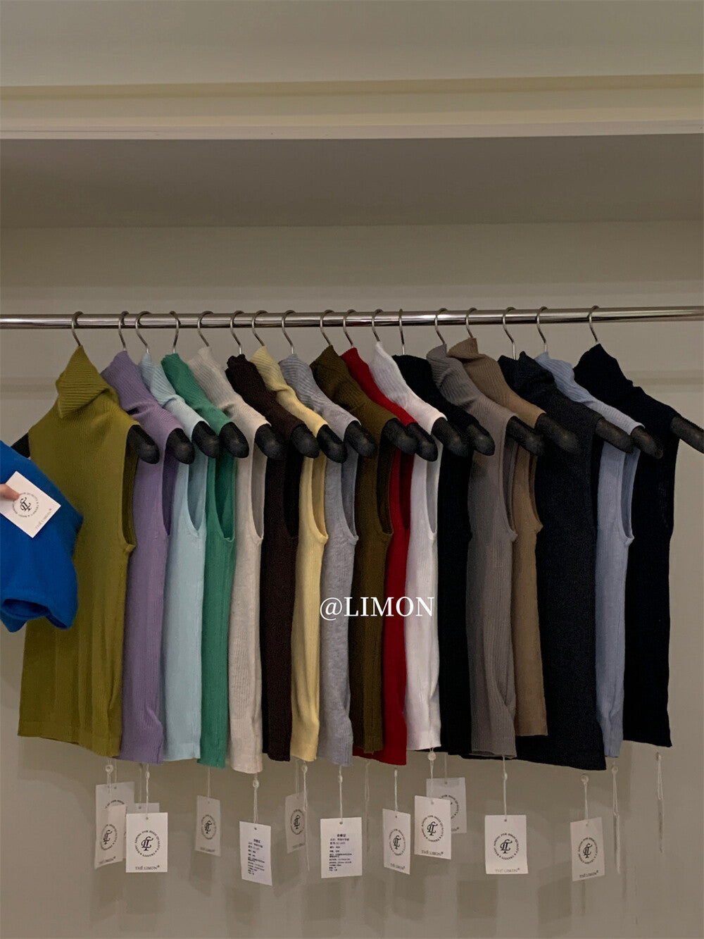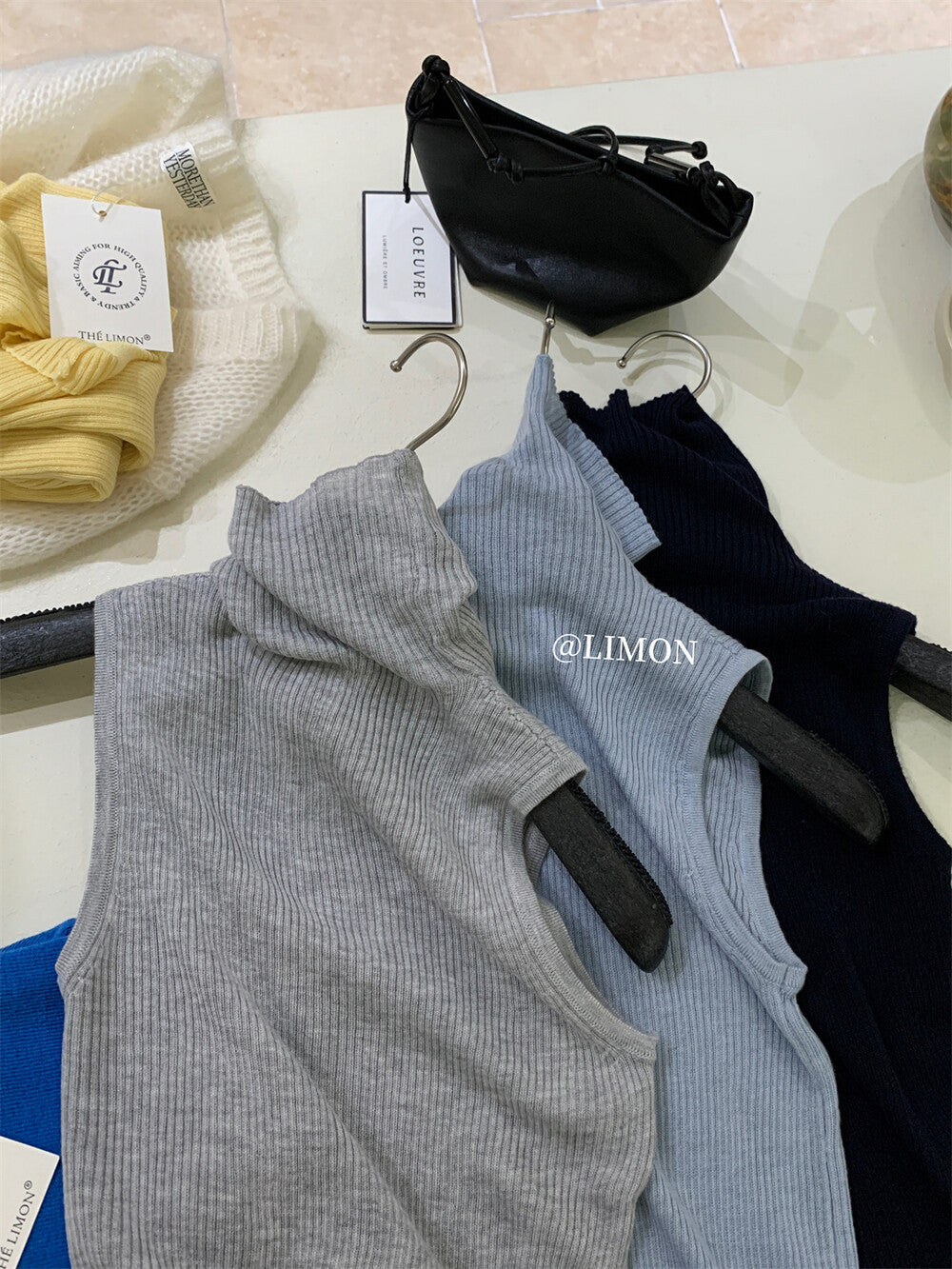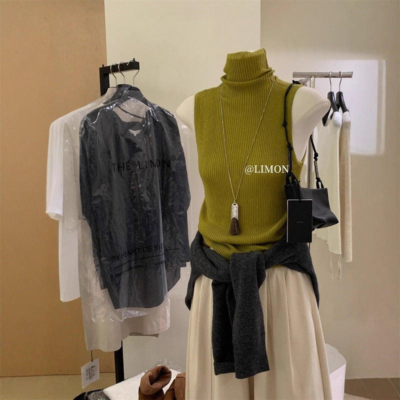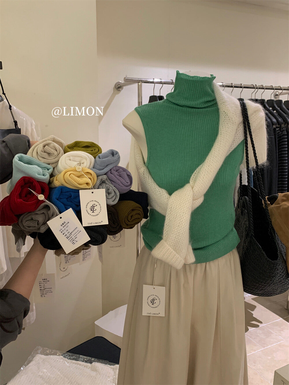 【L1077】實拍檸檬秋季簡約坑條半高領無袖針織衫250915