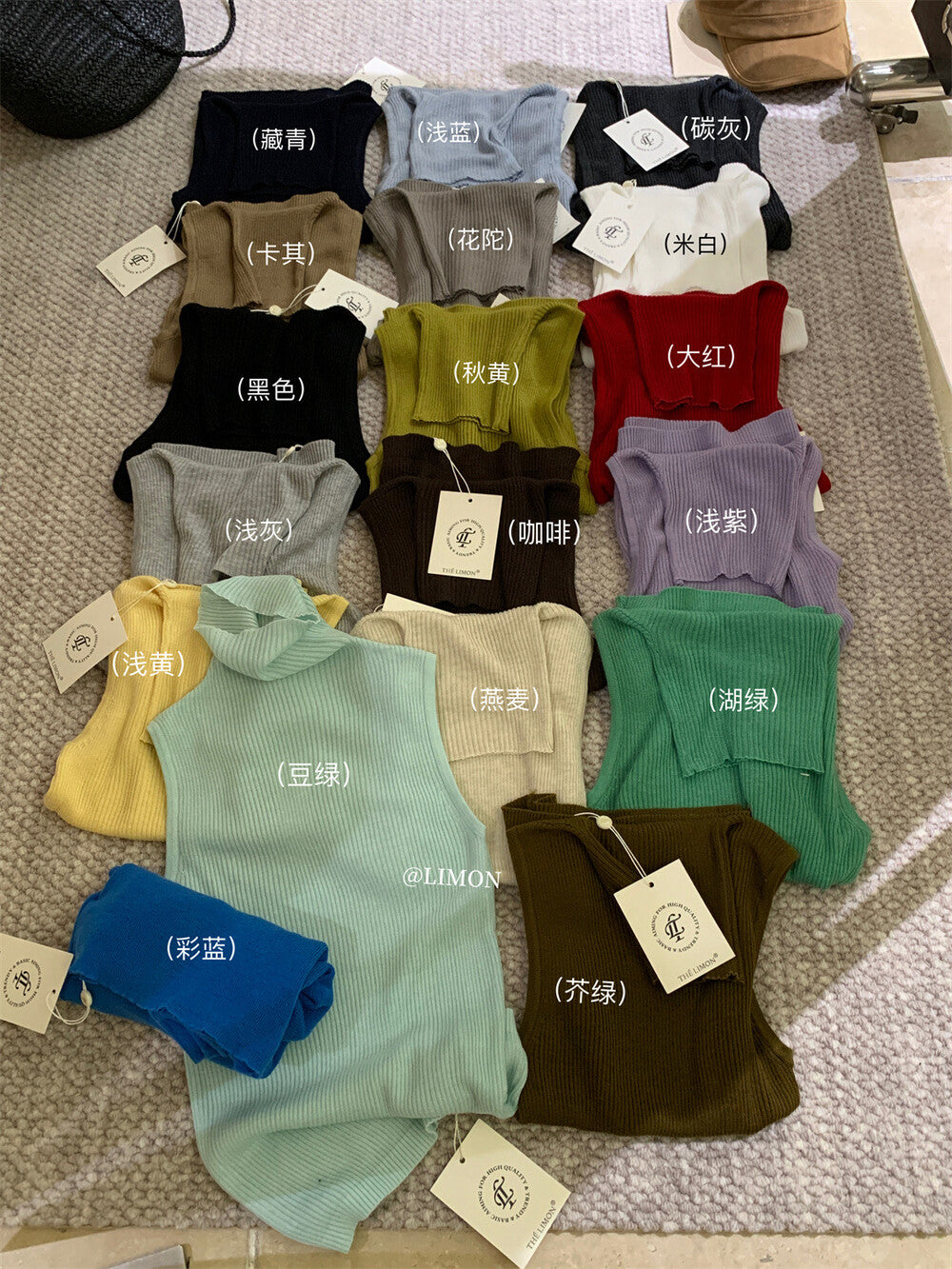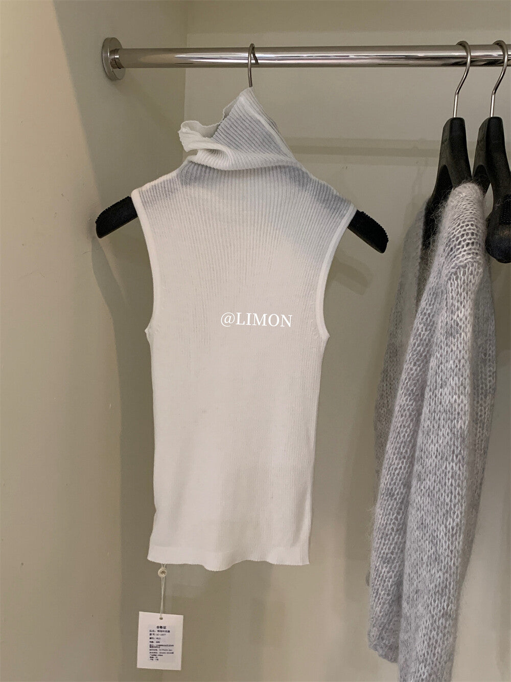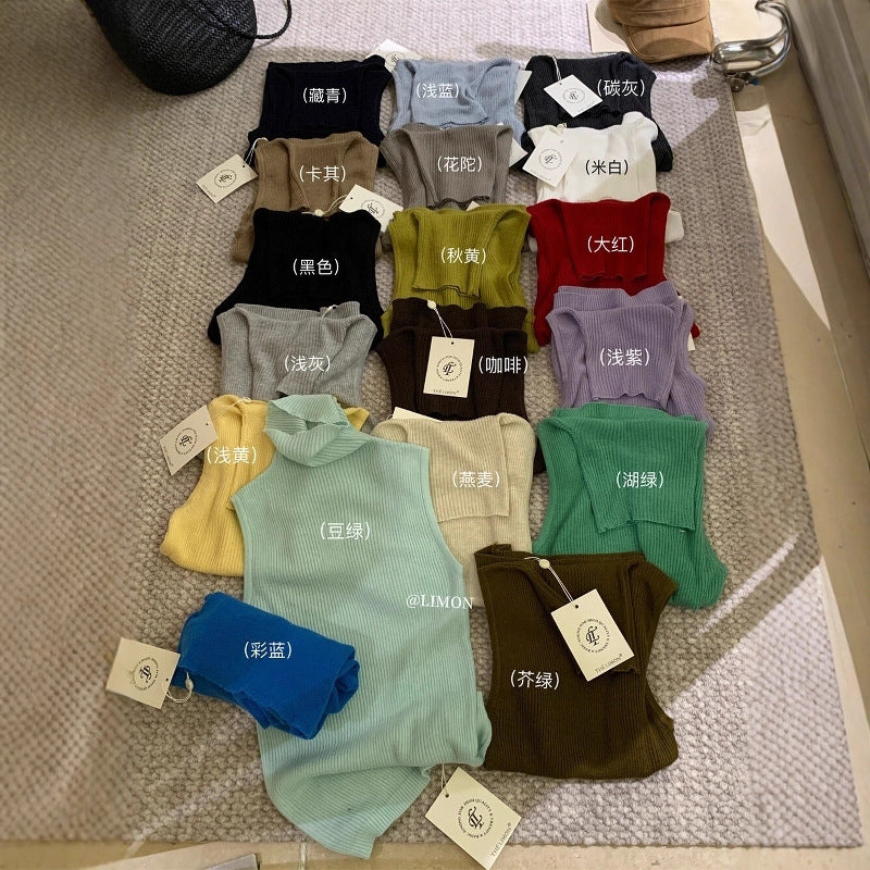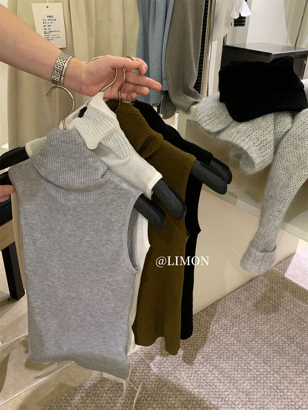 【L1077】實拍檸檬秋季簡約坑條半高領無袖針織衫250915