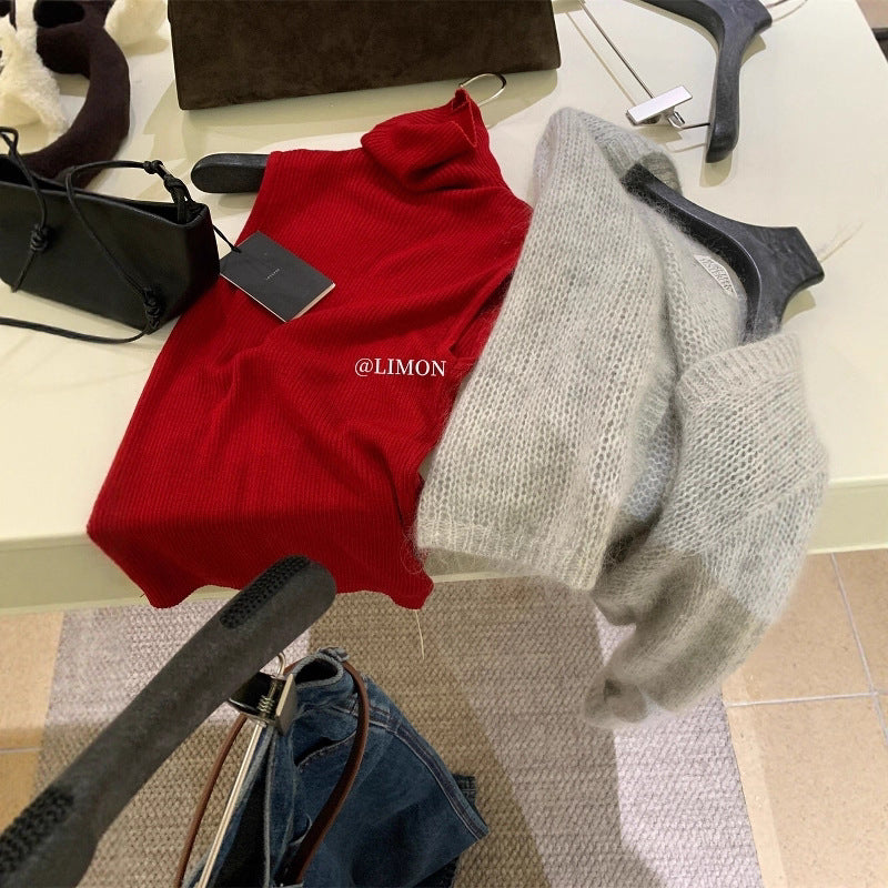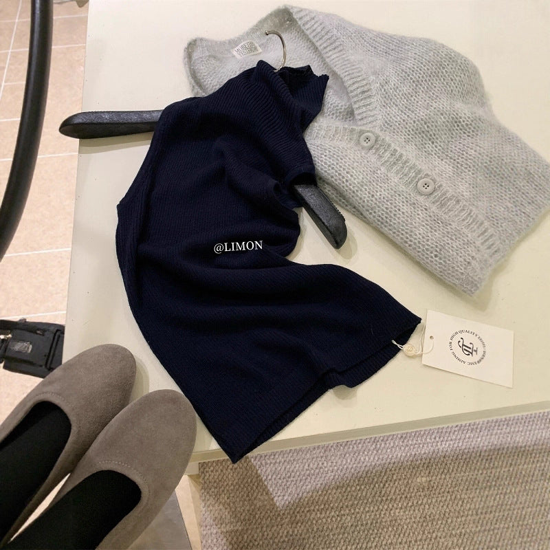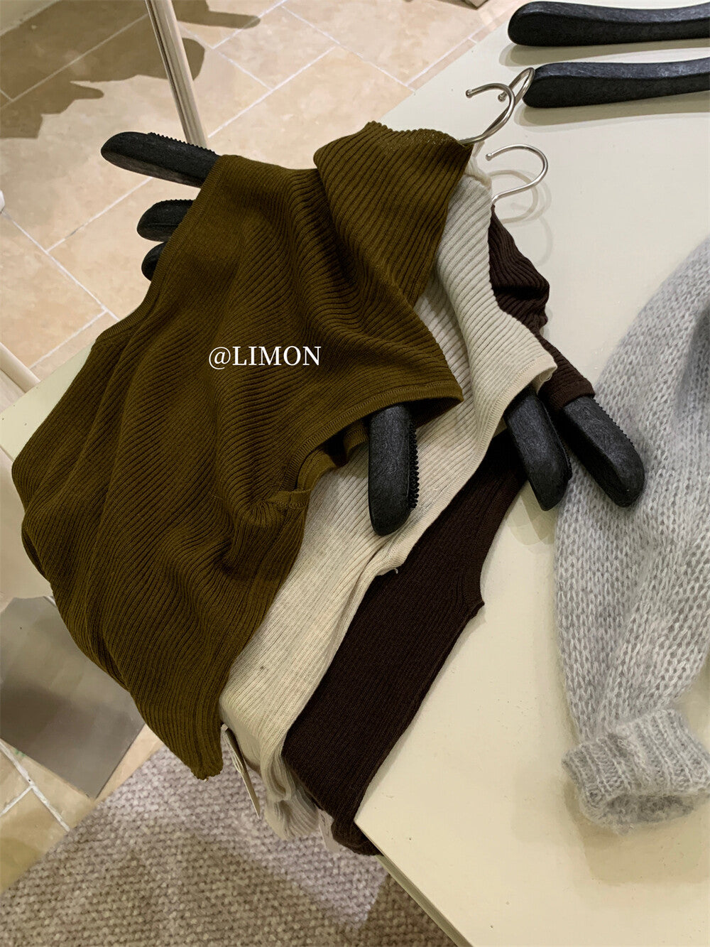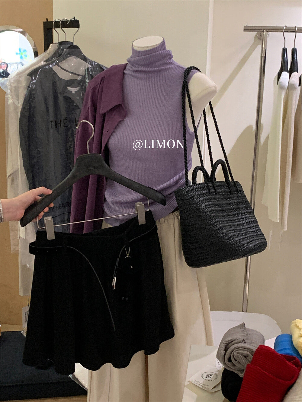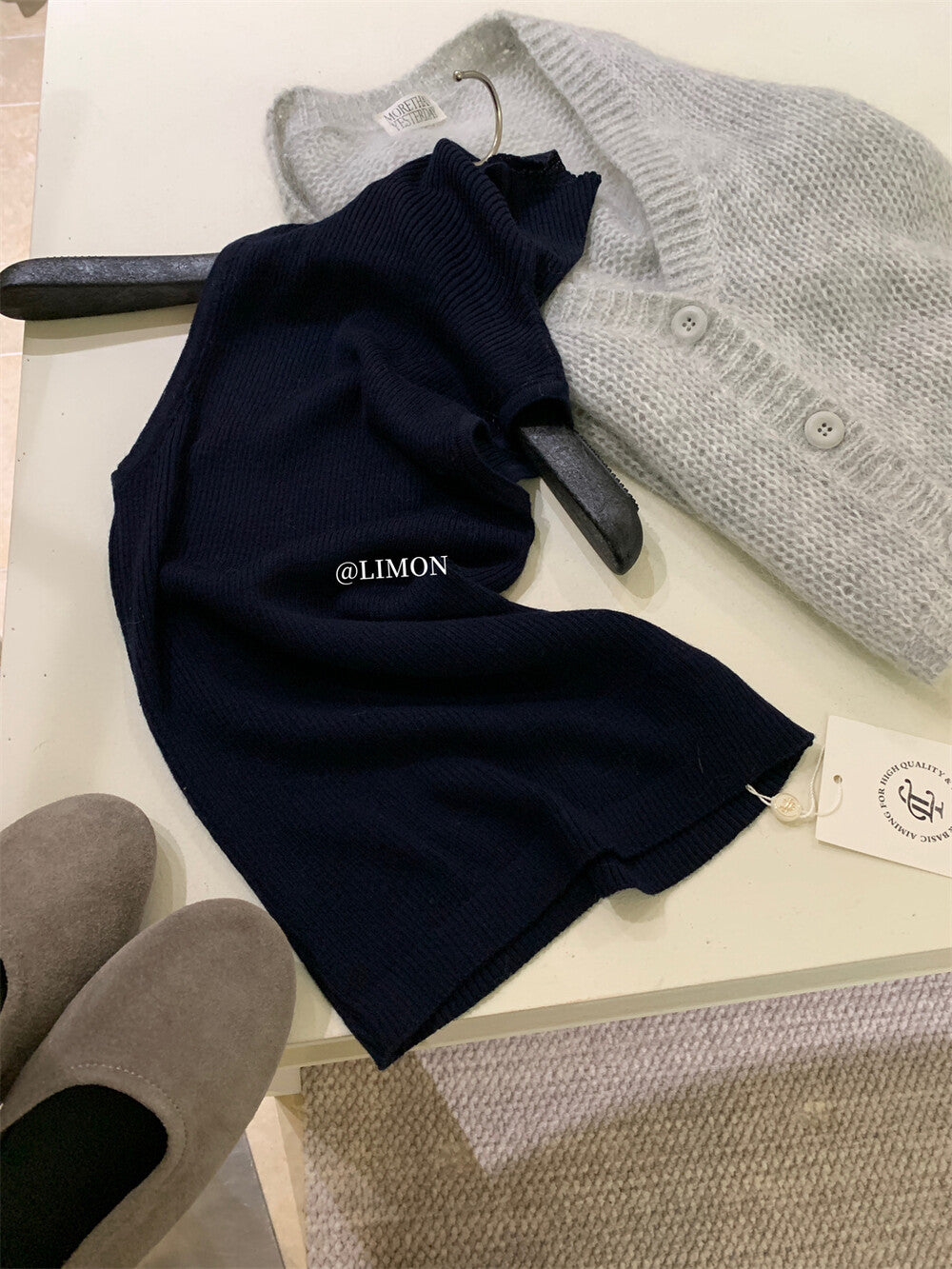 【L1077】實拍檸檬秋季簡約坑條半高領無袖針織衫250915