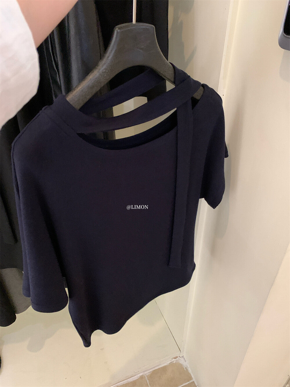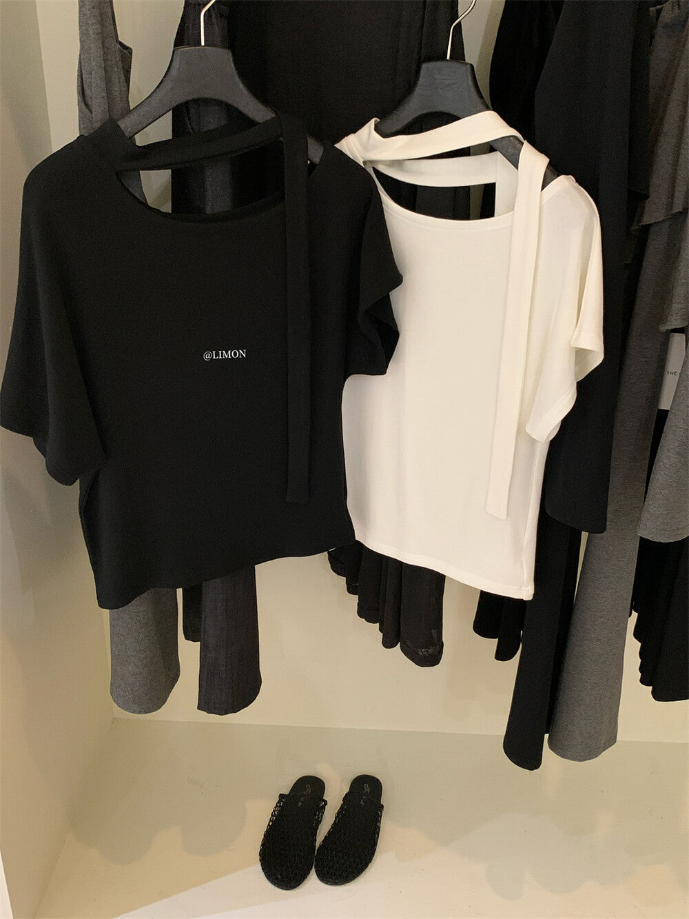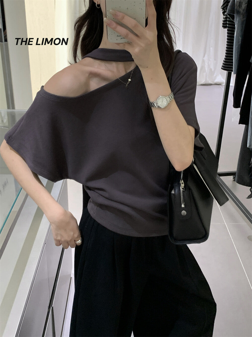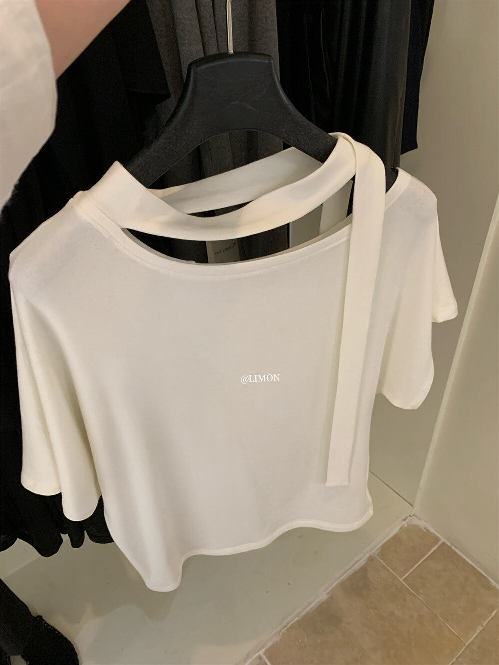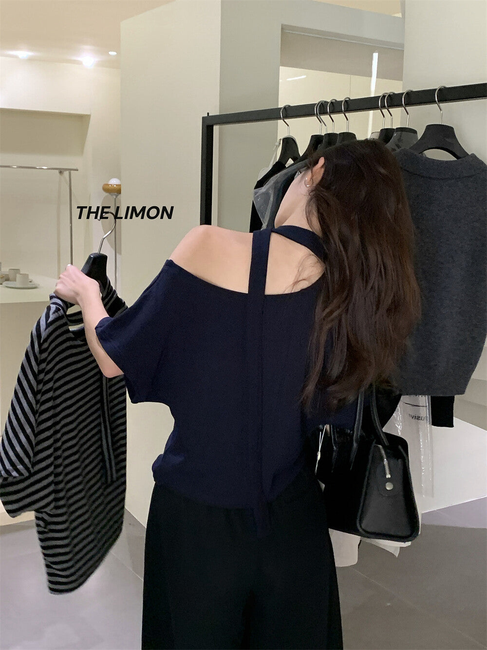 【L1128】實拍檸檬家慵懶羊絨斜肩T恤+飄帶250901