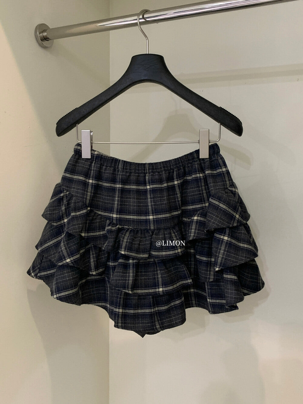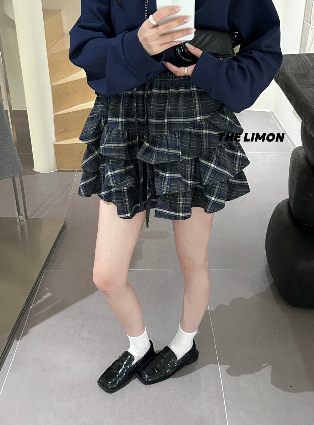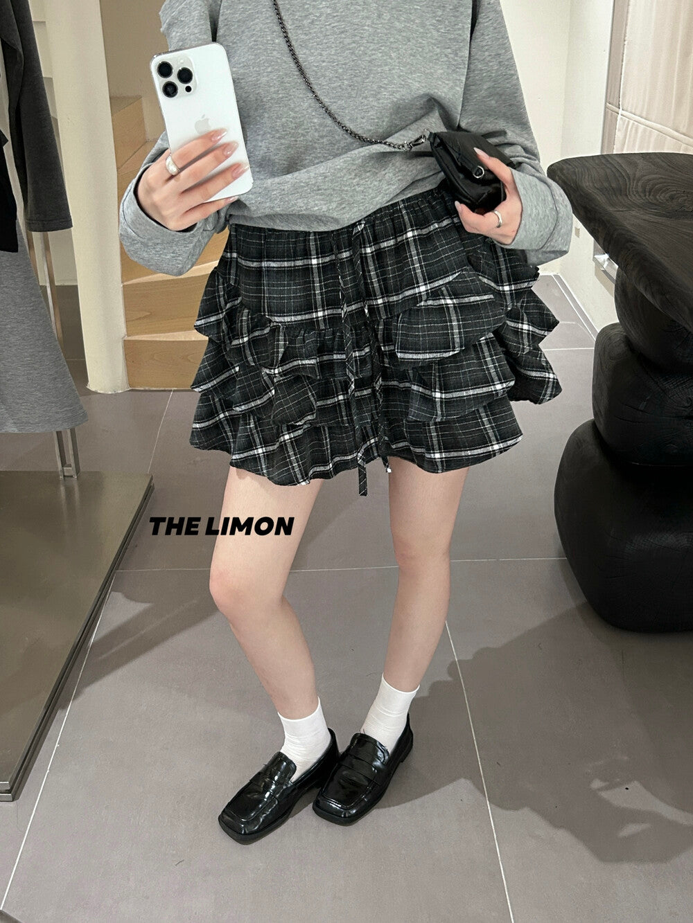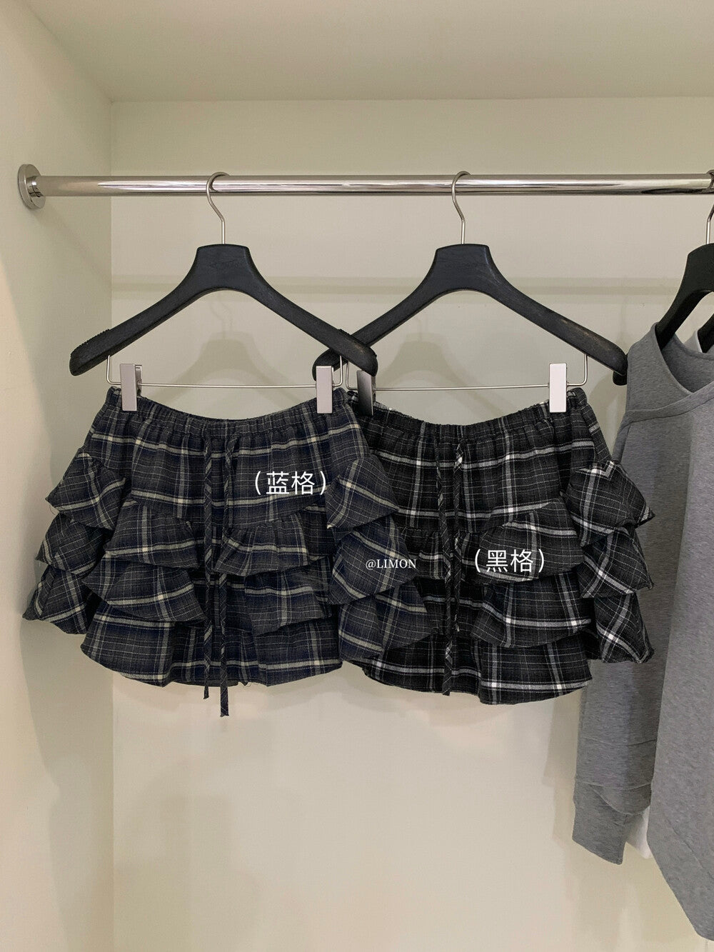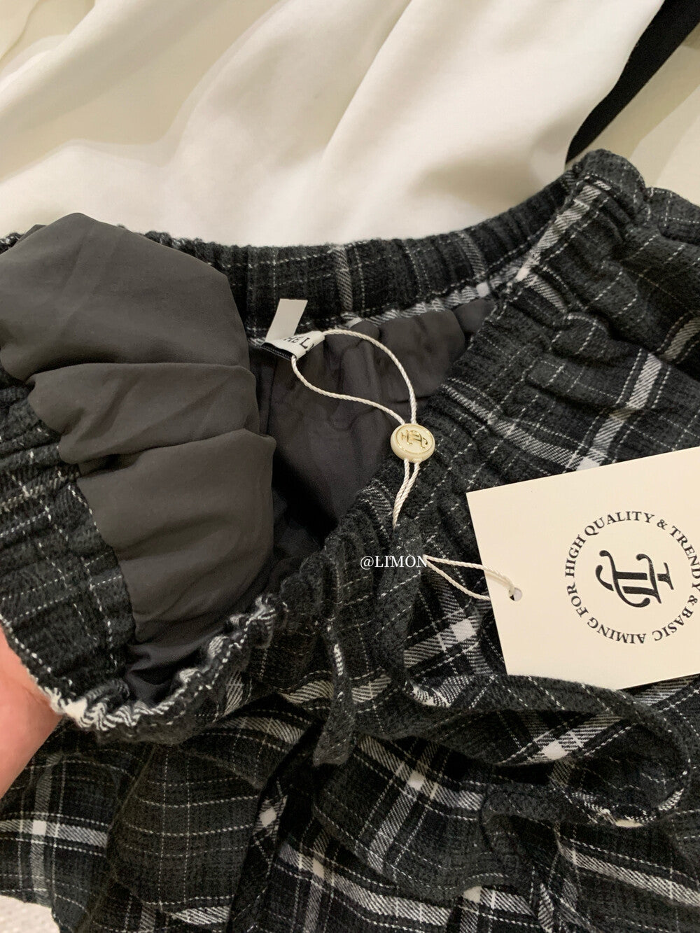 【L1139】實拍檸檬秋季磨毛復古格紋繫帶蛋糕裙250915