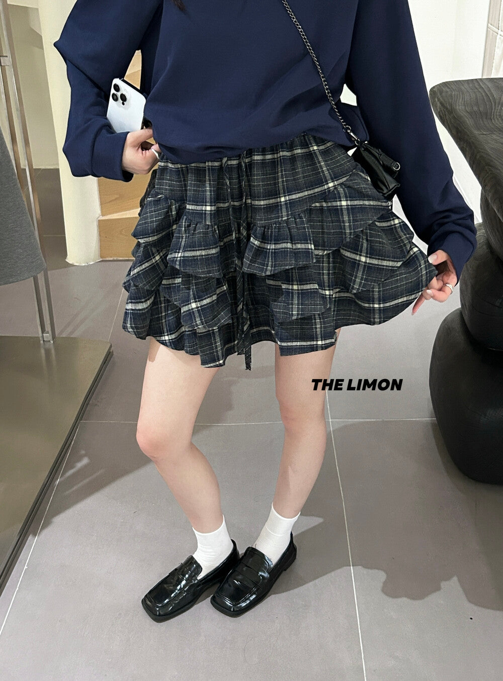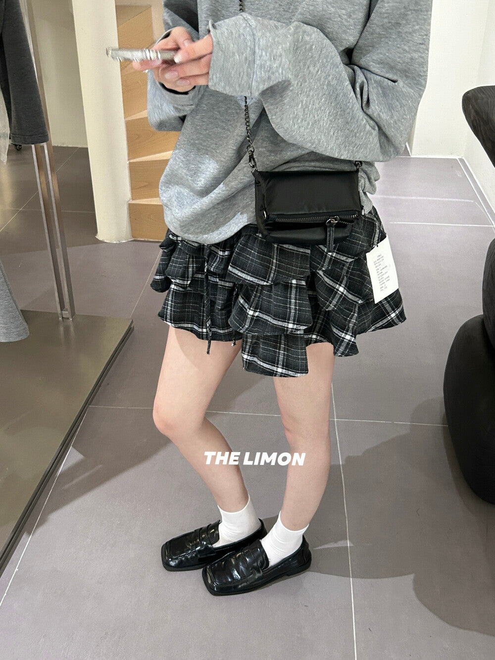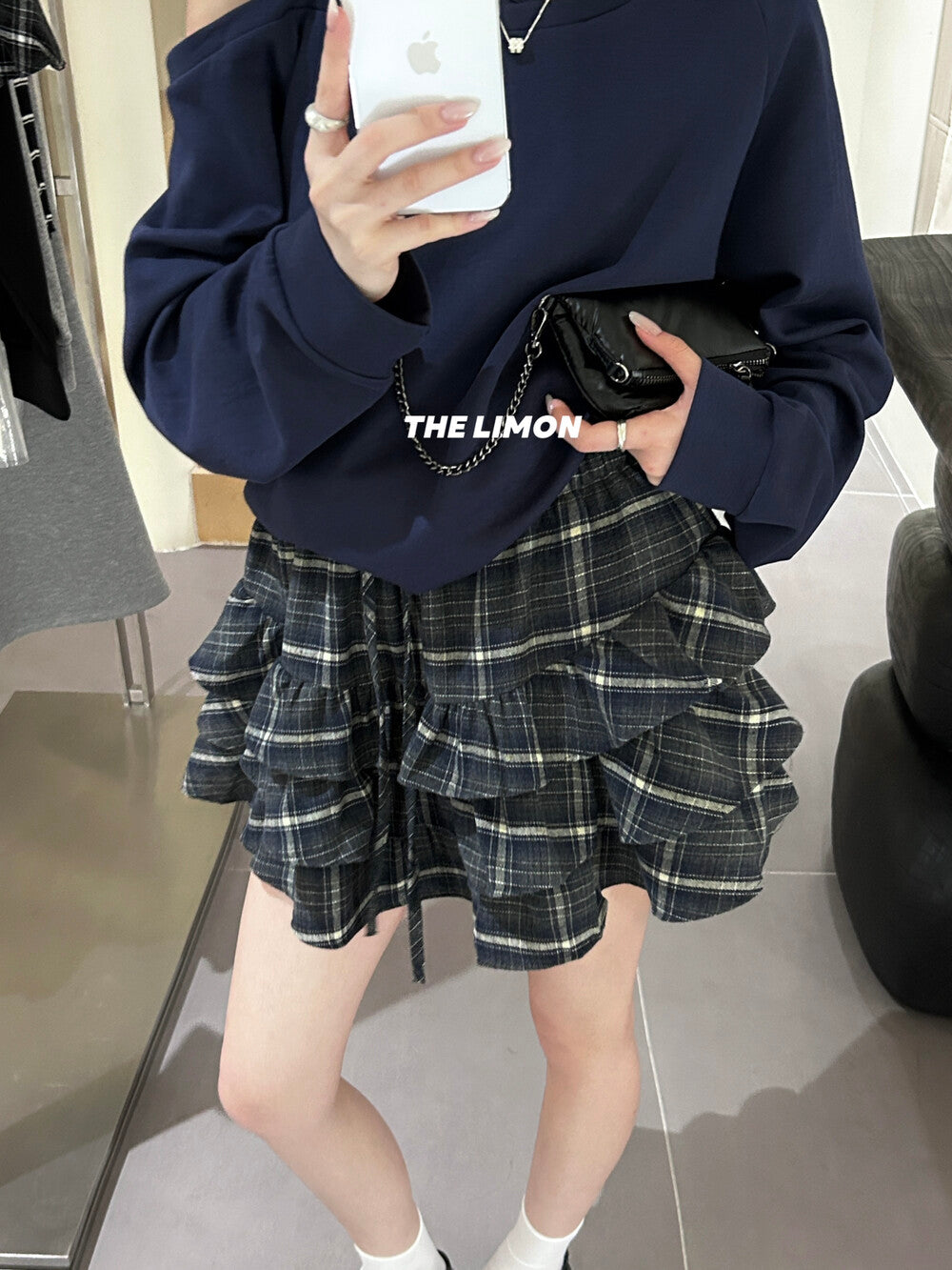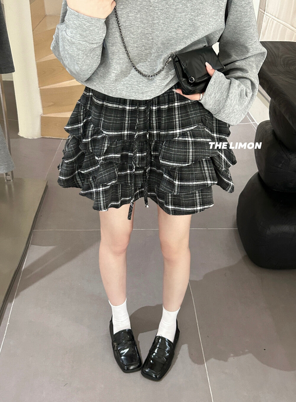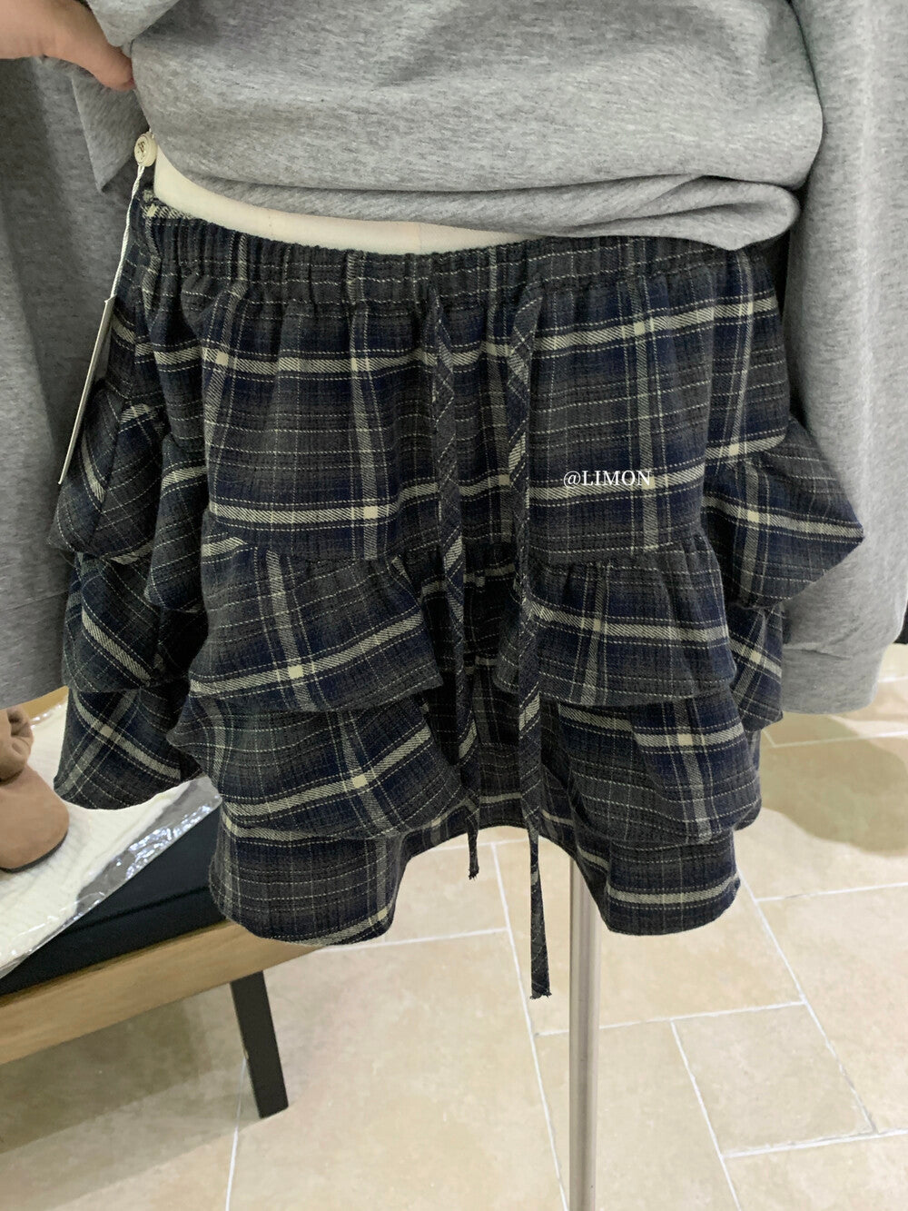 【L1139】實拍檸檬秋季磨毛復古格紋繫帶蛋糕裙250915