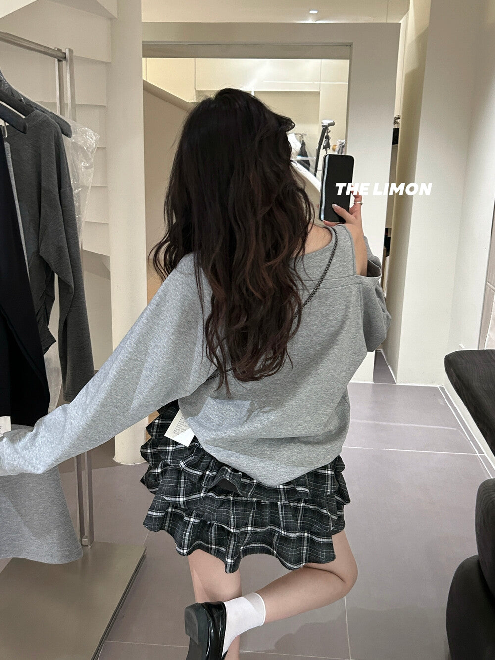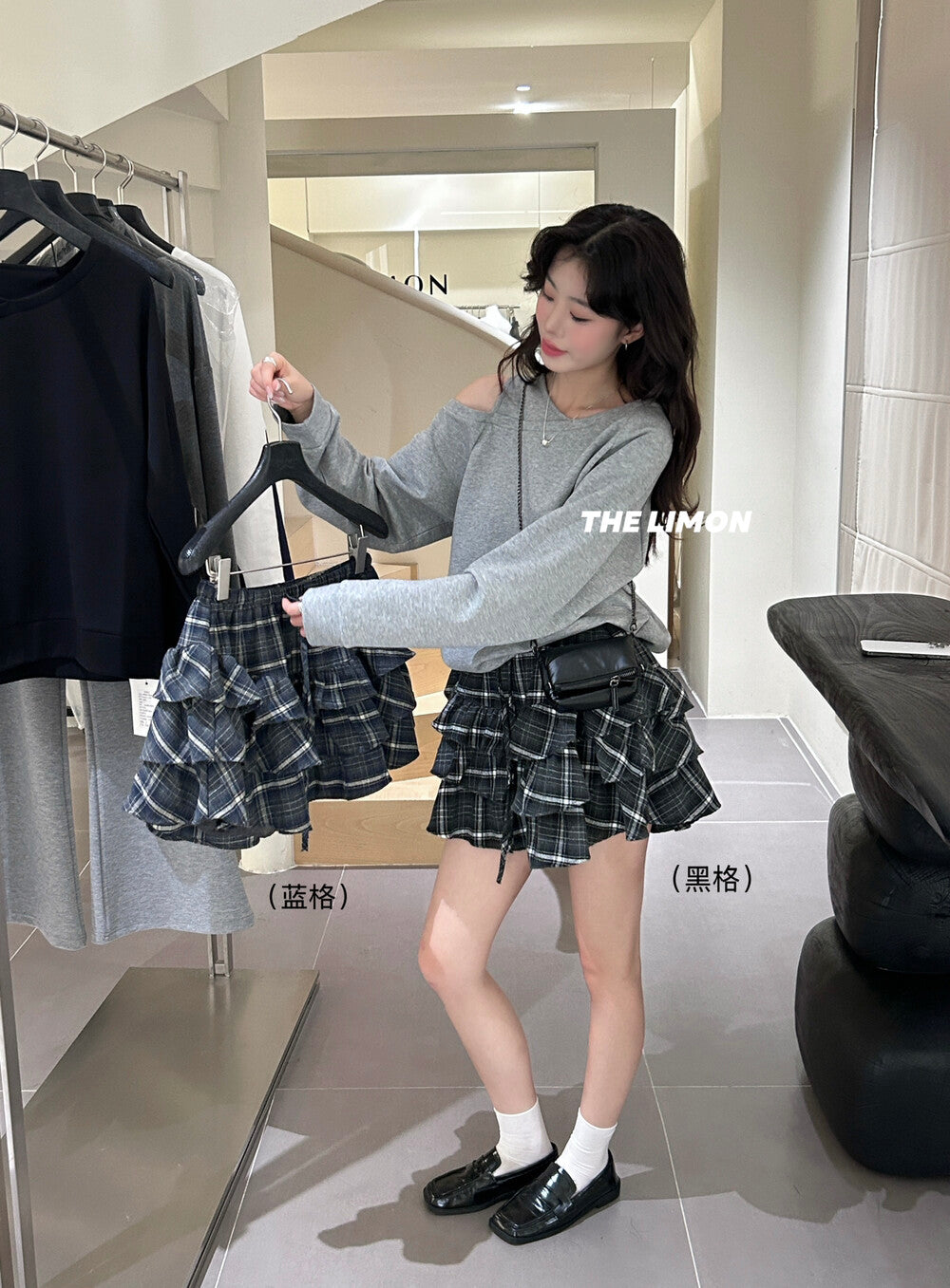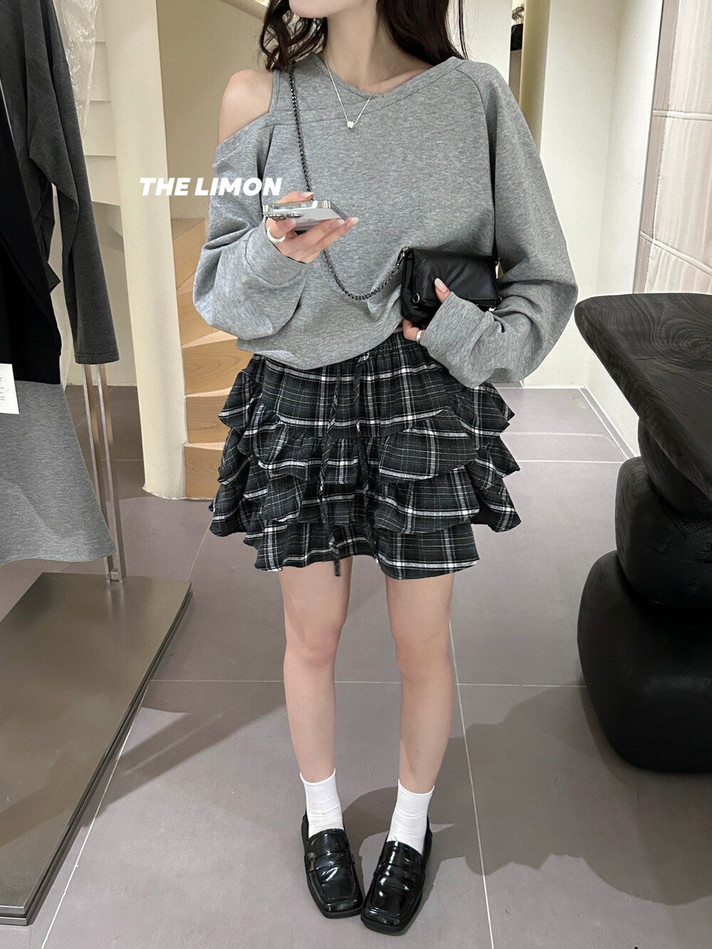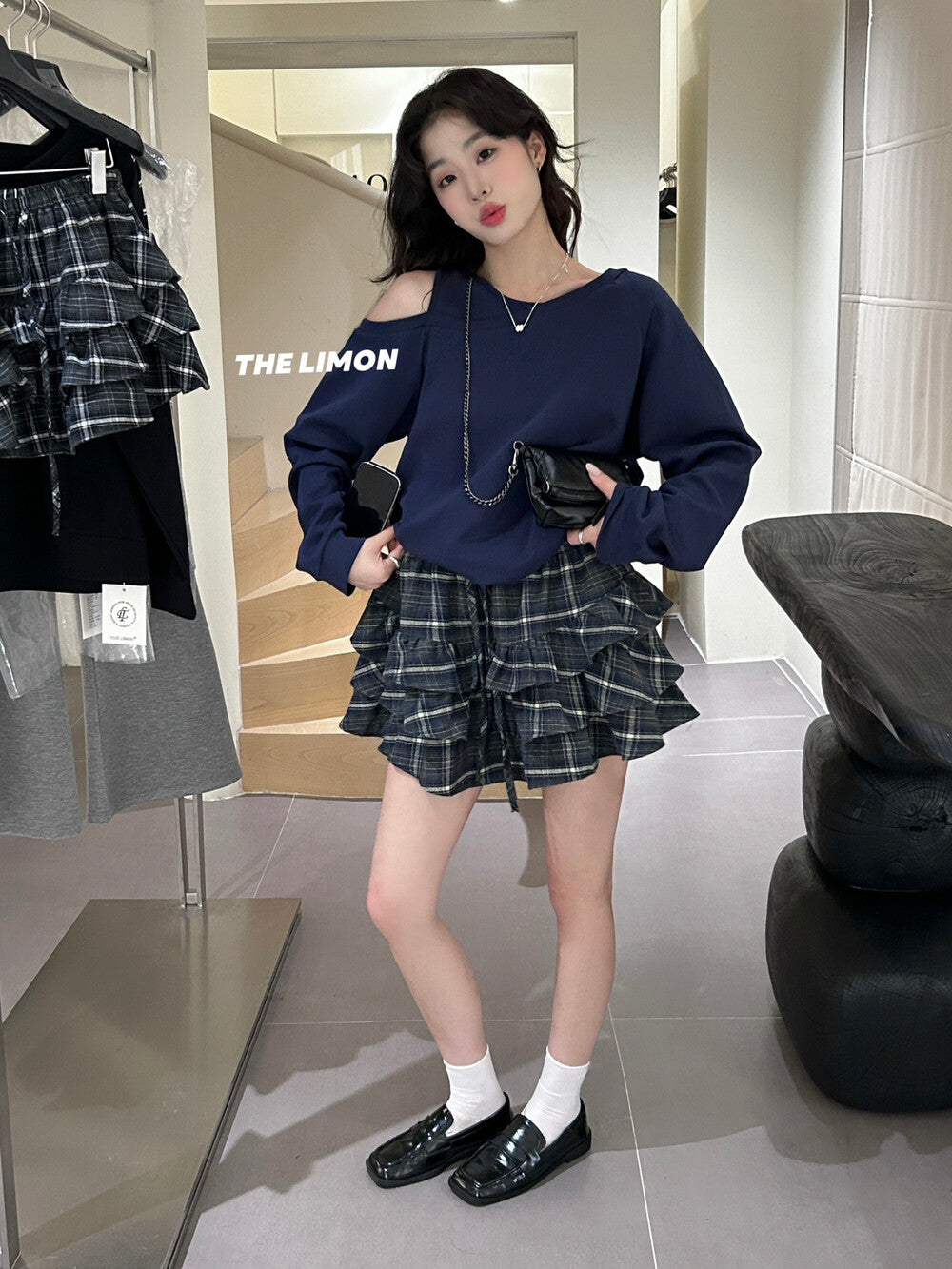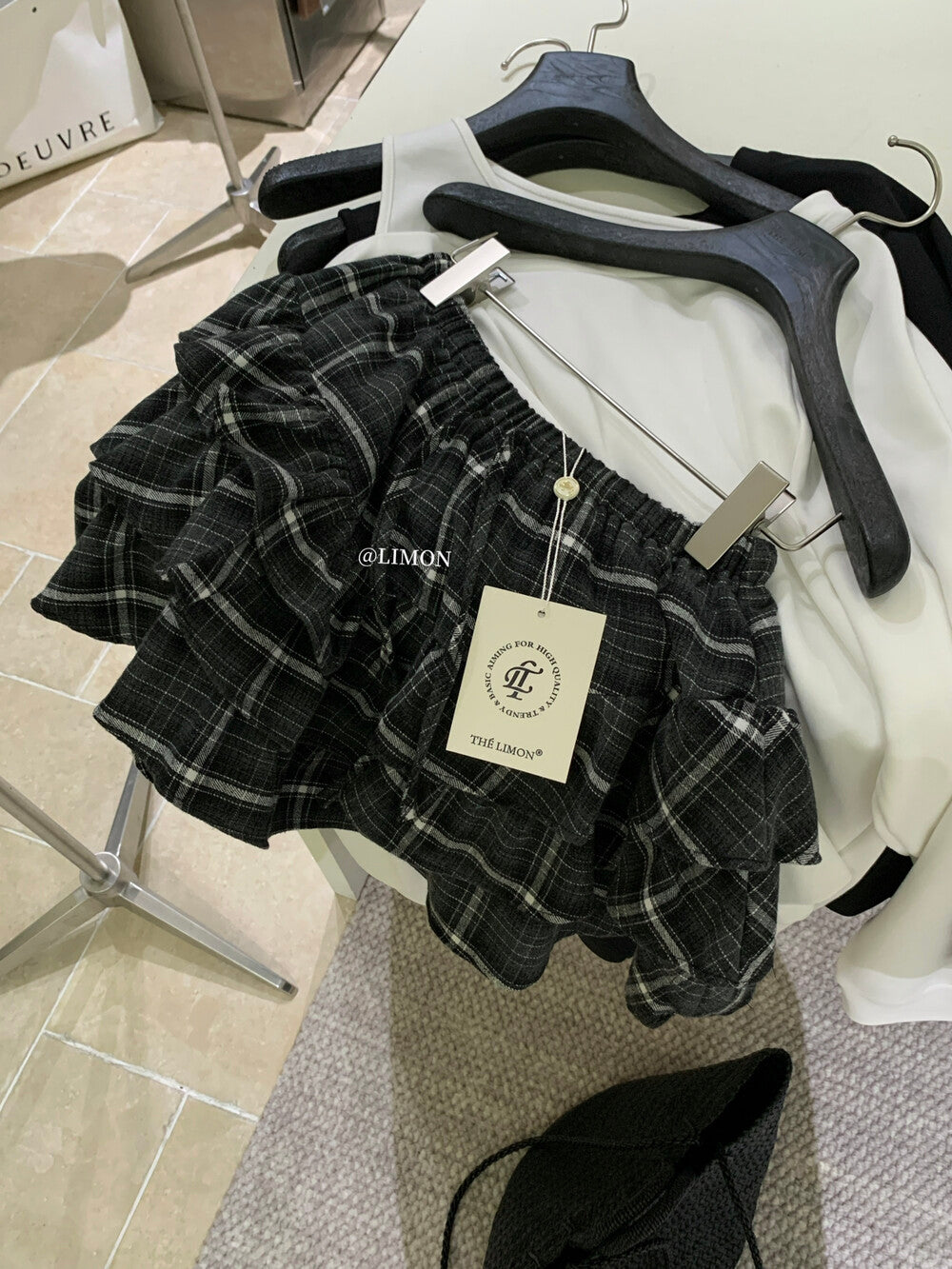 【L1139】實拍檸檬秋季磨毛復古格紋繫帶蛋糕裙250915