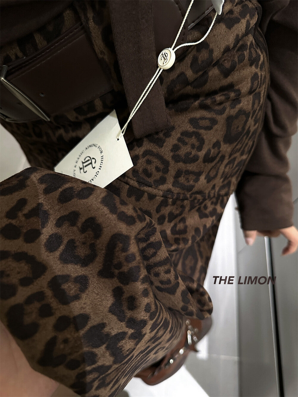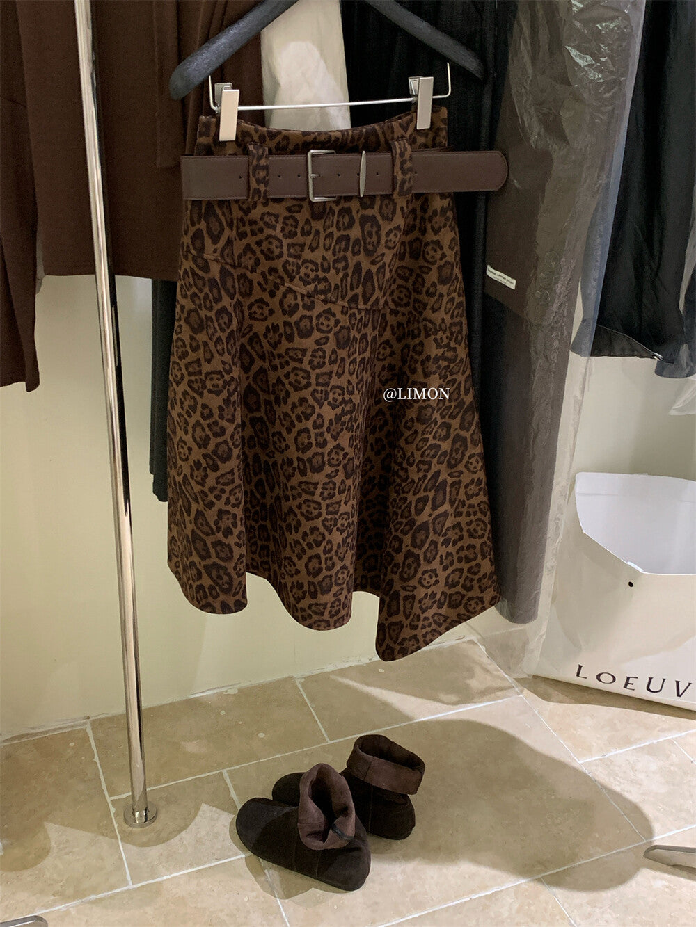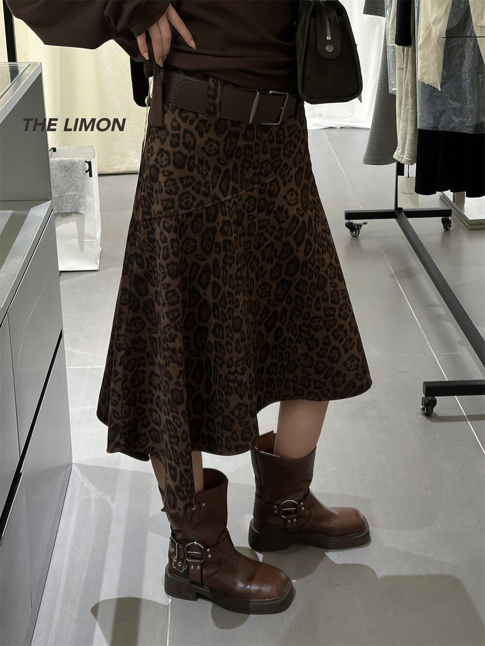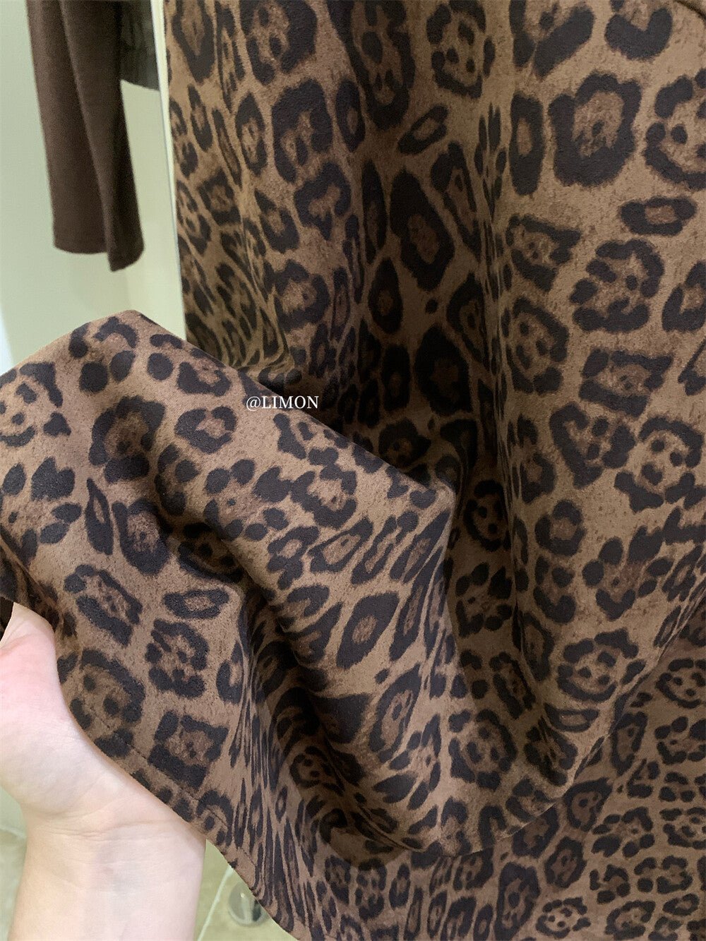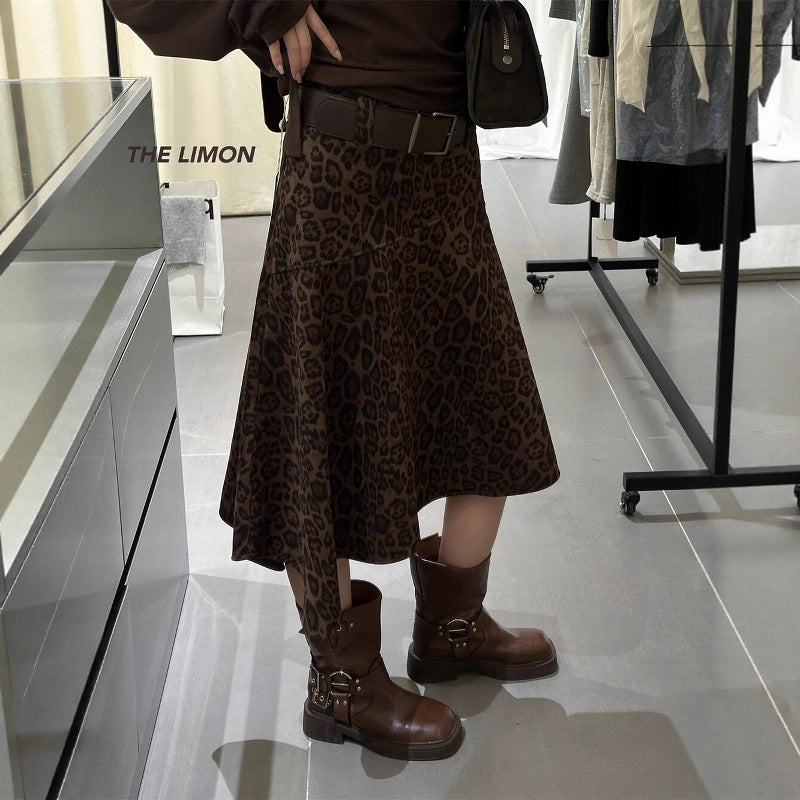 【L1175】實拍檸檬秋季時髦麂皮絨復古不規則豹紋裙+腰帶250915